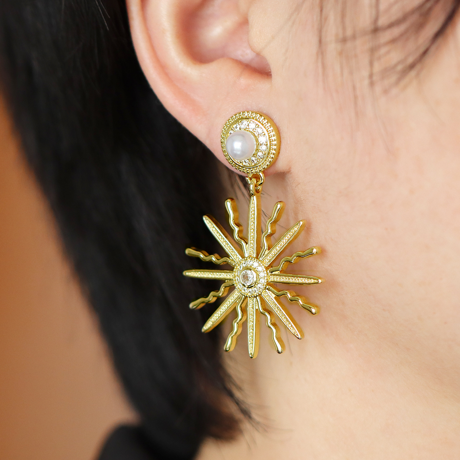 - Brass Drop Earring, with Abalone Shell, Flat Round