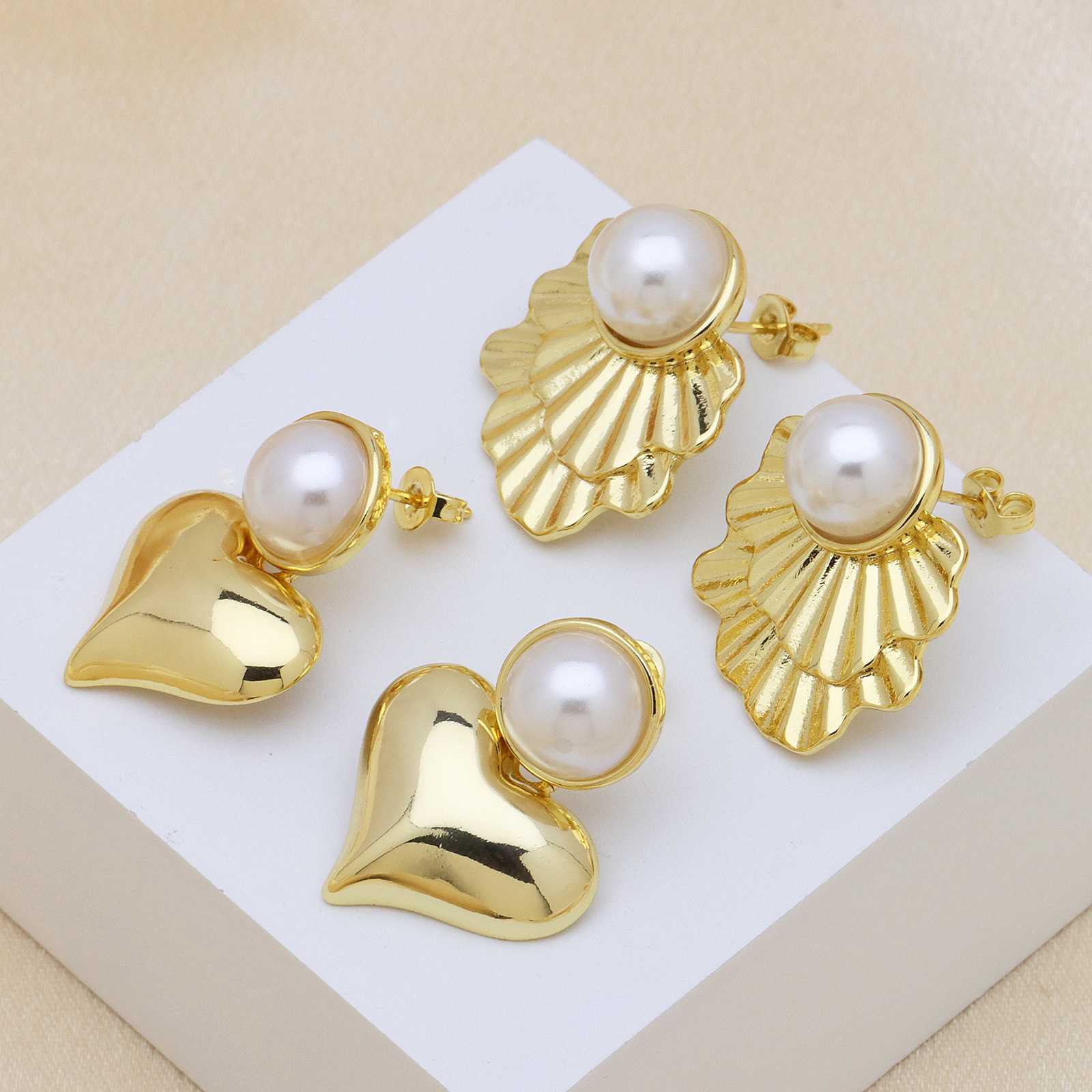 - Brass Drop Earring, with Abalone Shell, Square