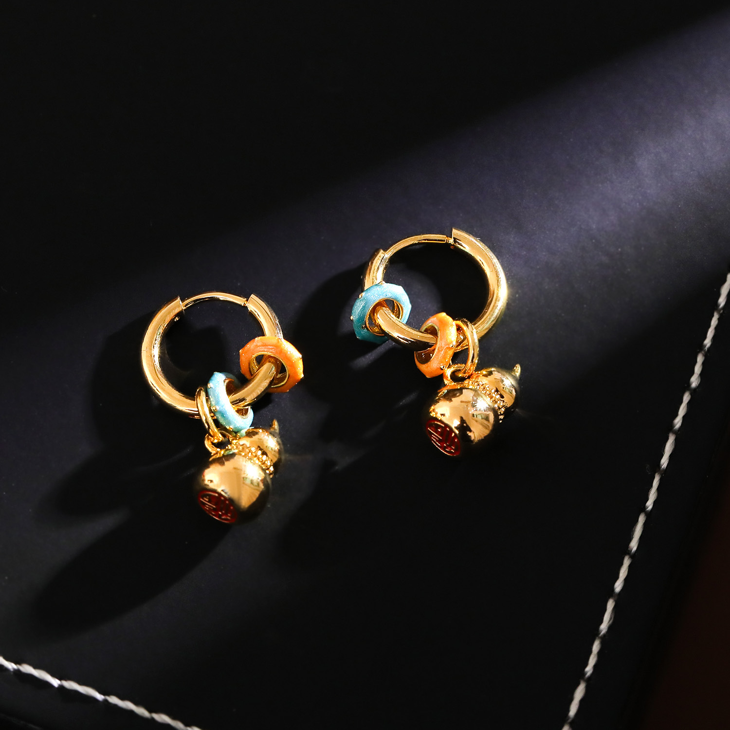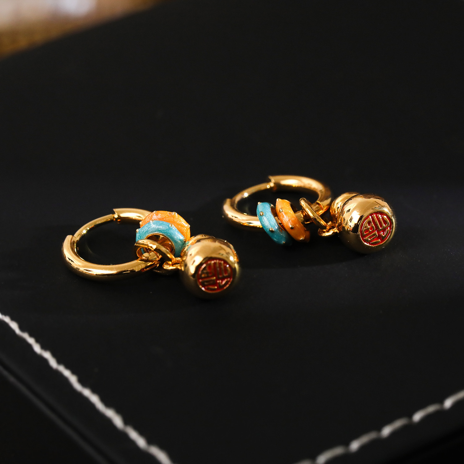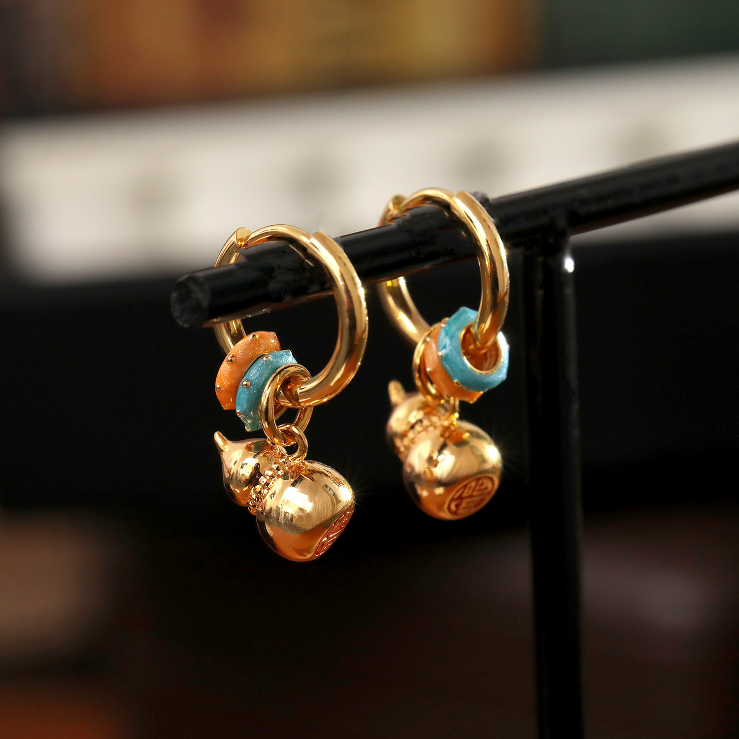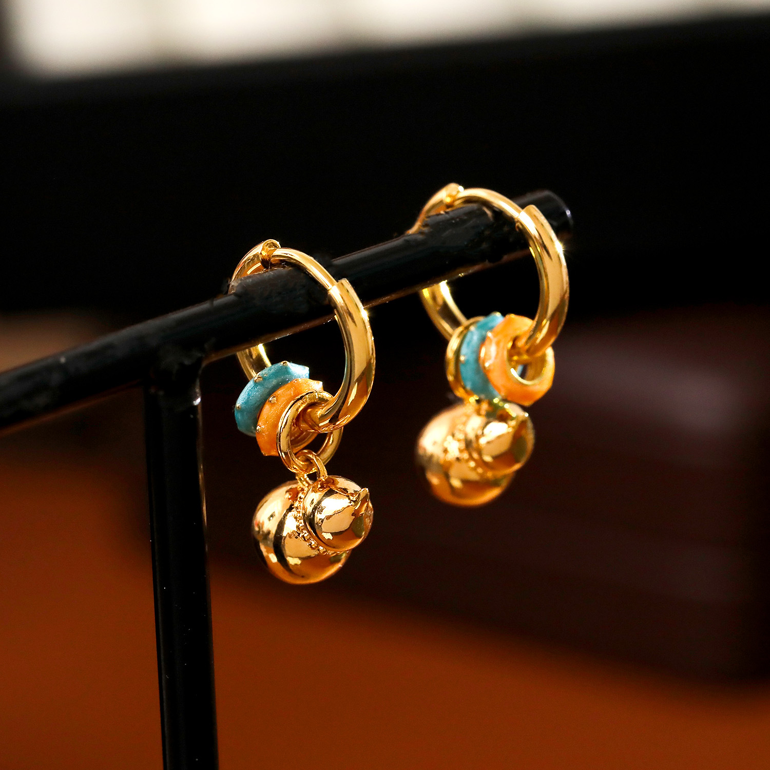 - Brass Drop Earring, with Green Calcedony, Teardrop