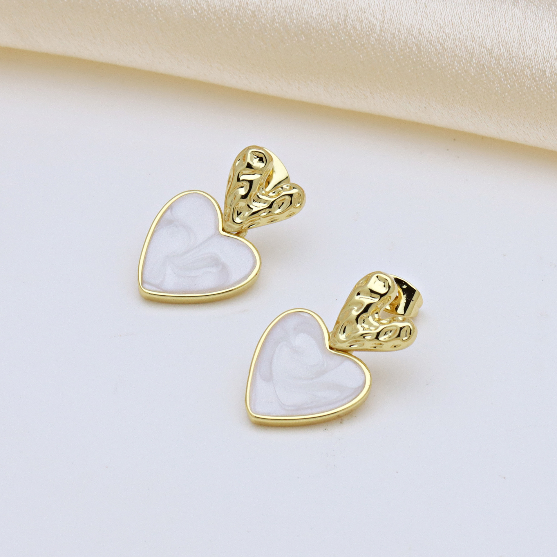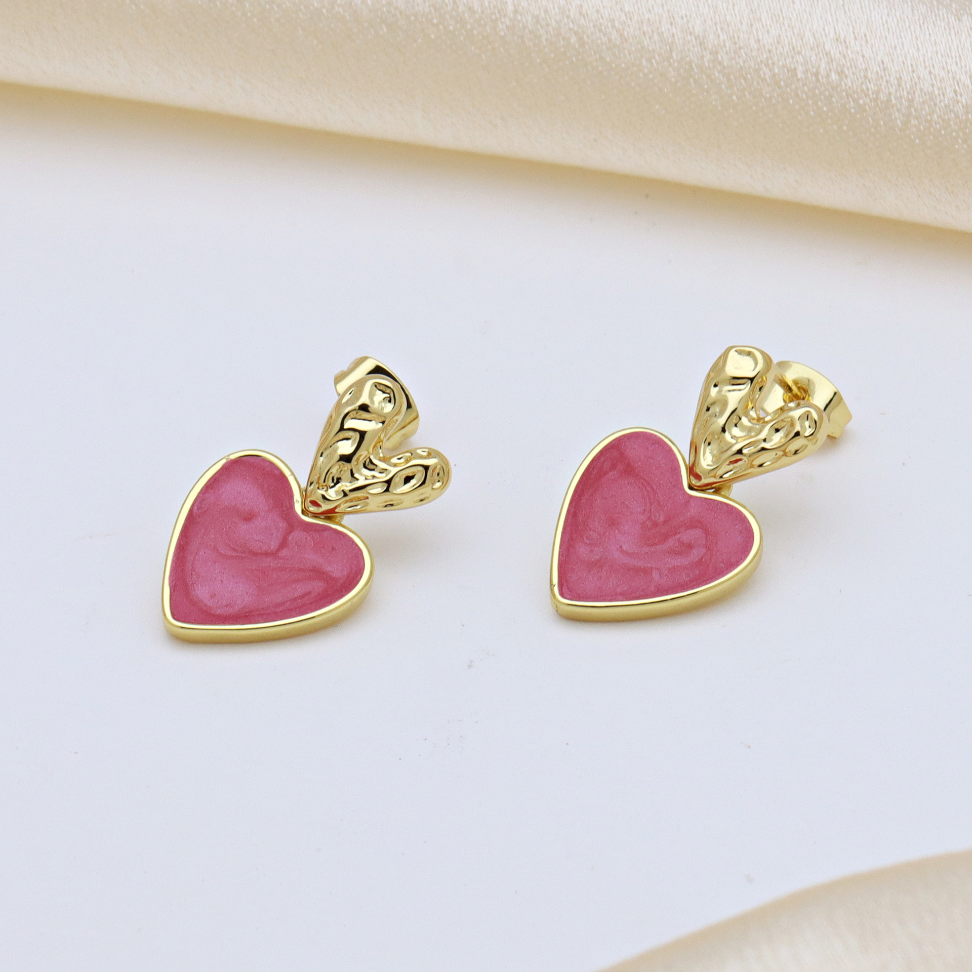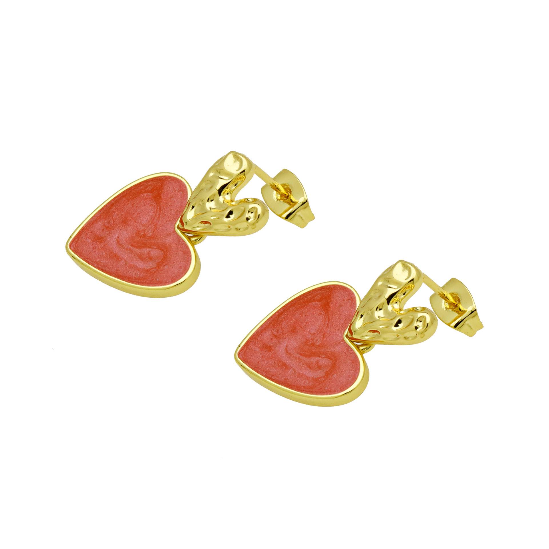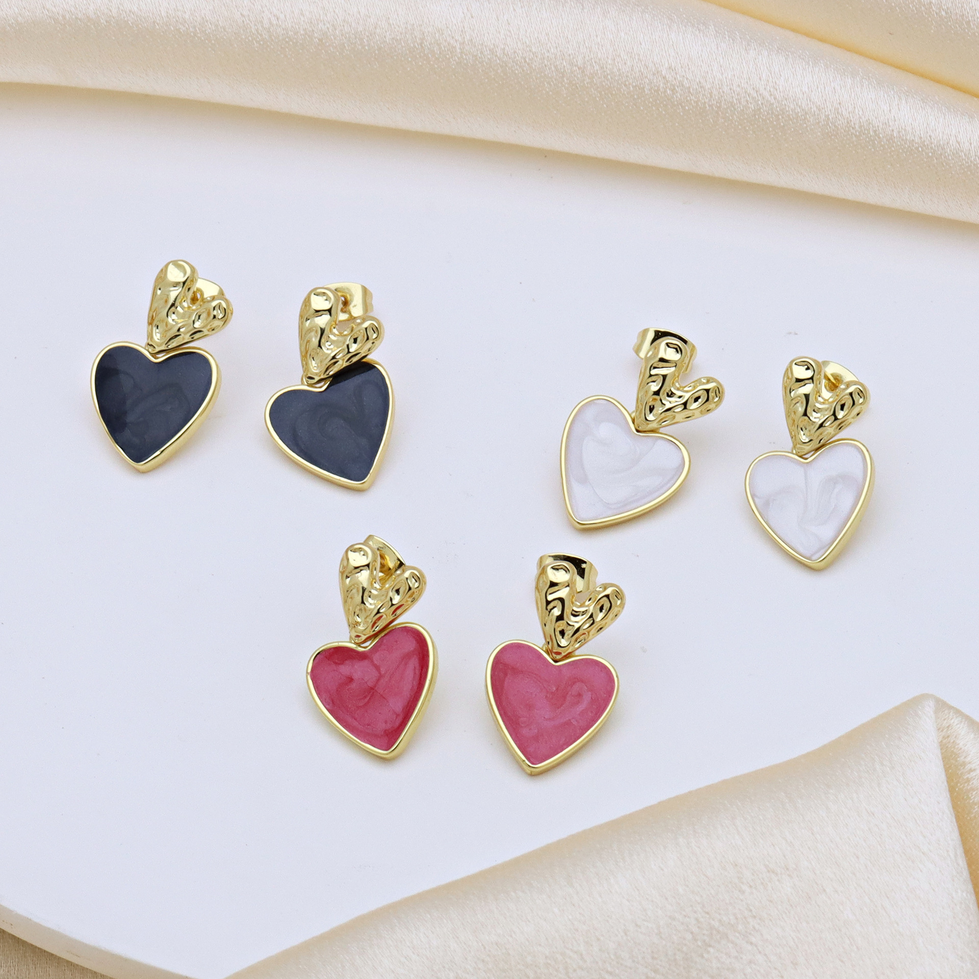 Brass Drop Earring, Heart, gold color plated, for woman & enamel, more colors for choice, 14x23mm, Sold By Pair
