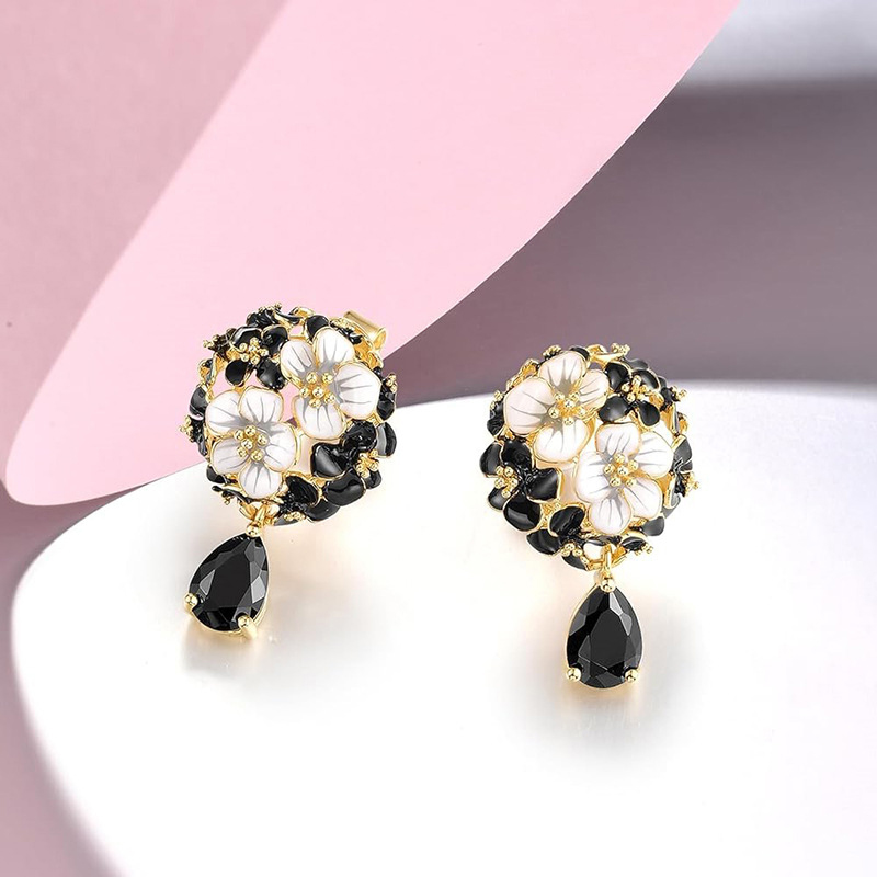 - Brass Drop Earring, Cloth, with Crystal & Brass