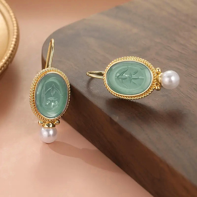 - Brass Drop Earring, with Stainless Steel, Leaf