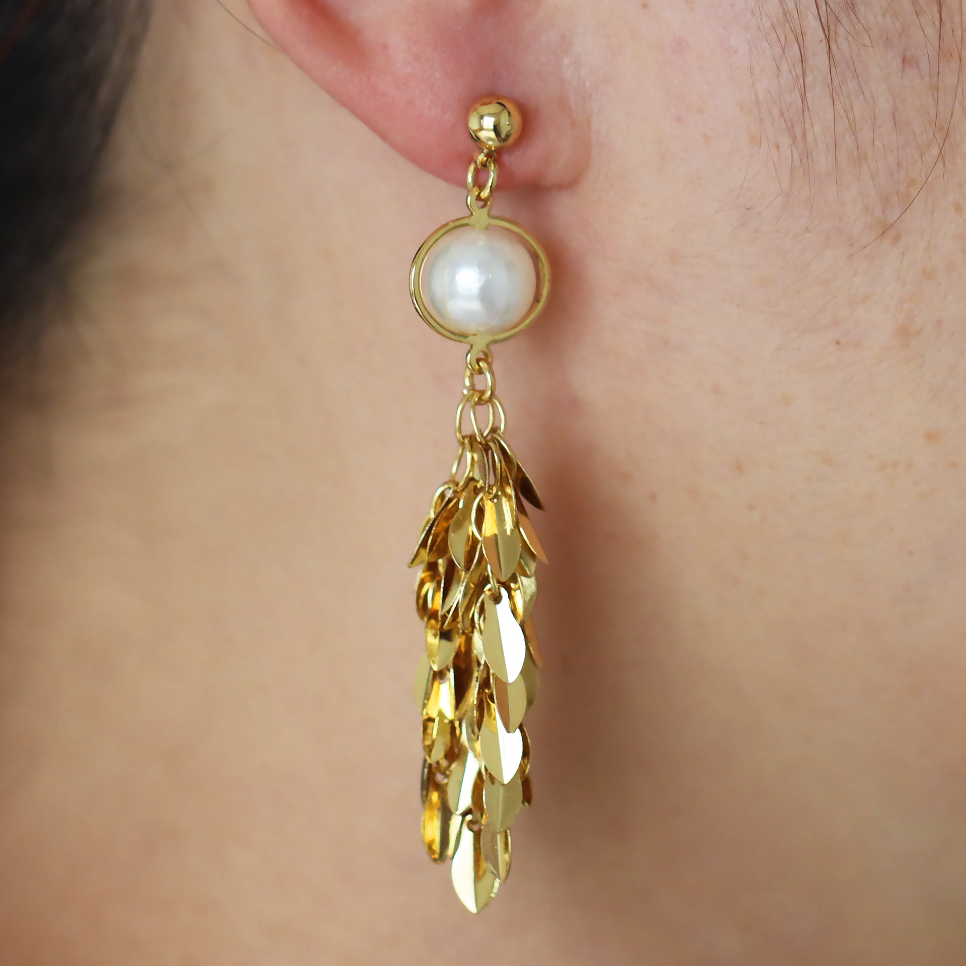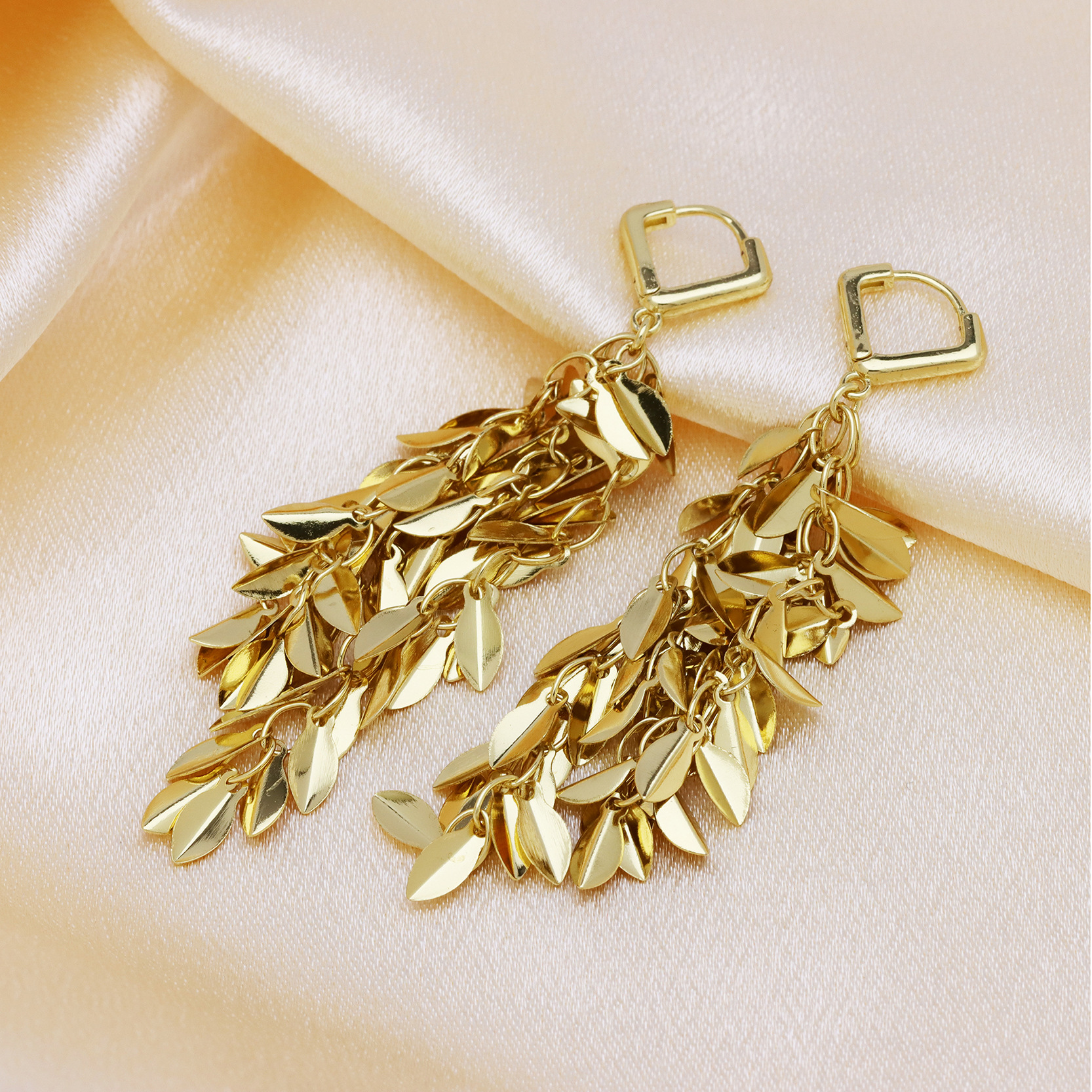 - Brass Drop Earring, with Plank, Geometrical Pattern