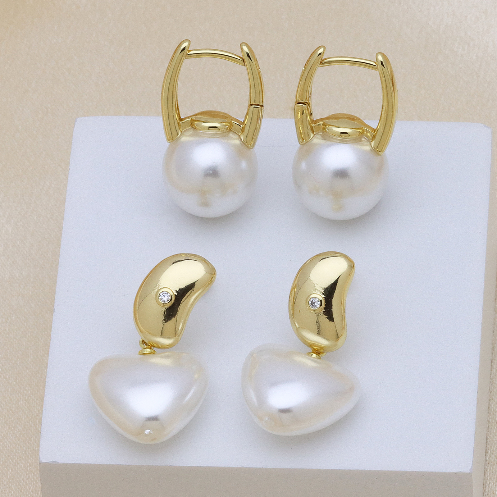 Brass Drop Earring, with Plastic Pearl, gold color plated, different styles for choice & for woman, more colors for choice, Sold By Pair