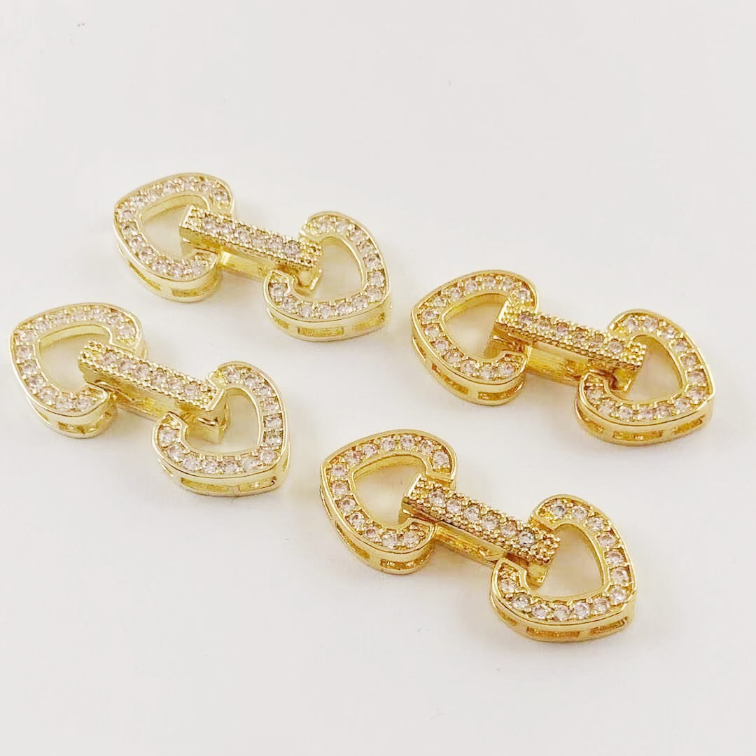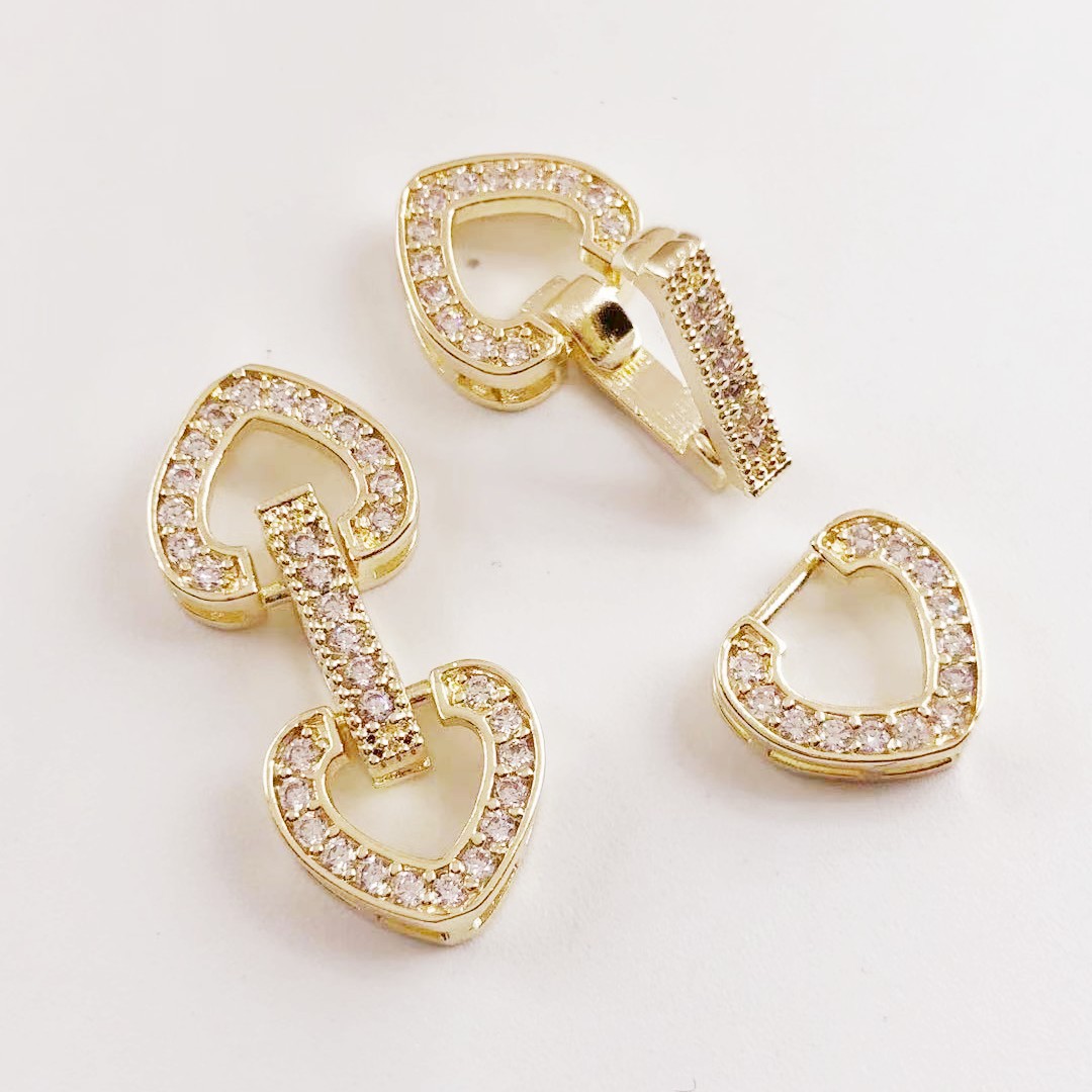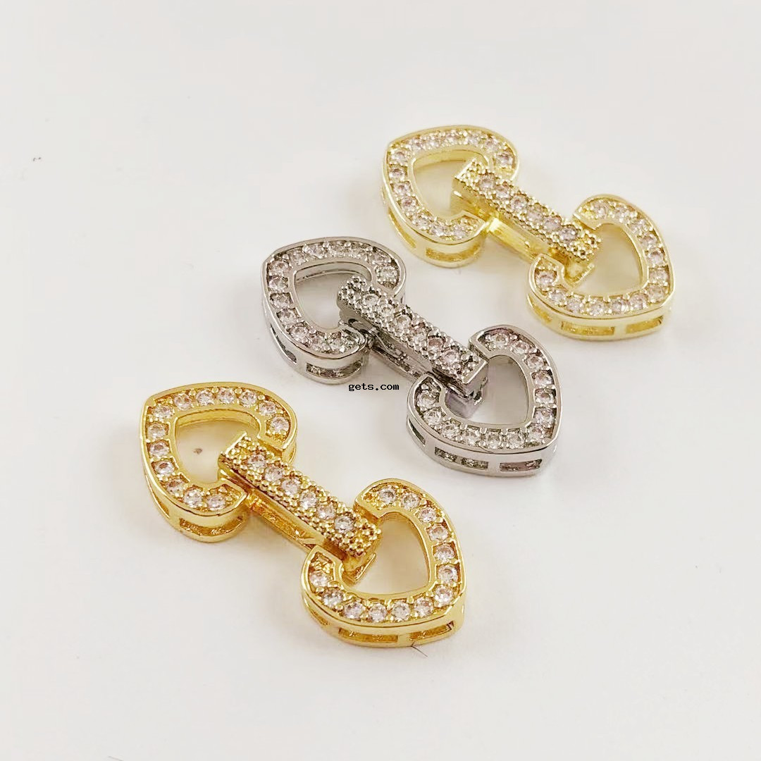 Brass Fold Over Clasp, Heart, plated, DIY & micro pave cubic zirconia, more colors for choice, Sold By PC