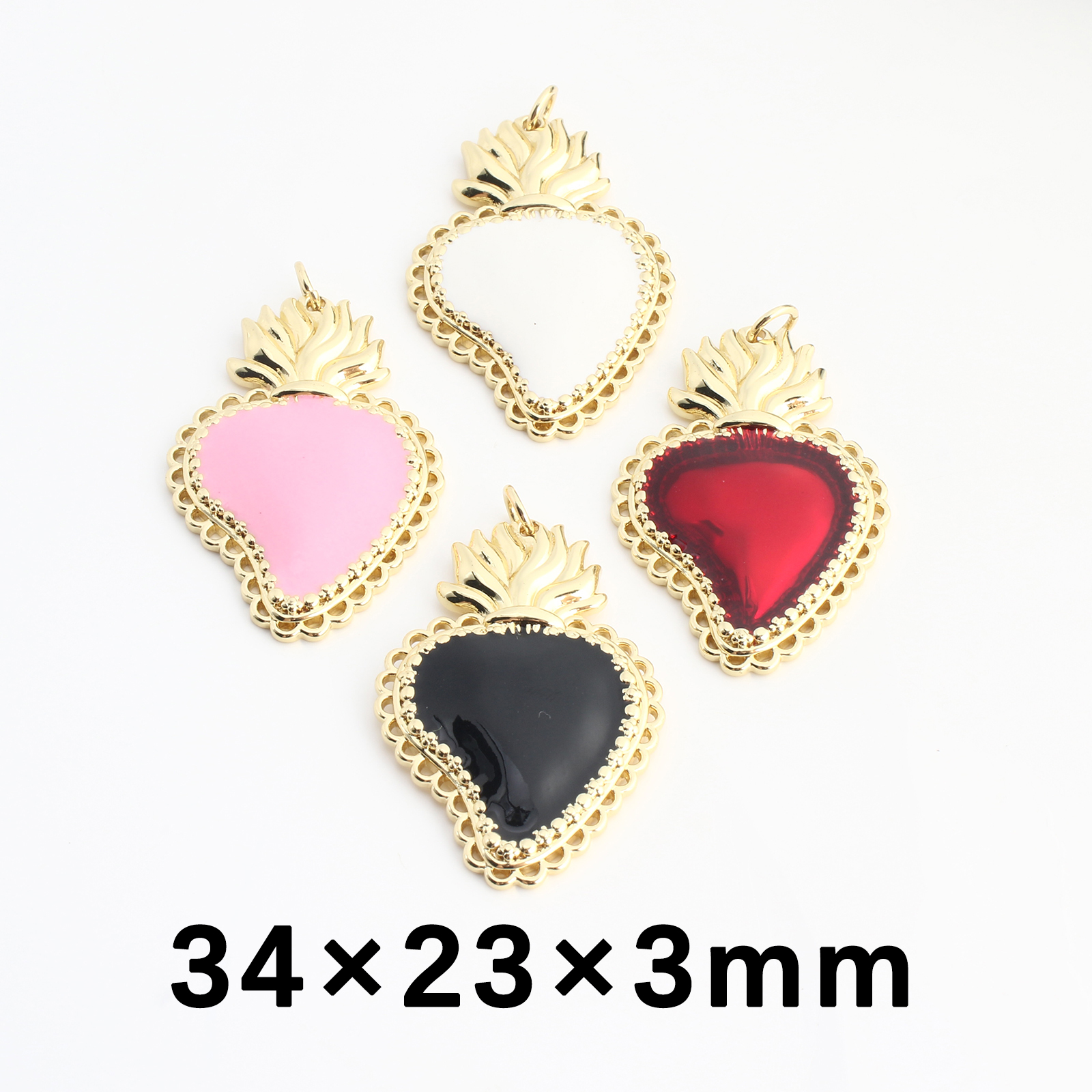 Brass Heart Pendants, gold color plated, DIY & enamel, more colors for choice, 34x23x3mm, Sold By PC