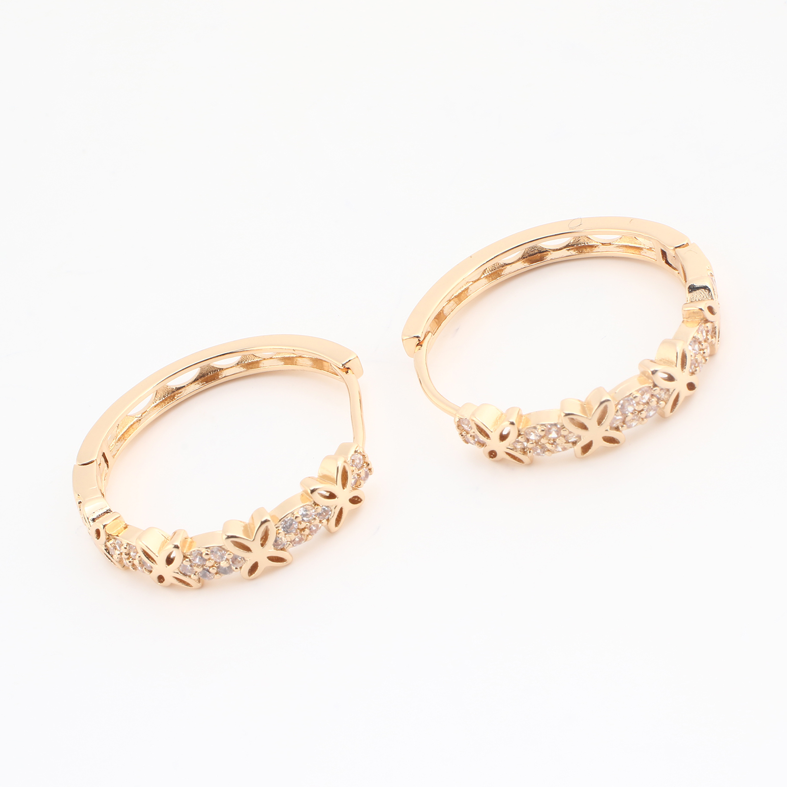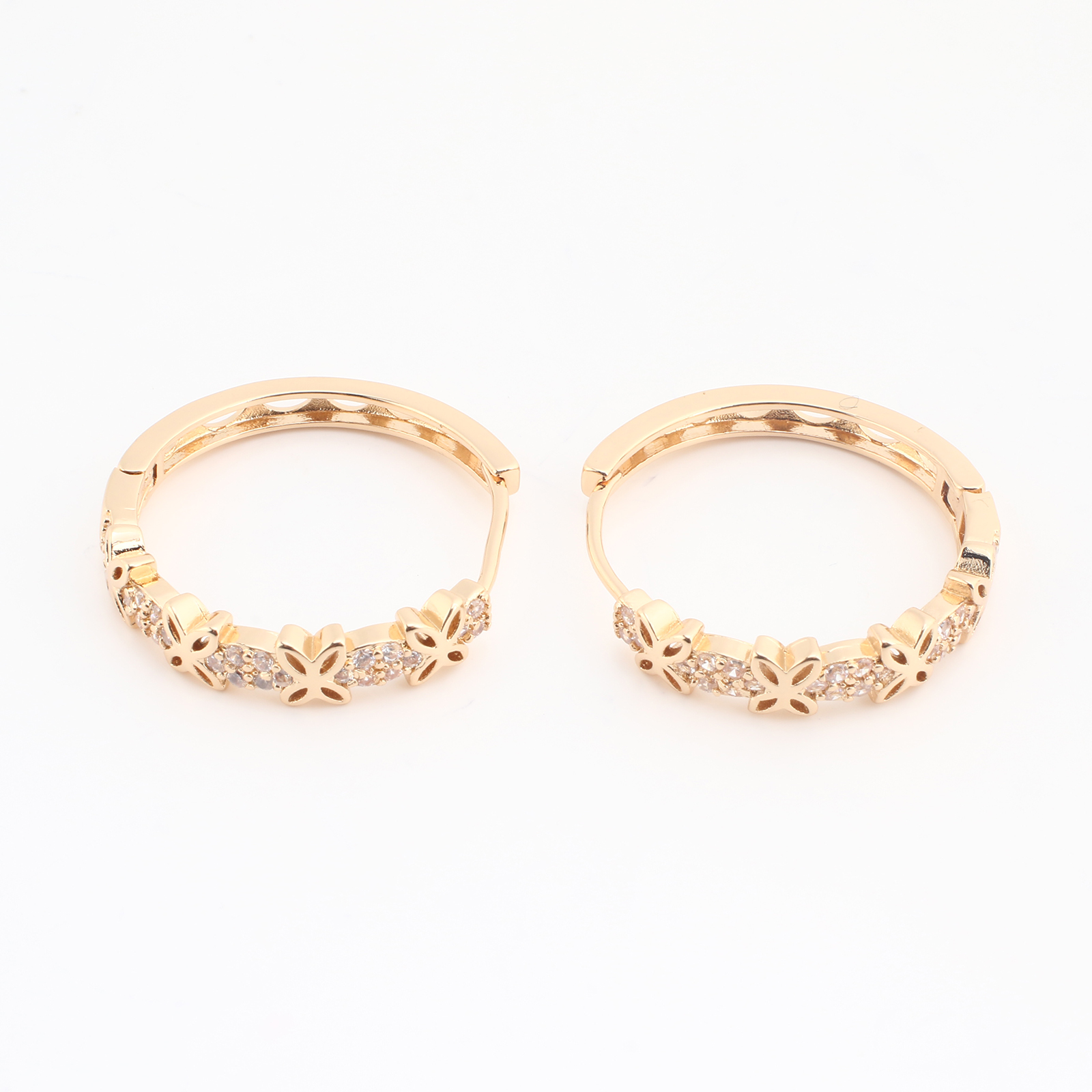 - Brass Huggie Hoop Earring, with Cubic Zirconia, plated