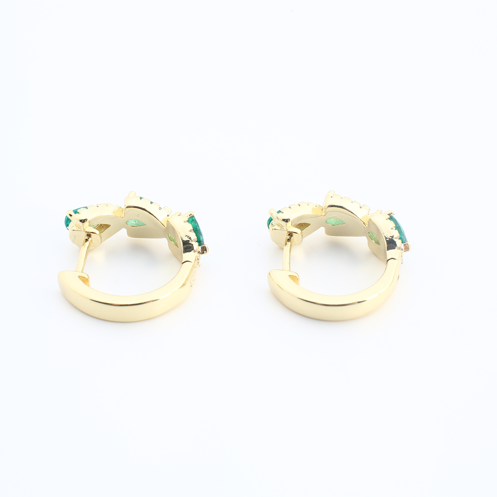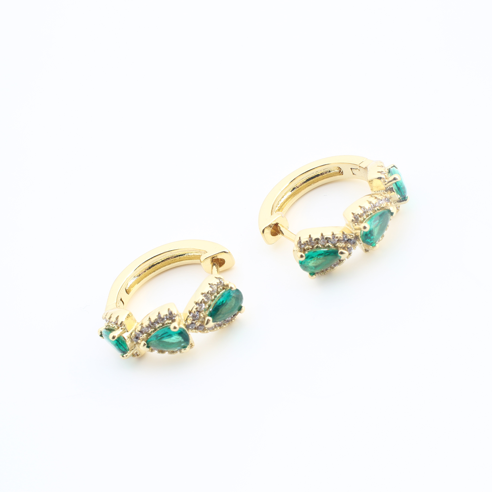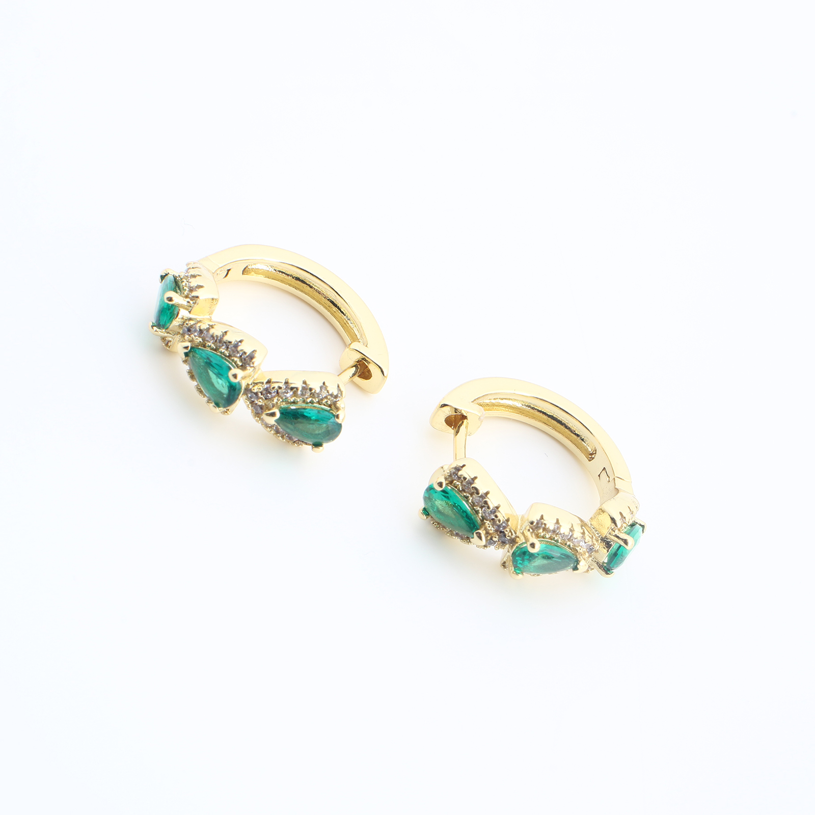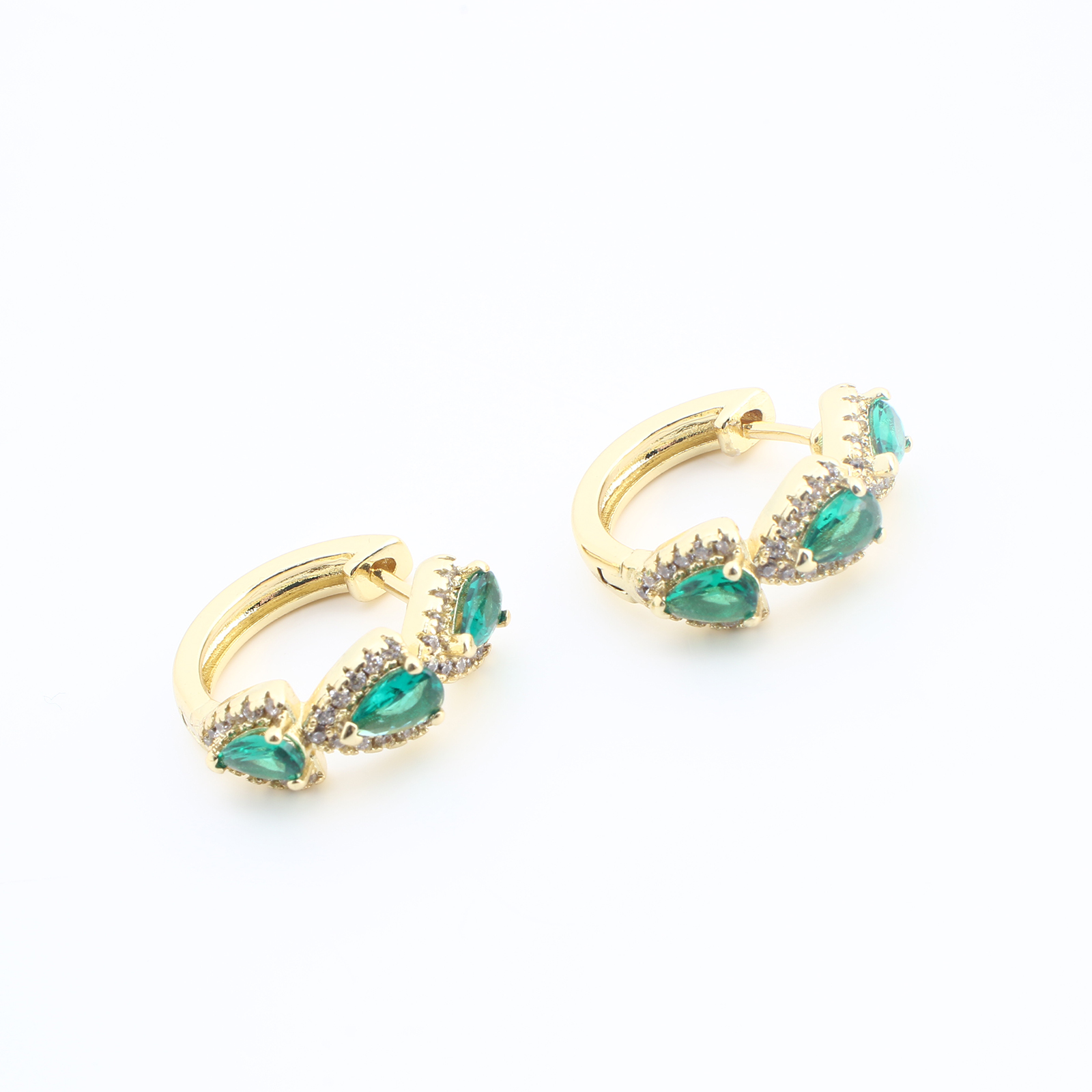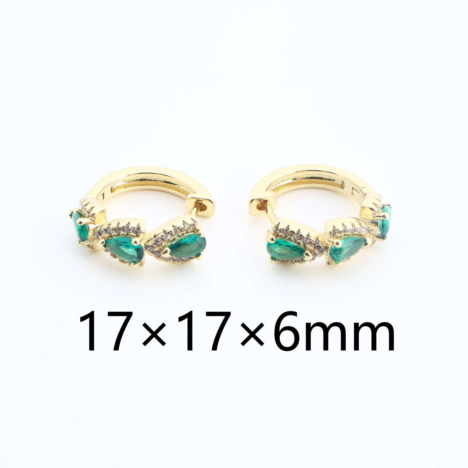 Brass Huggie Hoop Earring, gold color plated, for woman & with rhinestone, 17x17x6mm, Sold By Pair