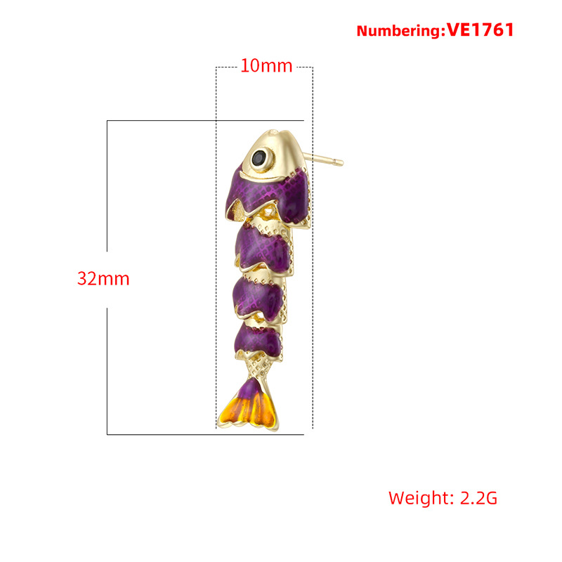 Brass Stud Earring, Fish, gold color plated, for woman & enamel, more colors for choice, 10x32mm, Sold By Pair