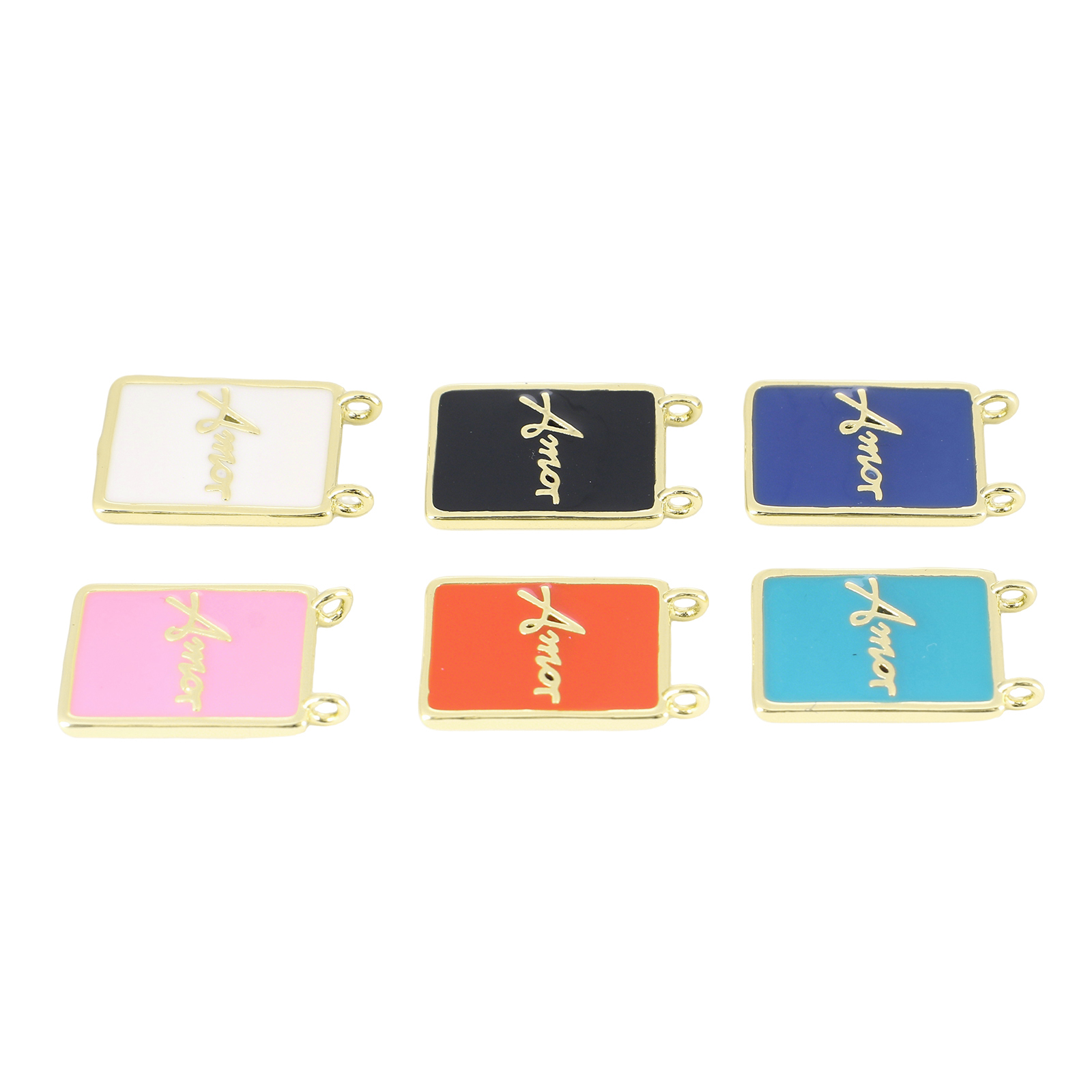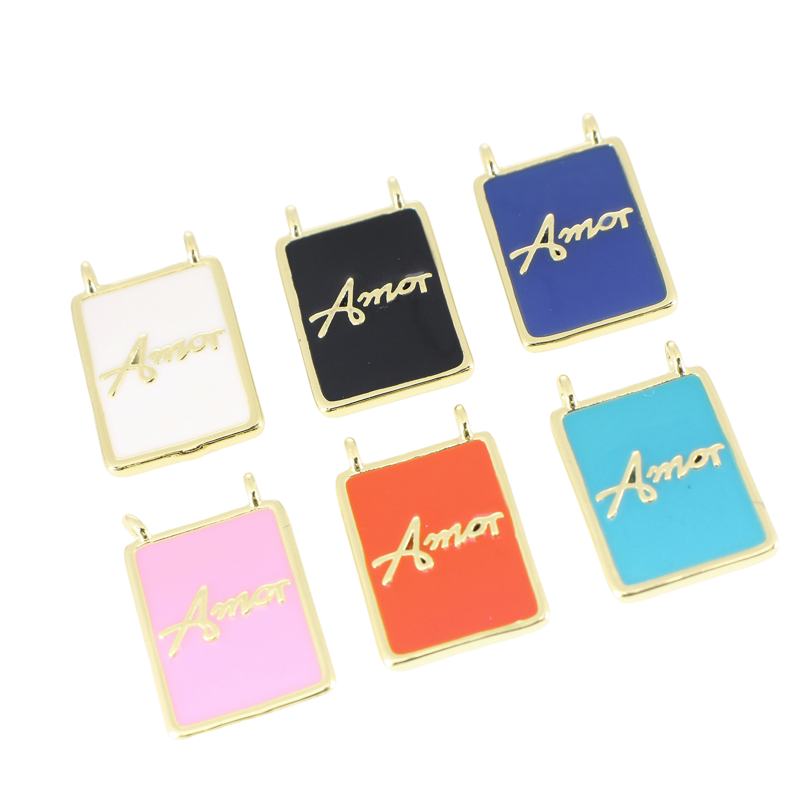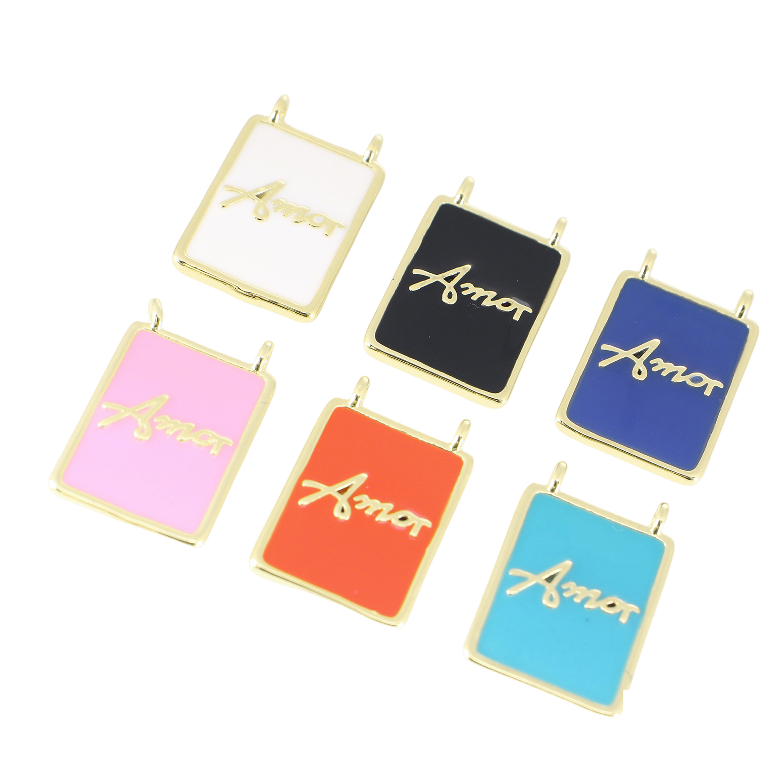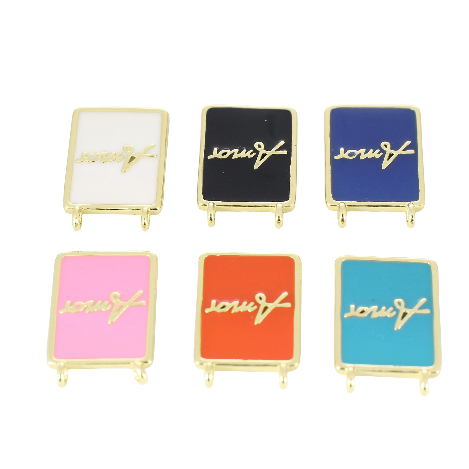 Brass Jewelry Pendants, Rectangle, gold color plated, DIY & with letter pattern & enamel, more colors for choice, 19x12x3mm, Sold By PC