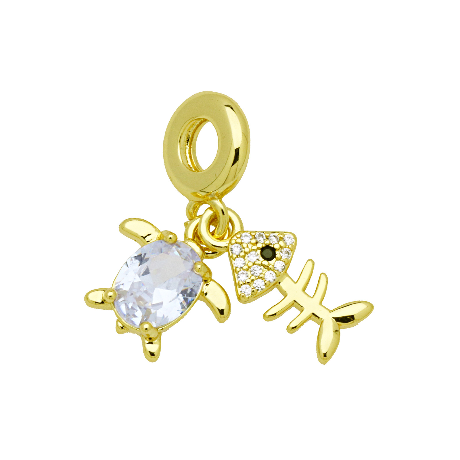 Cubic Zirconia Micro Pave Brass Pendant, gold color plated, micro pave cubic zirconia & enamel
