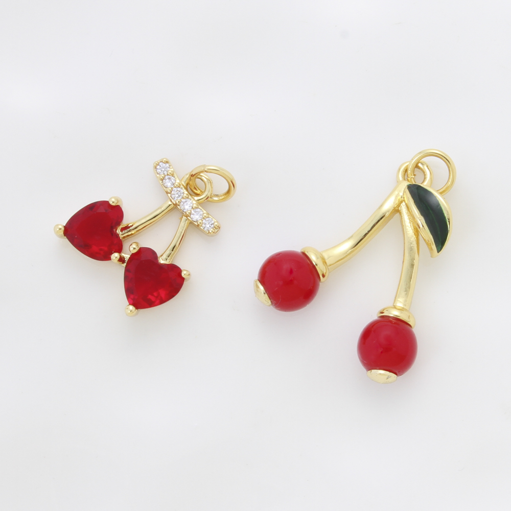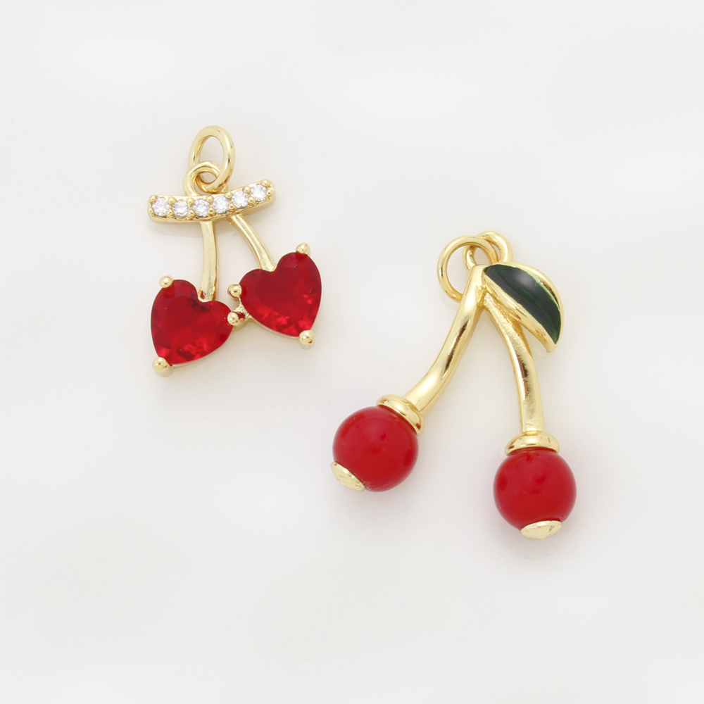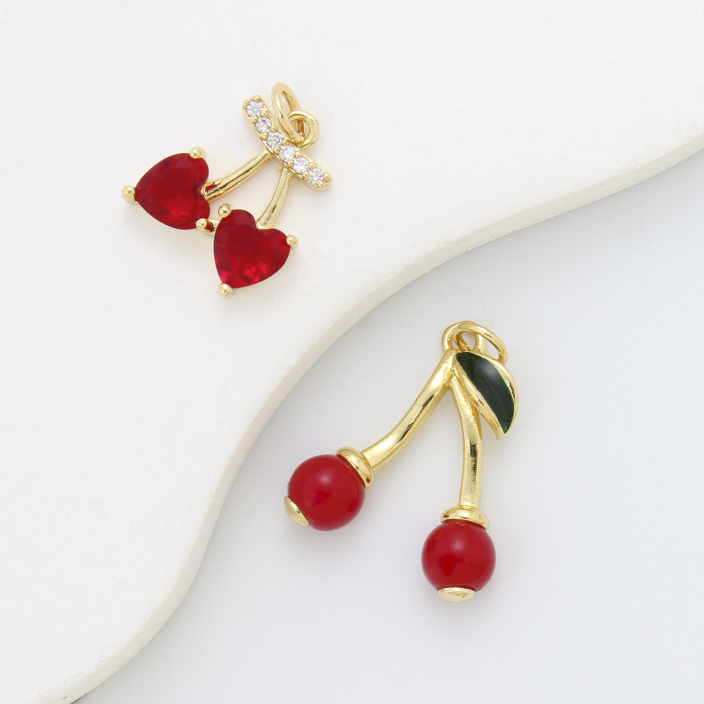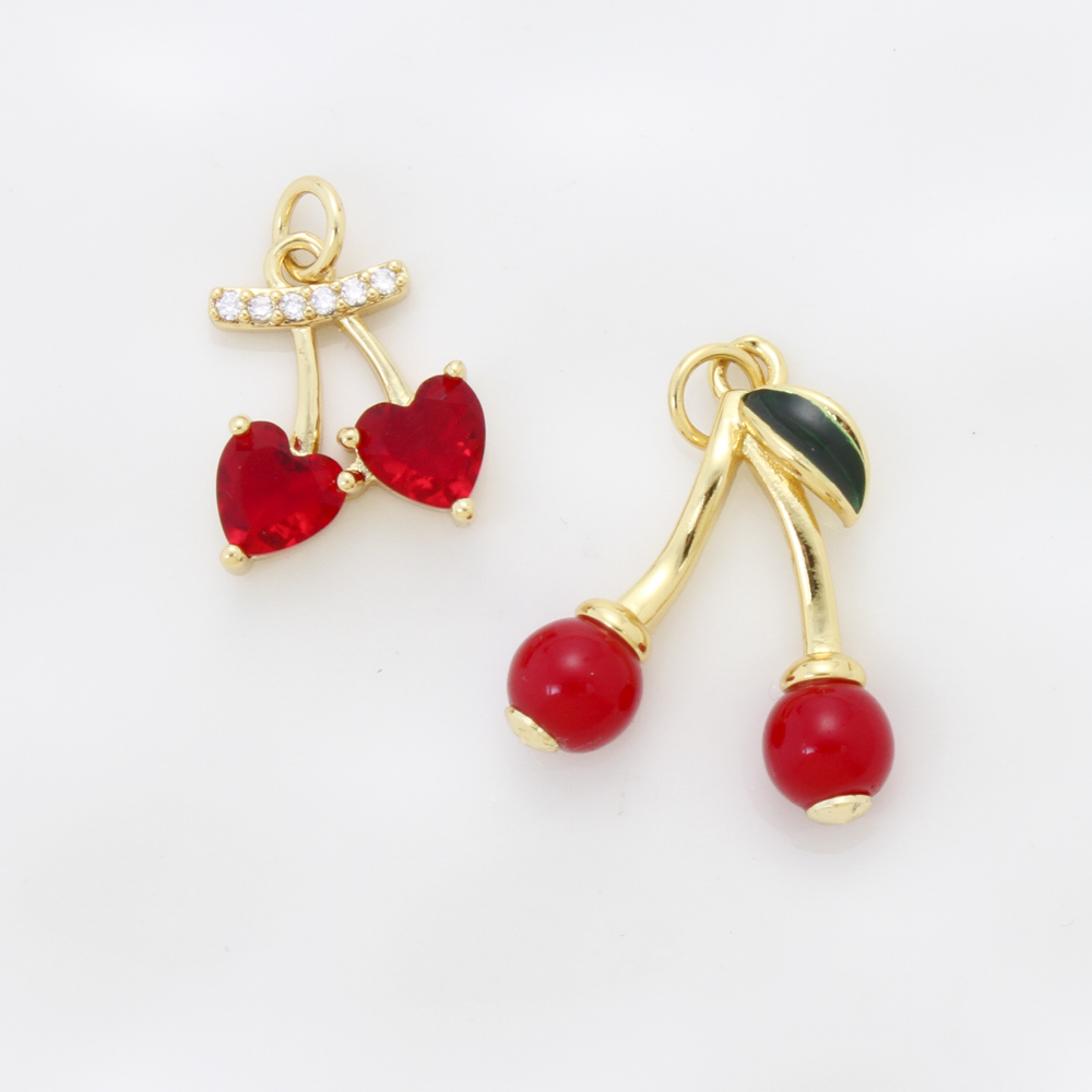 Brass Jewelry Pendants, Cherry, plated, DIY & micro pave cubic zirconia & enamel, more colors for choice, nickel, lead & cadmium free, 21.30x17.80x6mm, Sold By PC