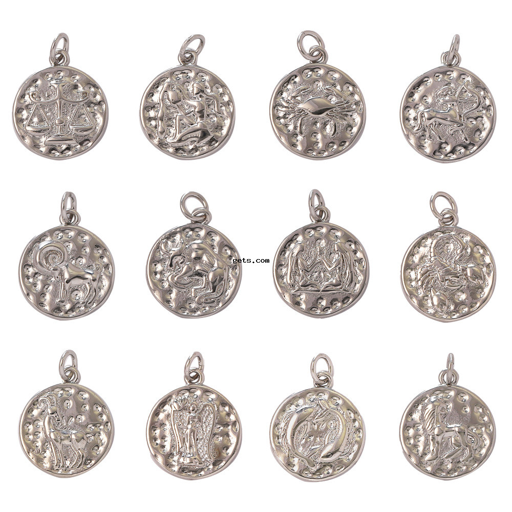 Brass Jewelry Pendants, 12 Signs of the Zodiac, silver color plated, DIY, silver color, nickel, lead & cadmium free, Sold By PC
