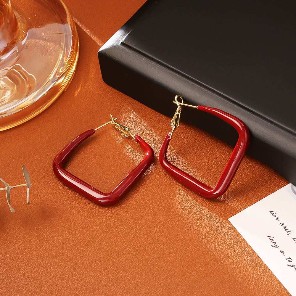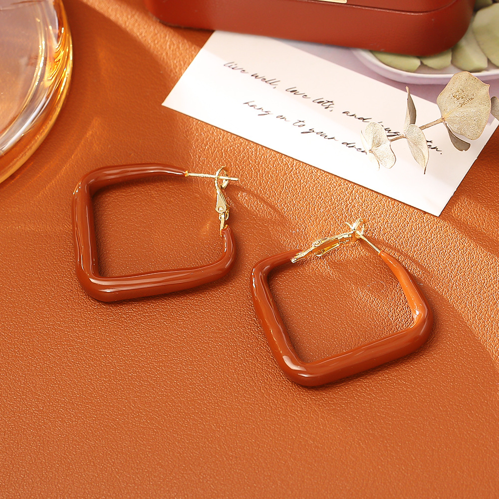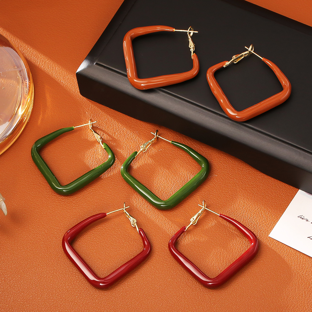Brass Leverback Earring, Square, real gold plated, fashion jewelry & for woman & enamel, more colors for choice, Sold By Pair