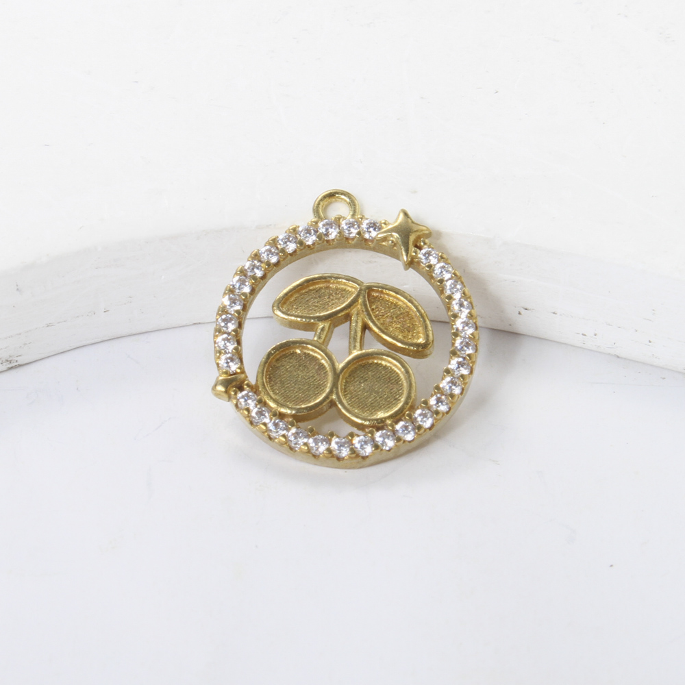 Brass Pendant Findings, Round, plated, DIY & with rhinestone & hollow, golden, nickel, lead & cadmium free, 18.30x15.80x2.70mm, Sold By PC