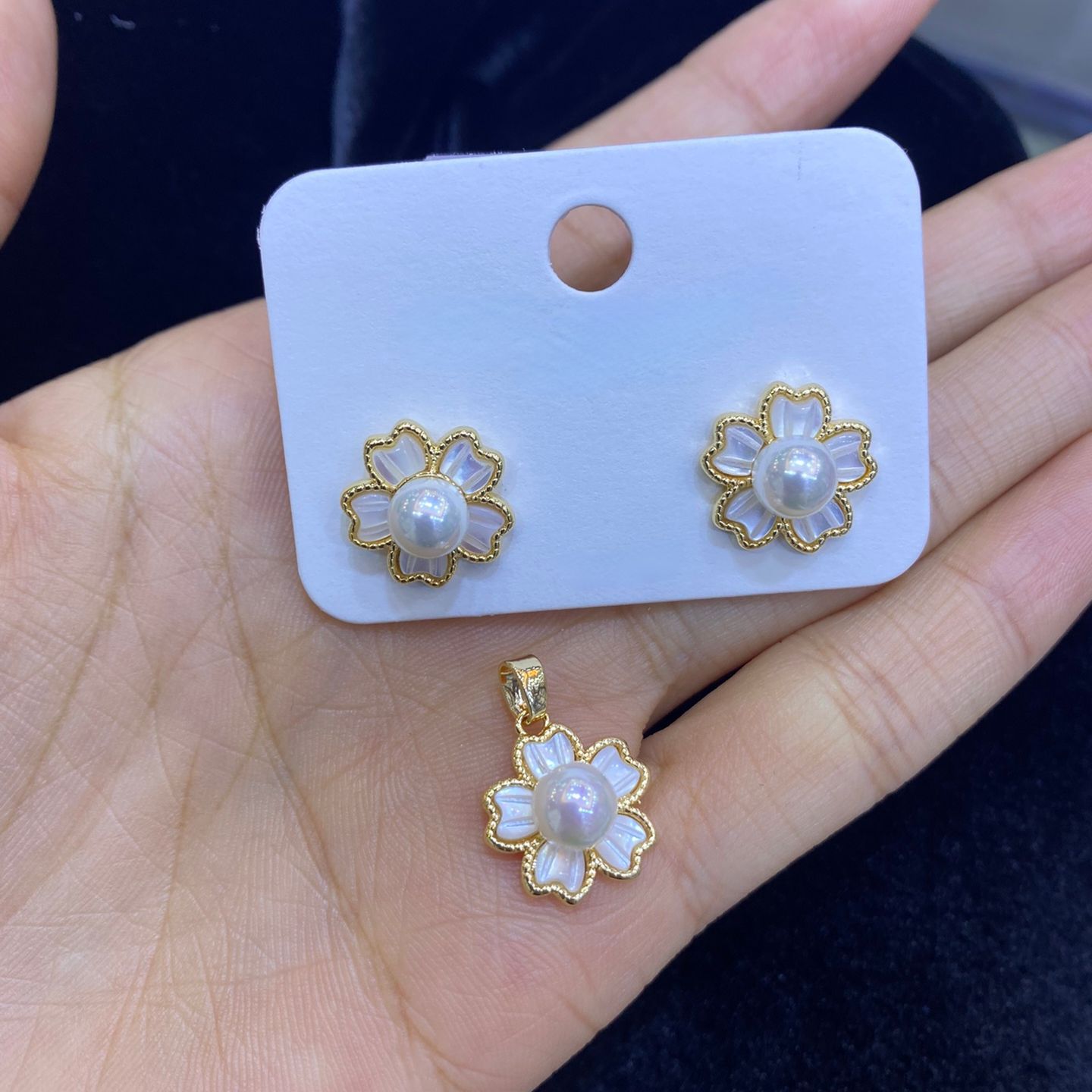 - Brass Stud Earring, with Plastic Pearl, real gold plated