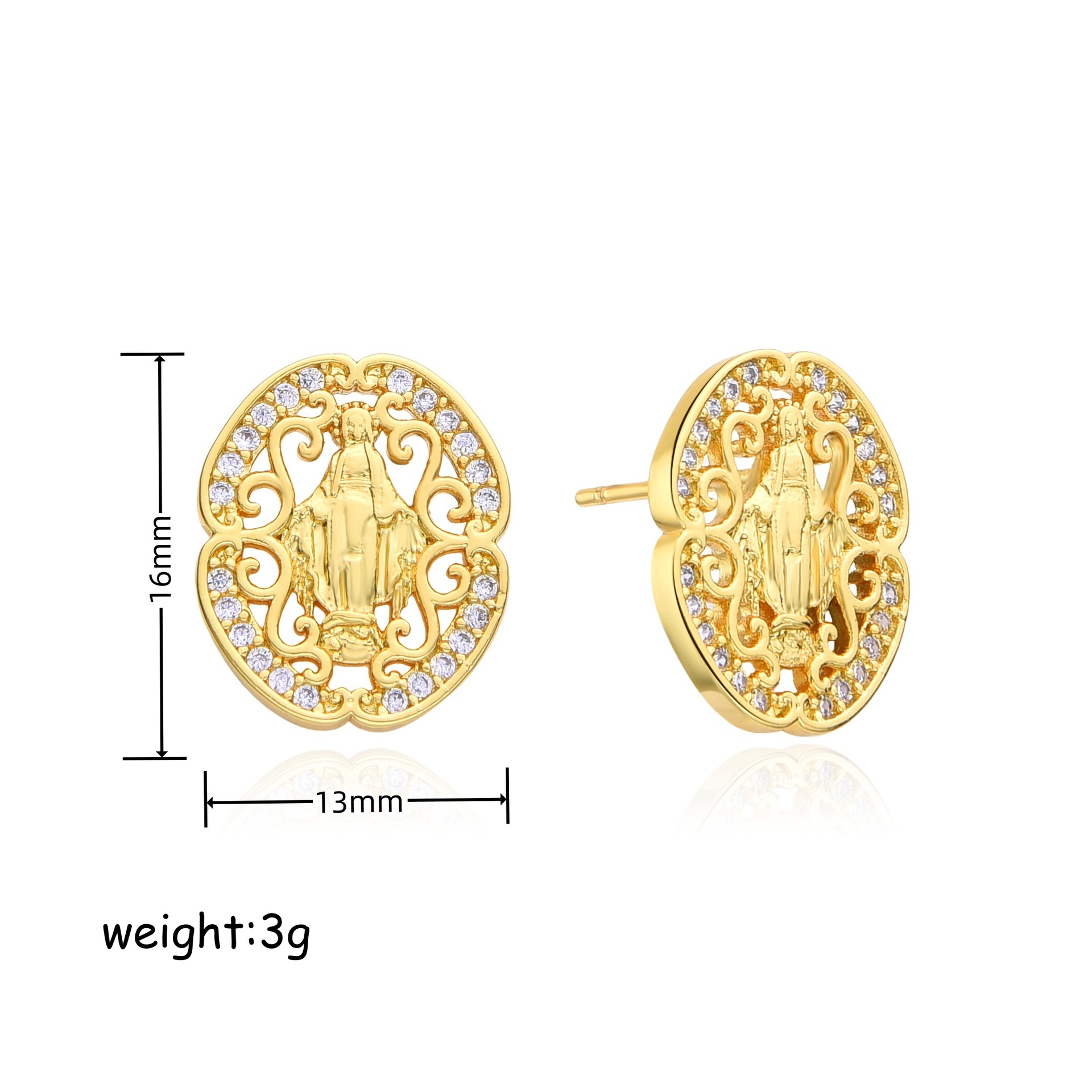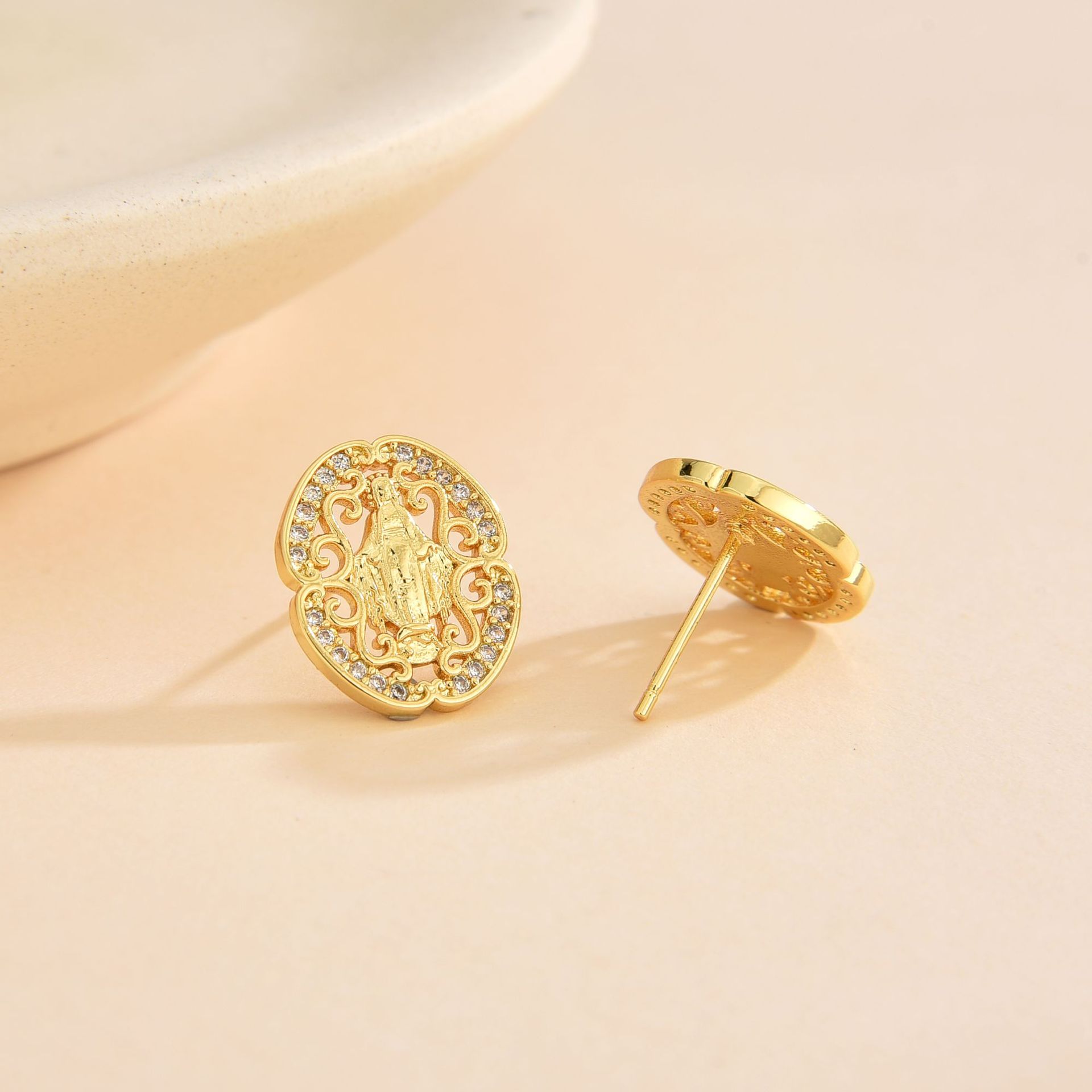 - Brass Stud Earring, Bee, platinum plated