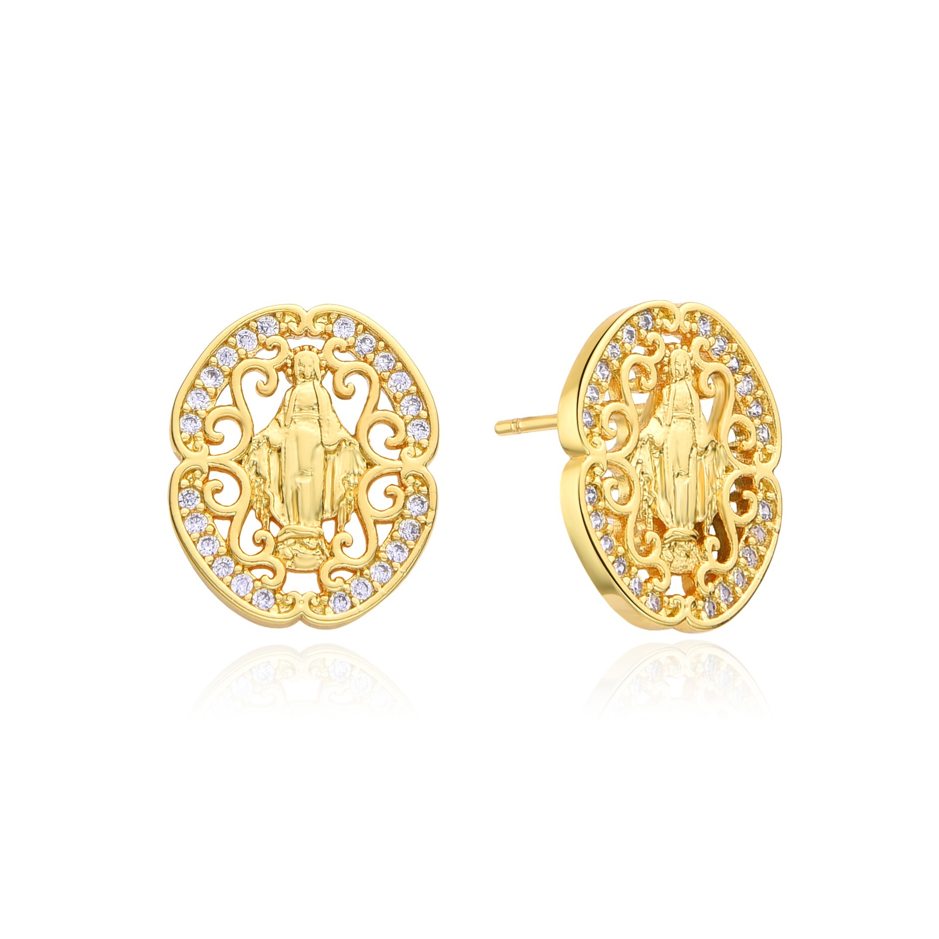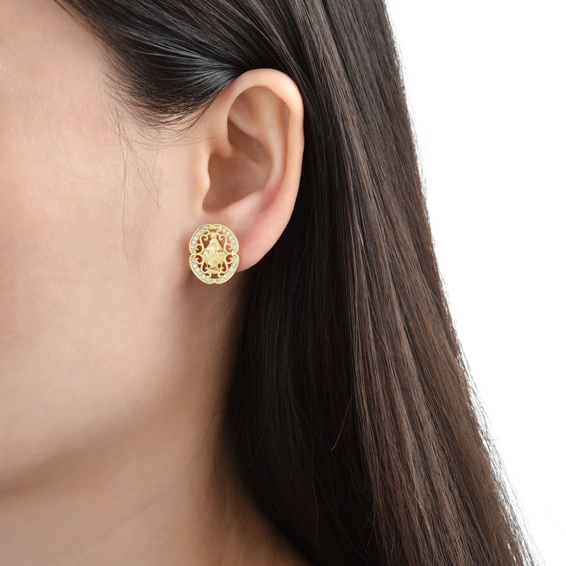 - Brass Stud Earring, with Gemstone, Square