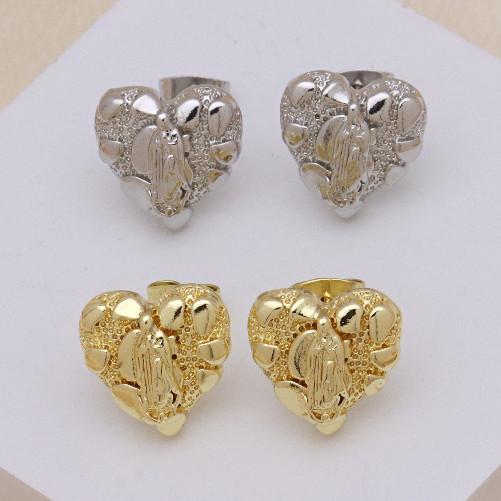 - Brass Stud Earring, real silver plated, for woman
