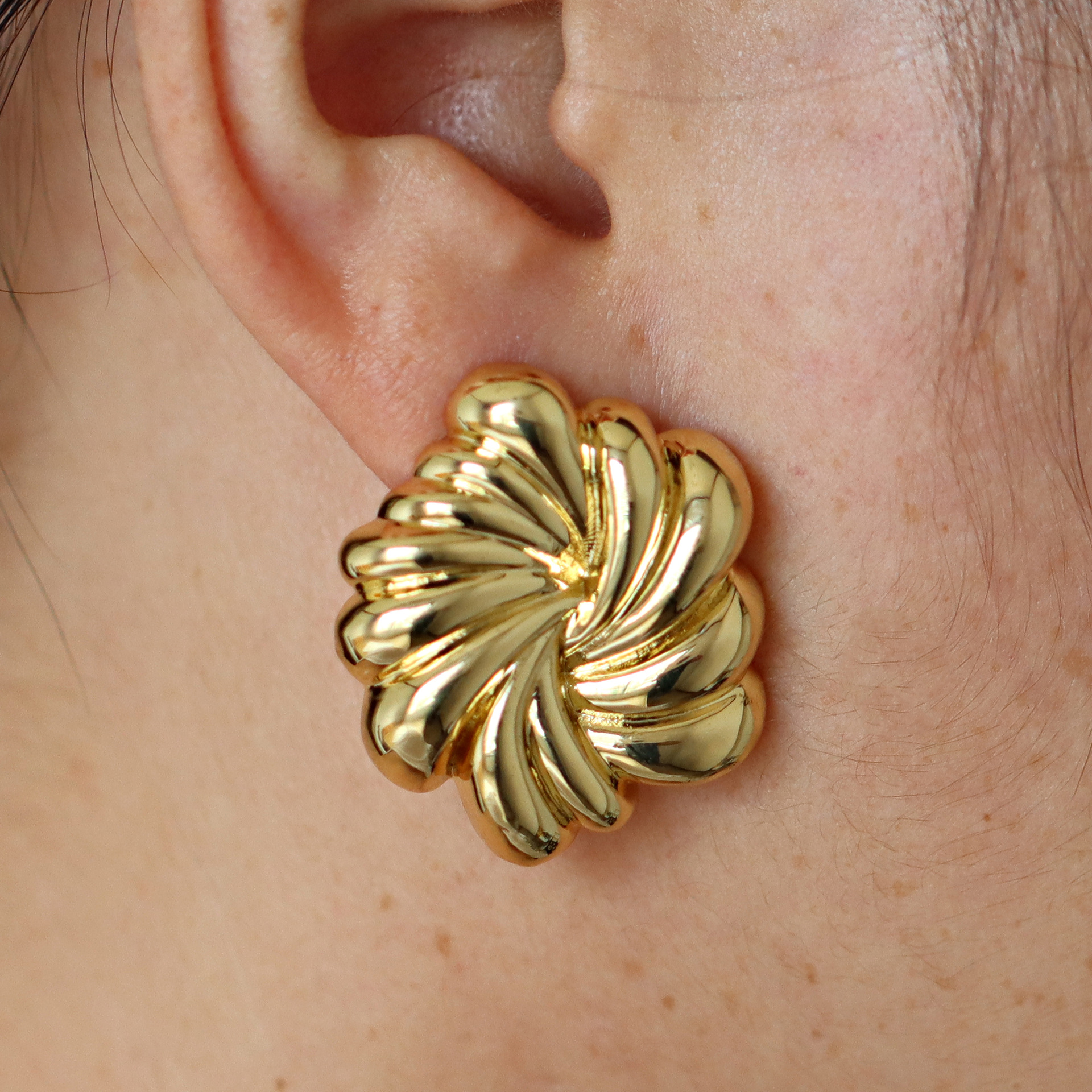 - Brass Stud Earring, Rose, real gold plated