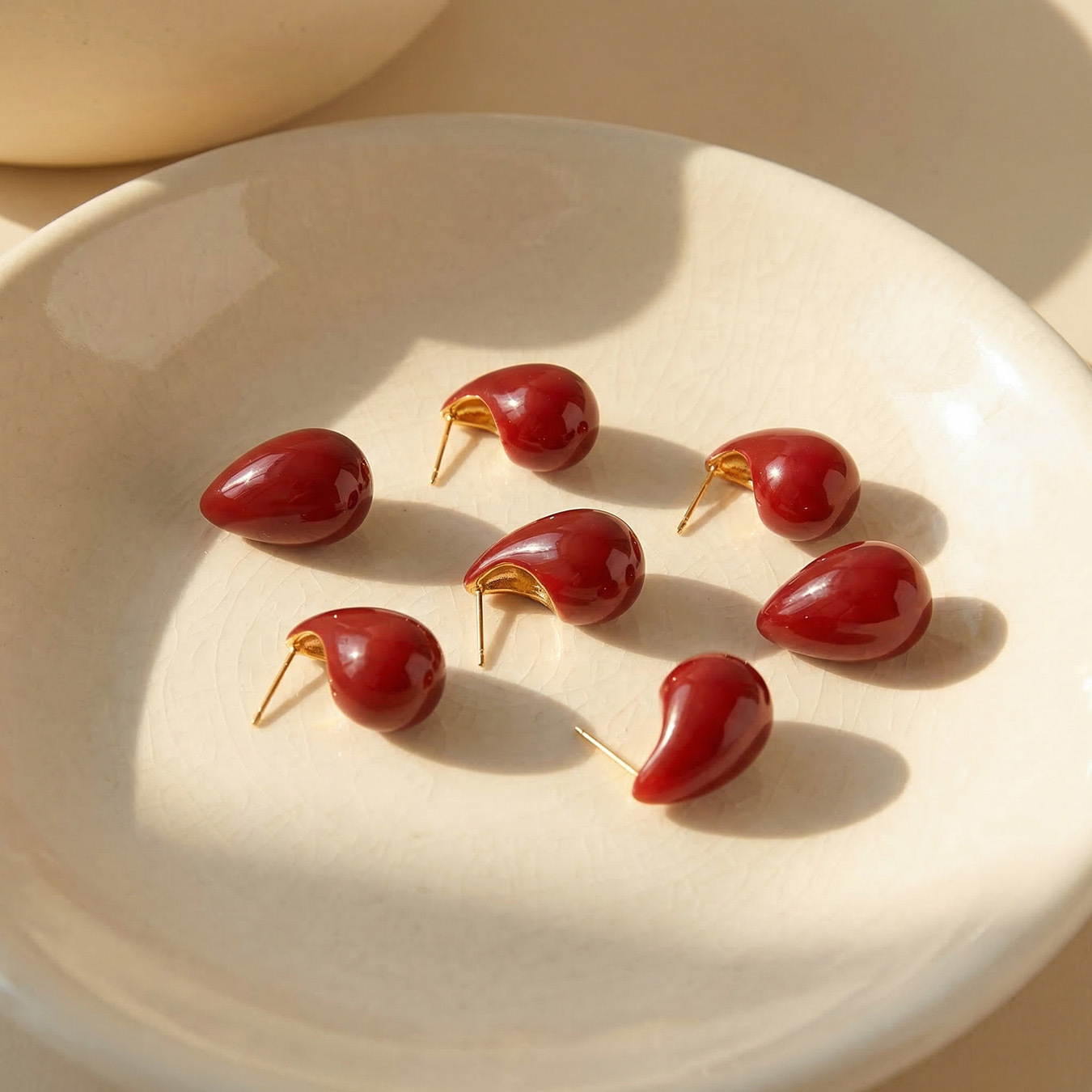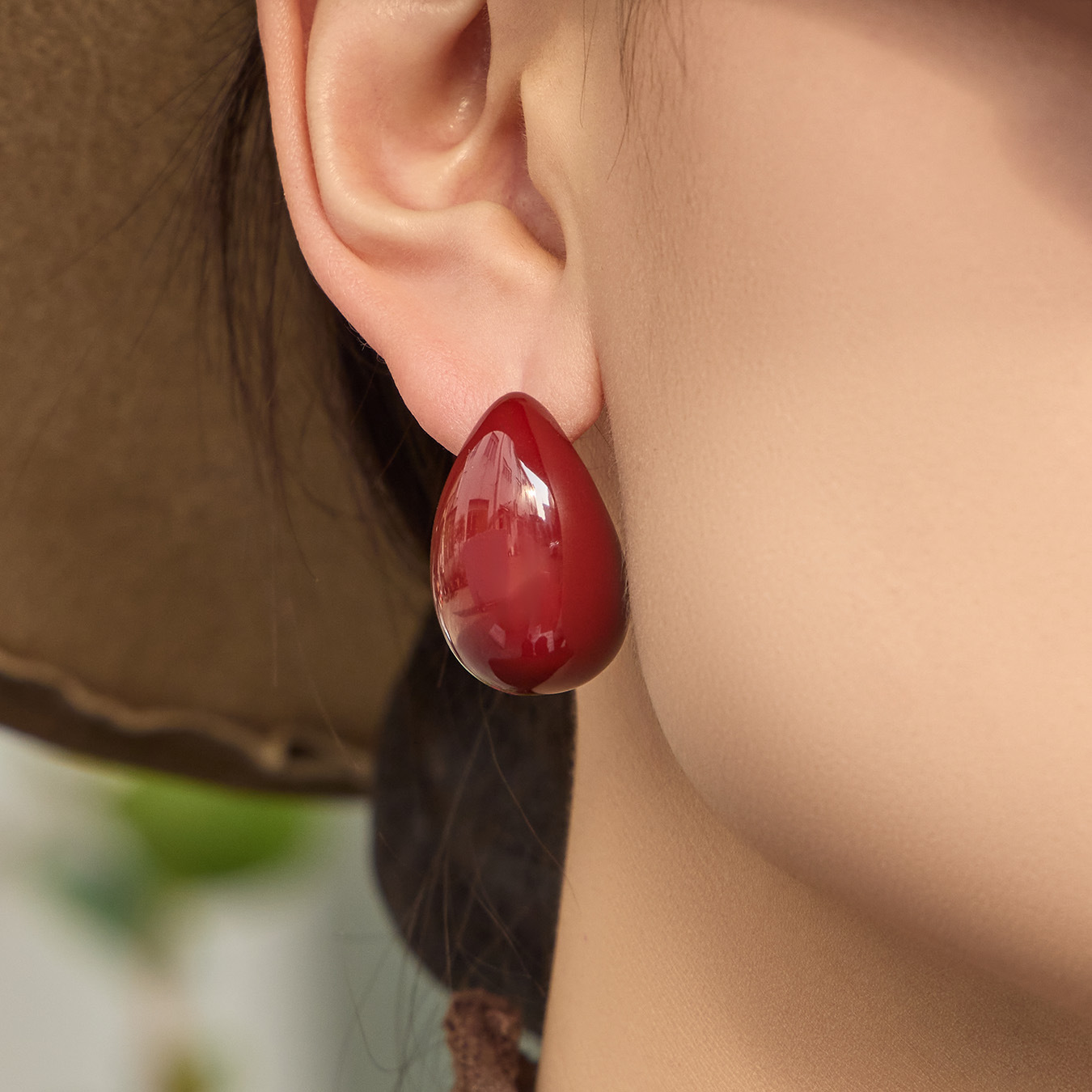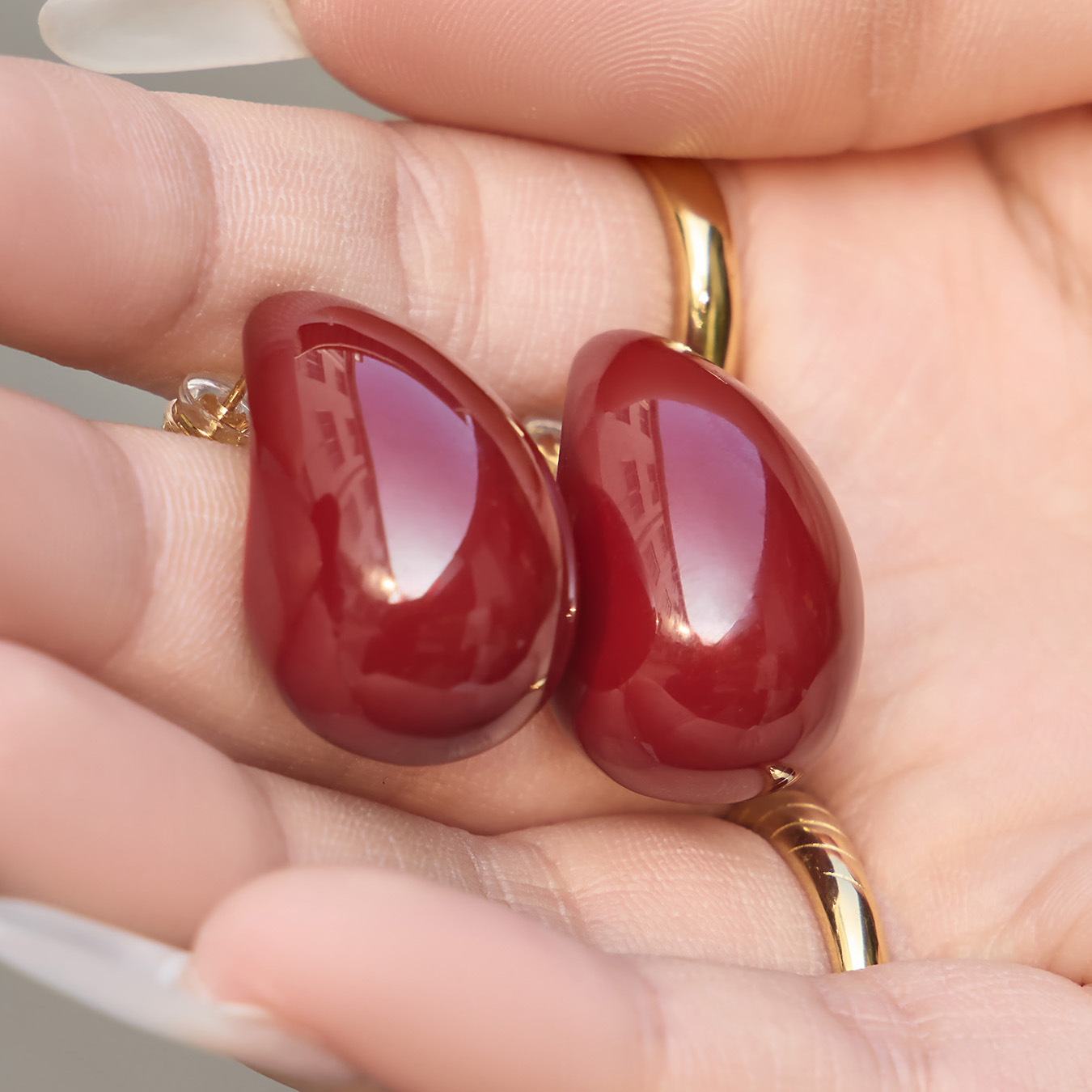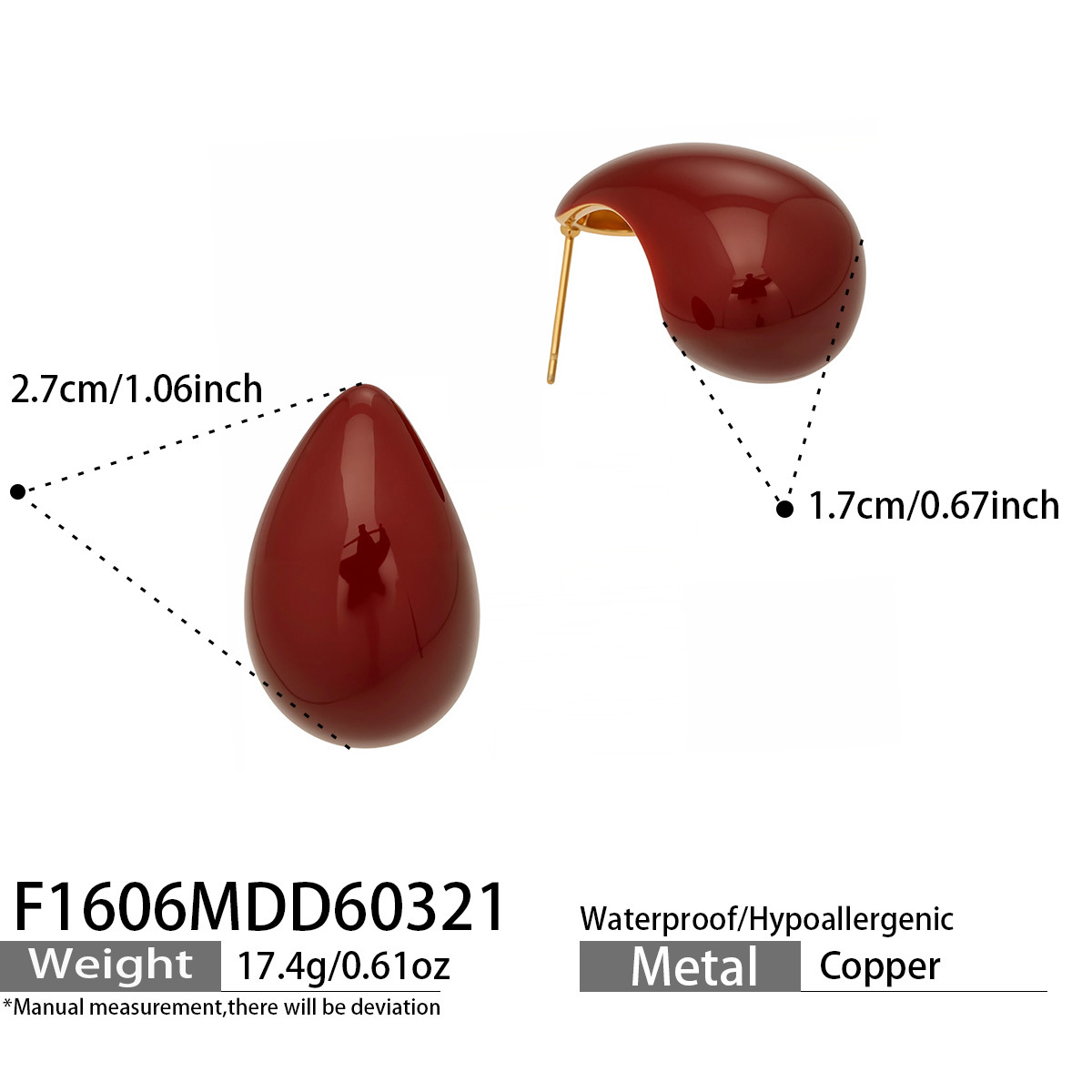 Brass Stud Earring, Teardrop, gold color plated, for woman & enamel, red, 17x27mm, Sold By Pair