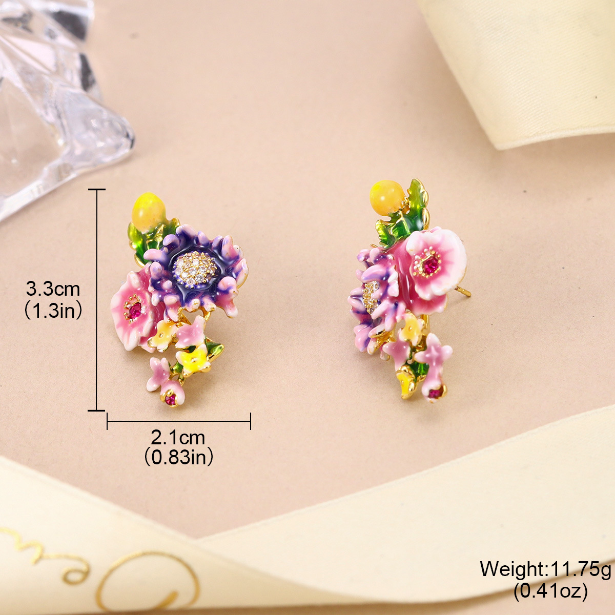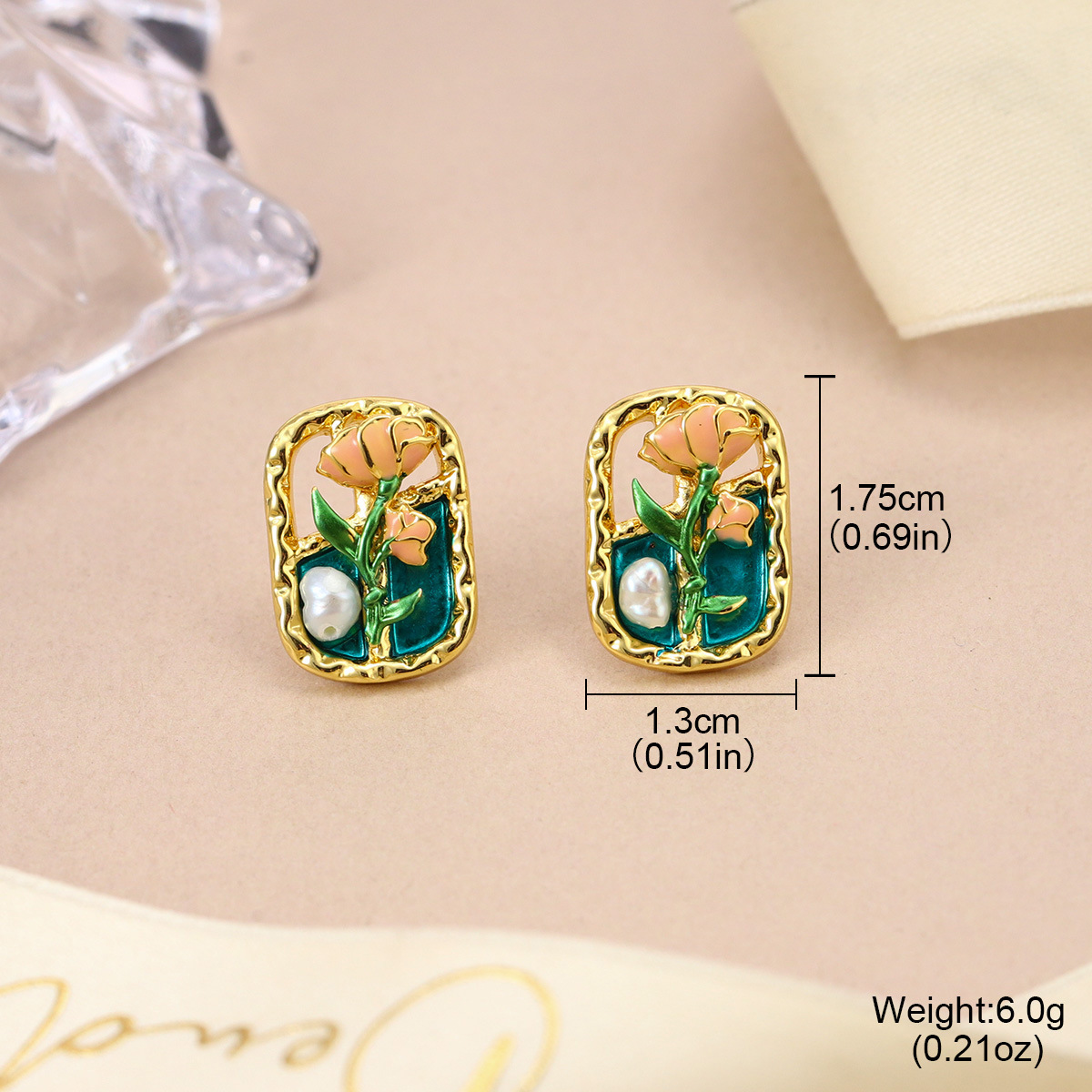 - Brass Stud Earring, Geometrical Pattern, gold color plated