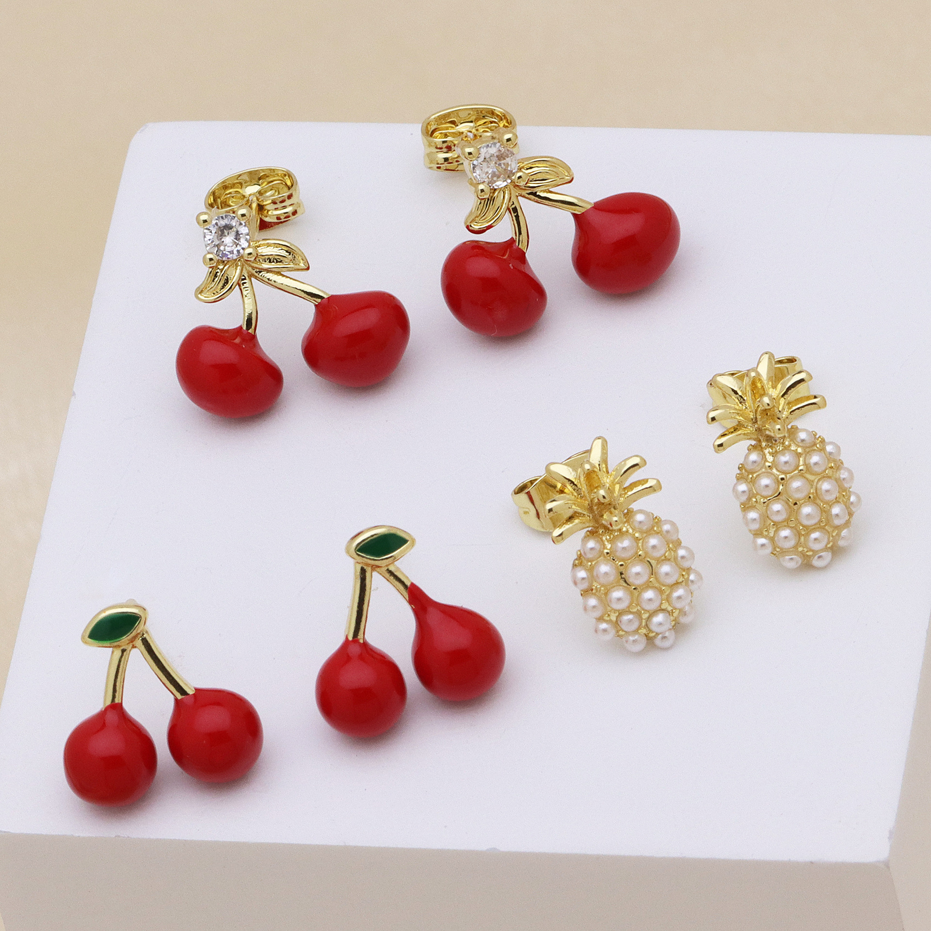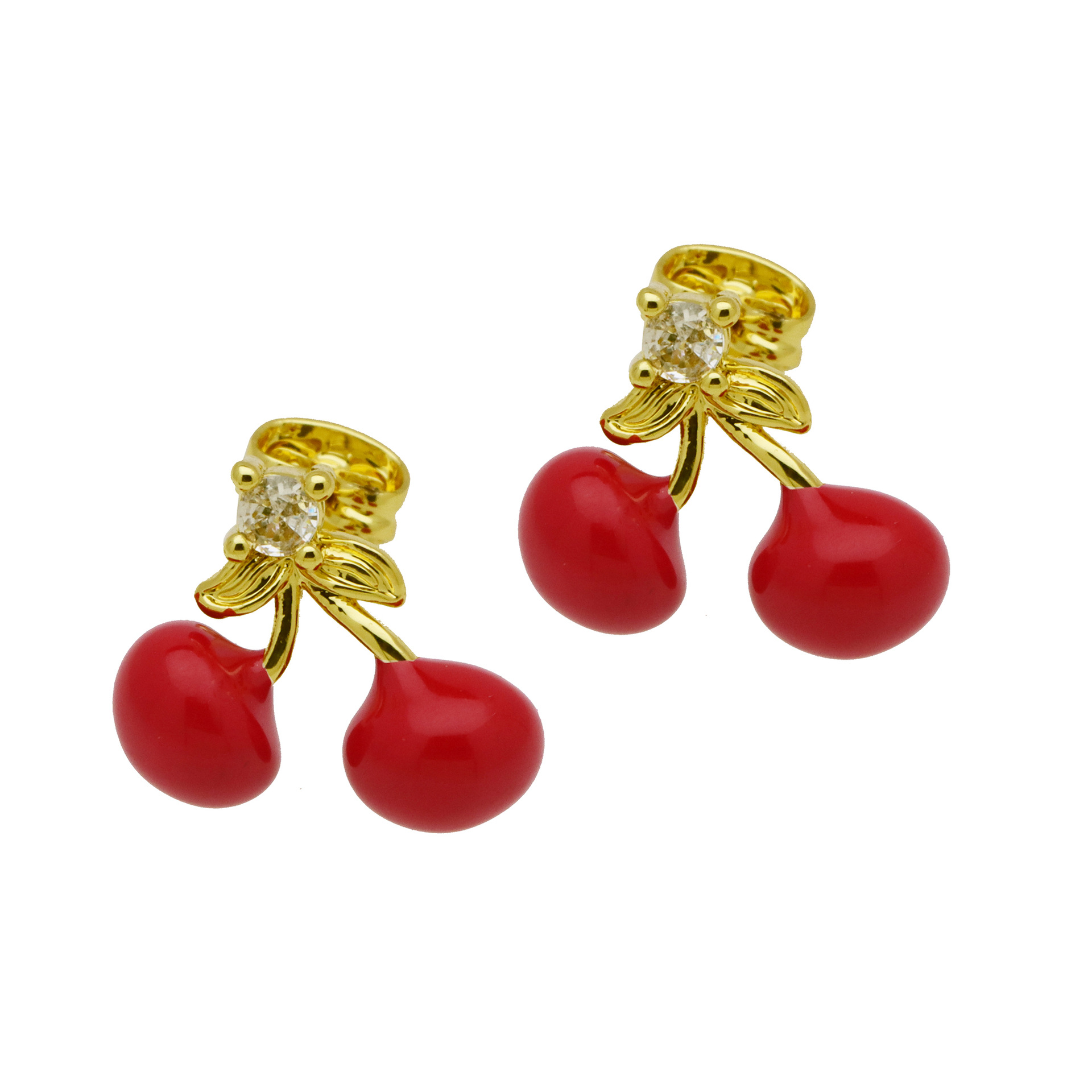 - Brass Stud Earring, with Jade, fashion jewelry & micro pave cubic zirconia & for woman & enamel