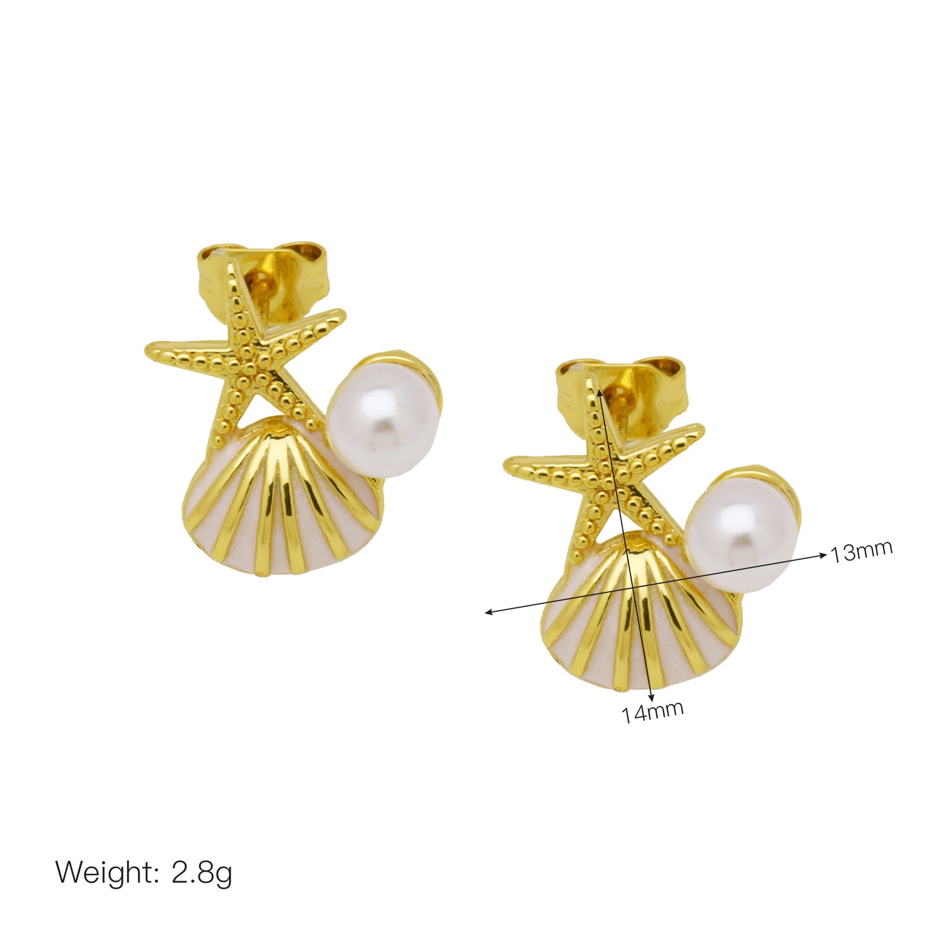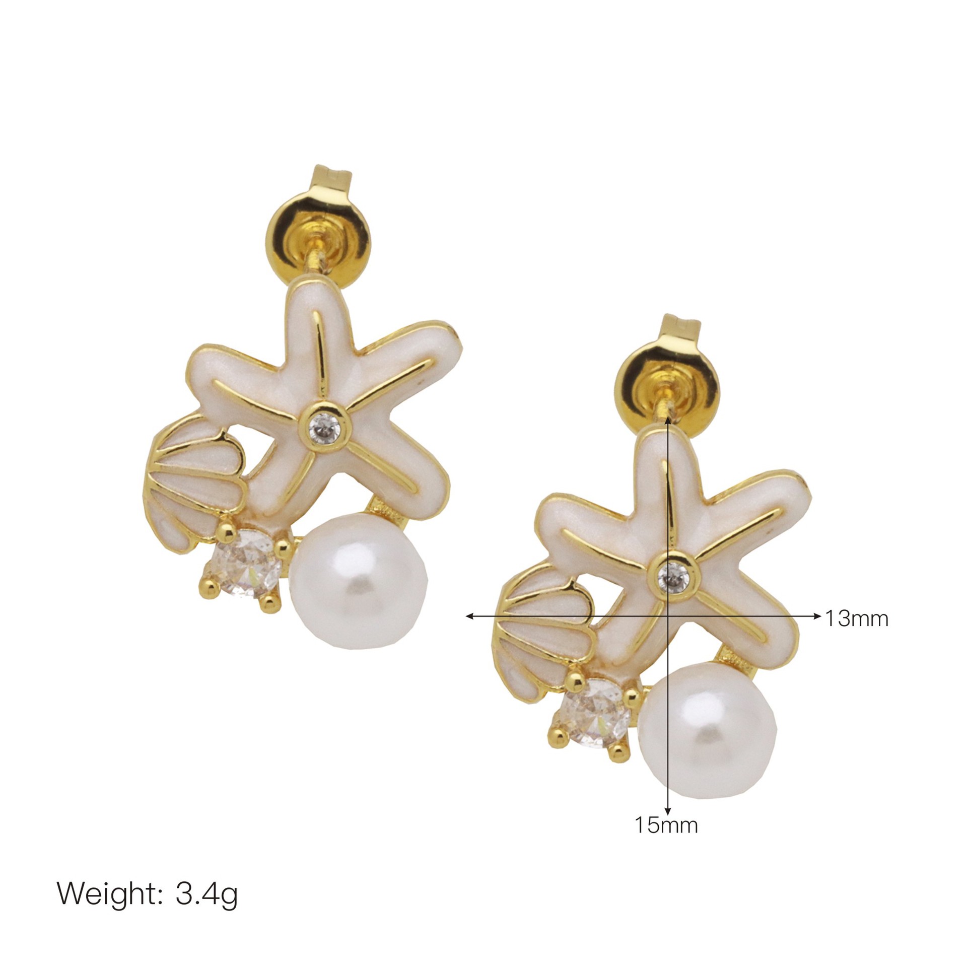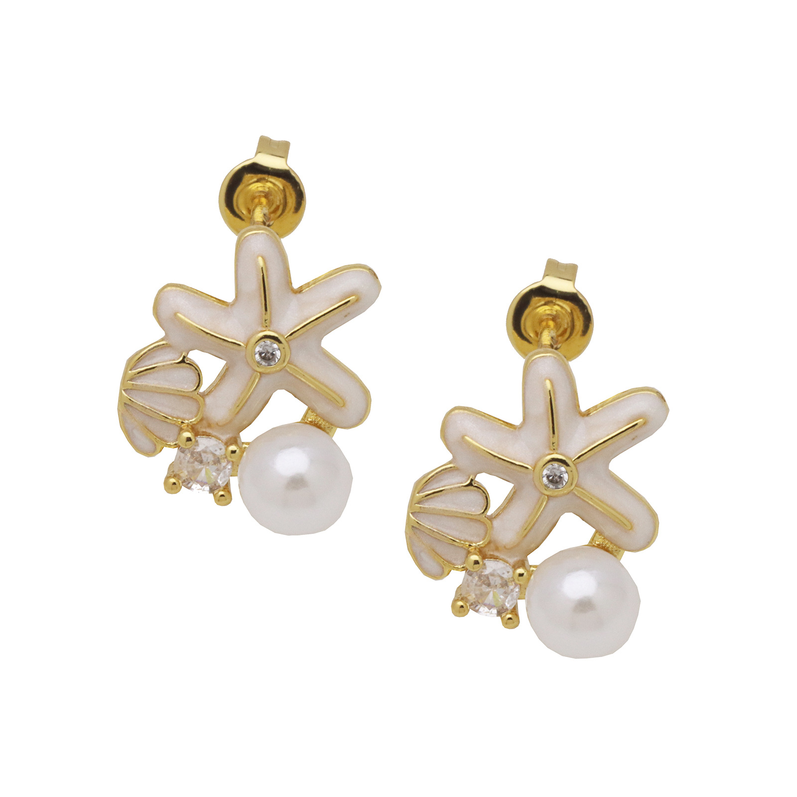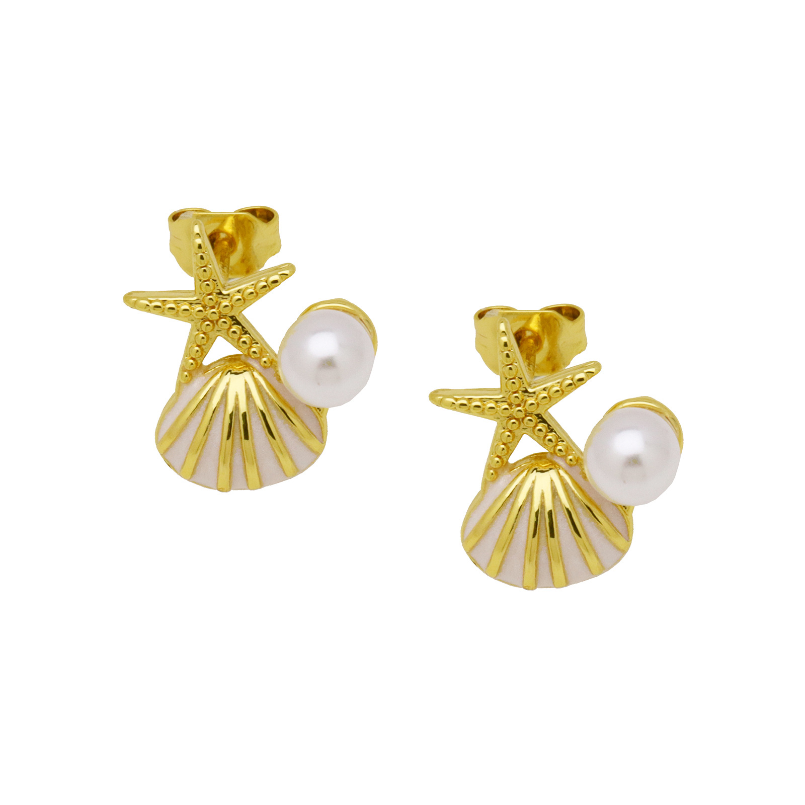 - Brass Stud Earring, with Plastic Pearl, real gold plated
