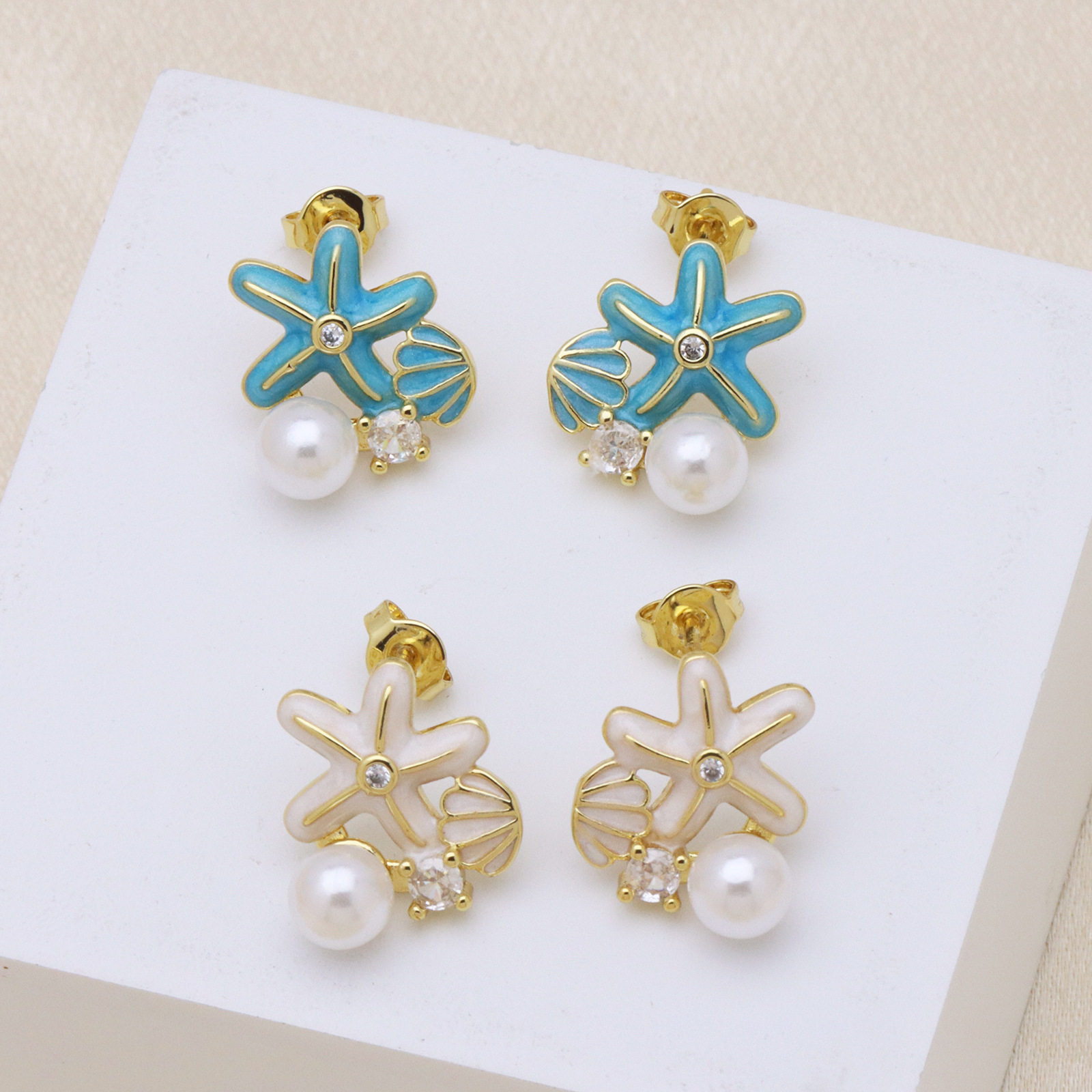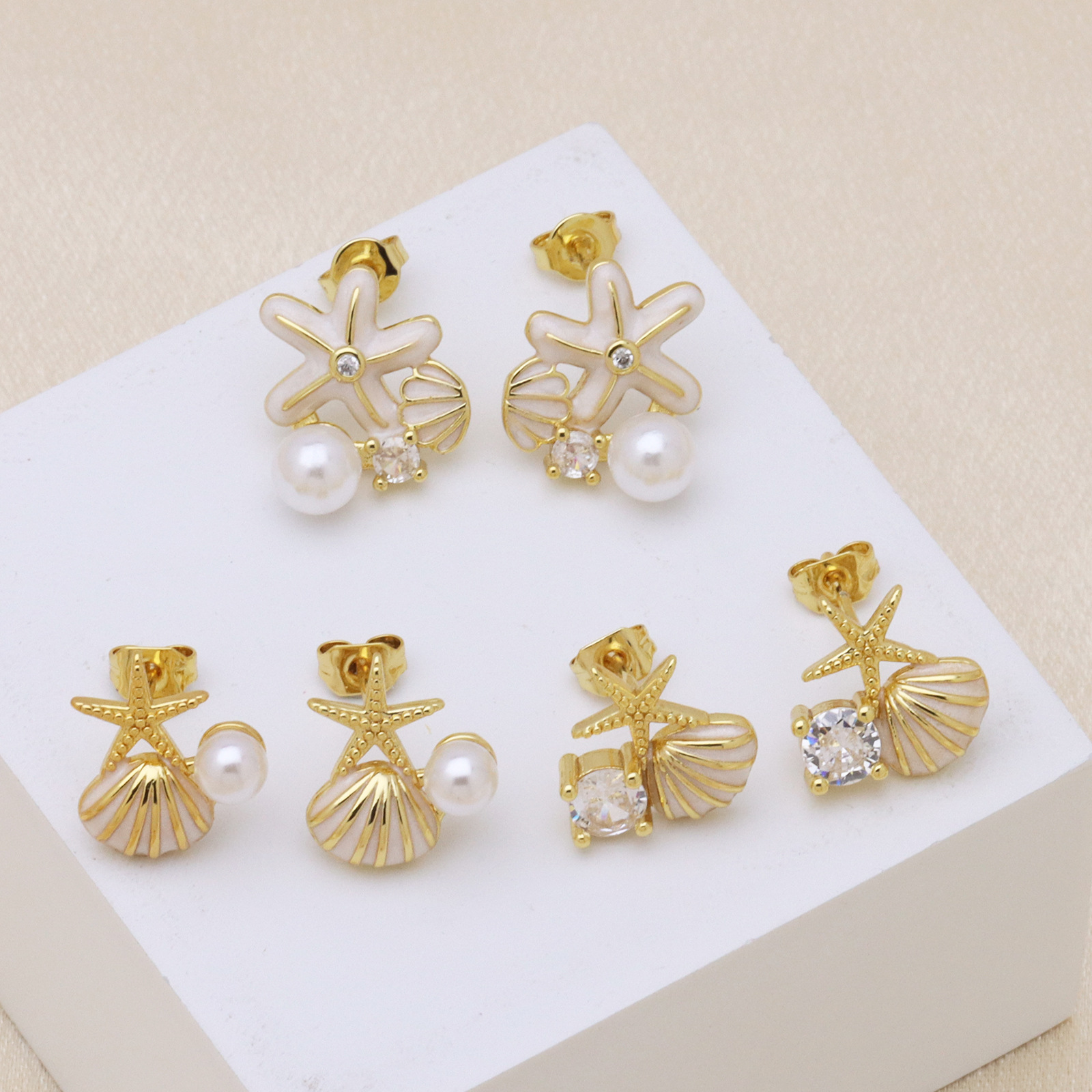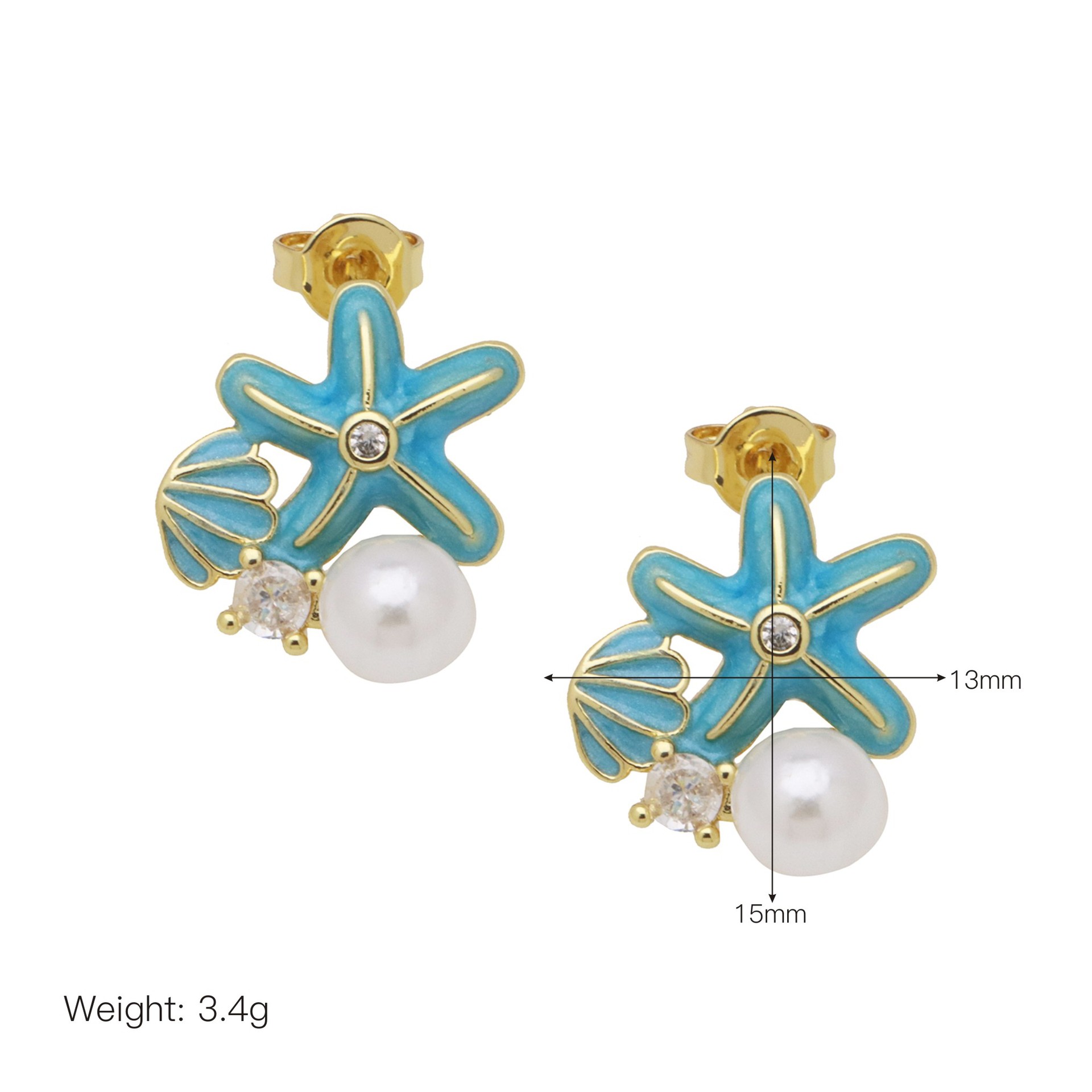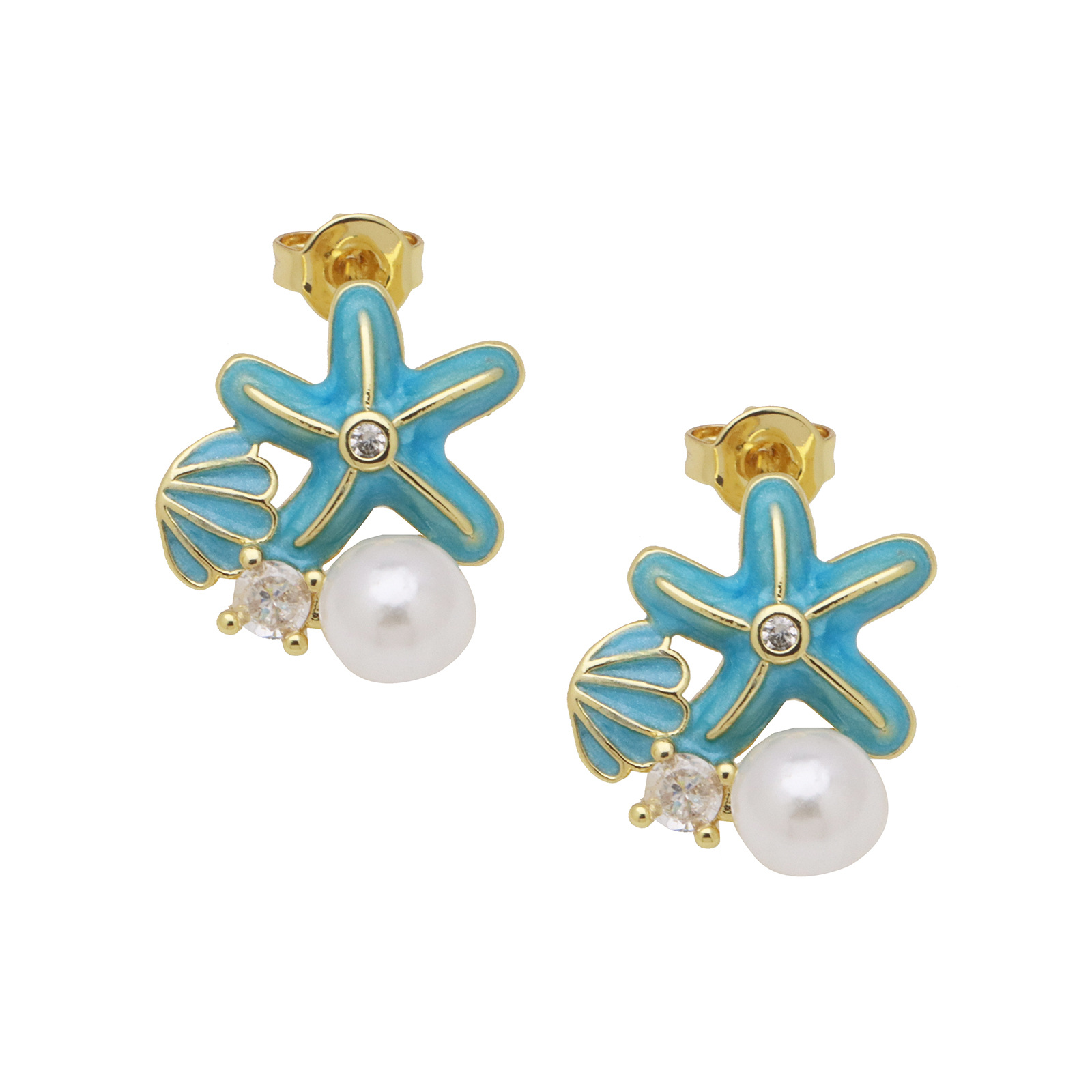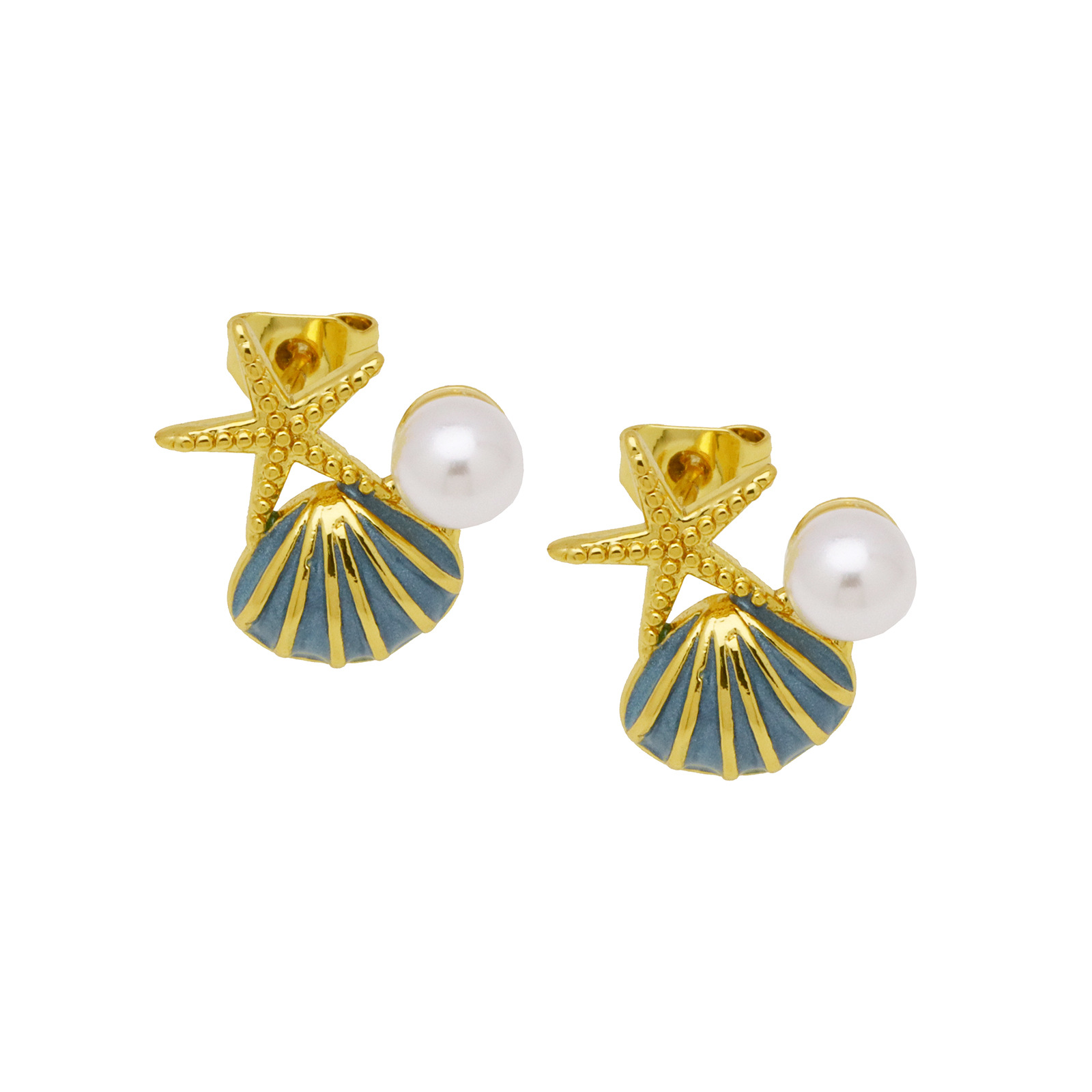 - Brass Stud Earring, with Plastic Pearl, real gold plated