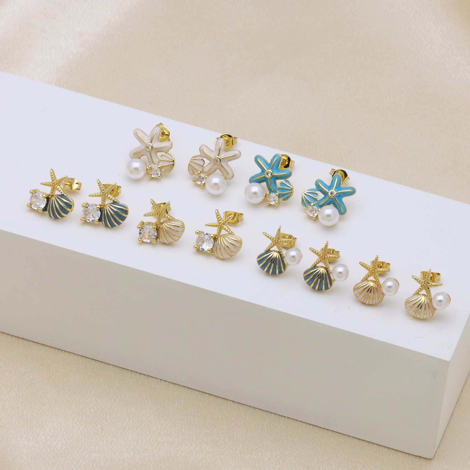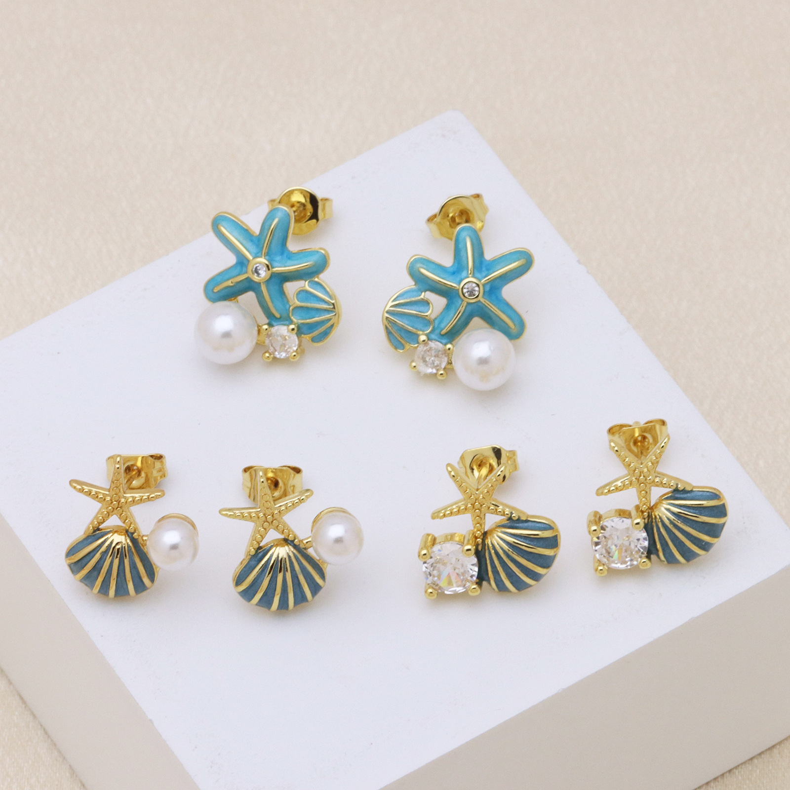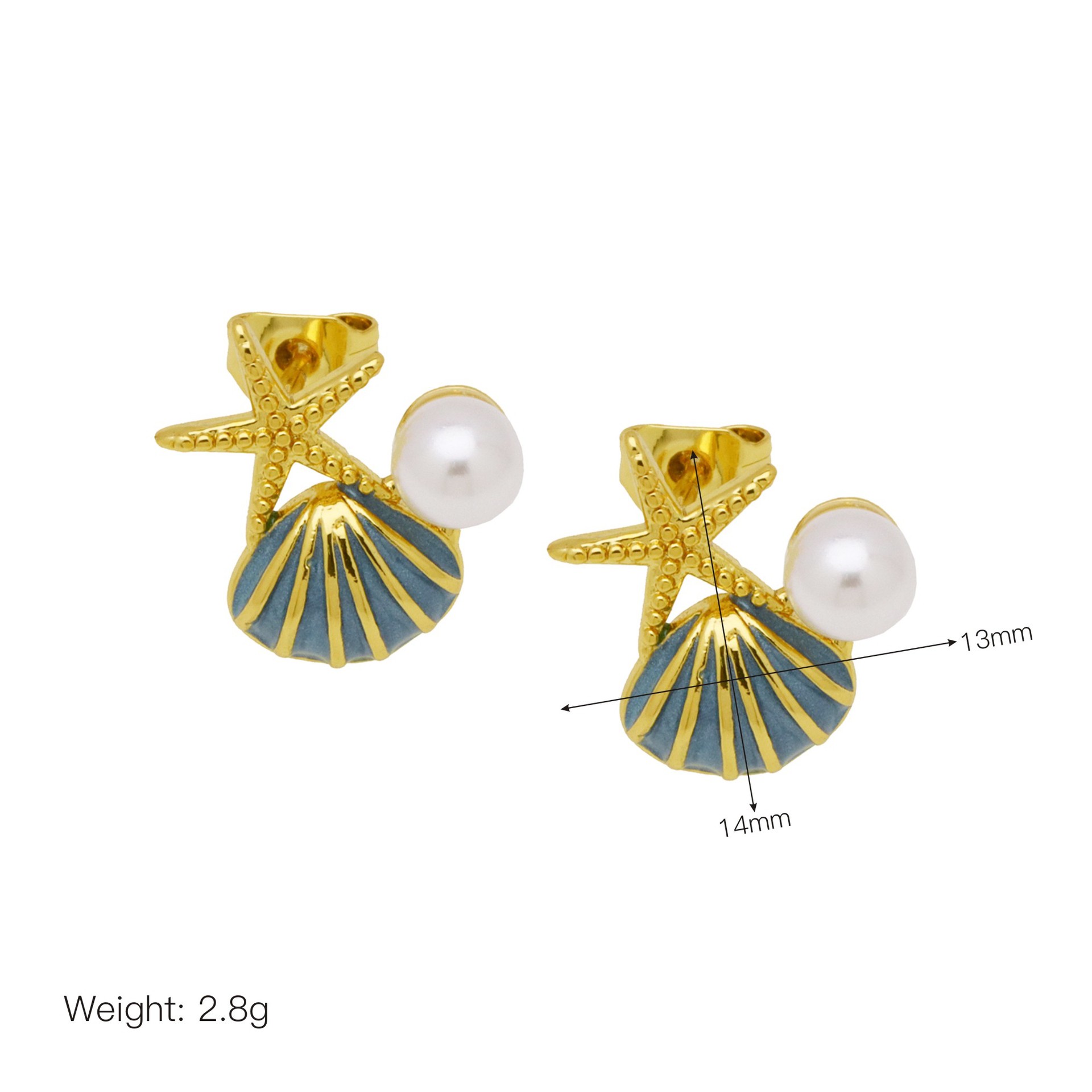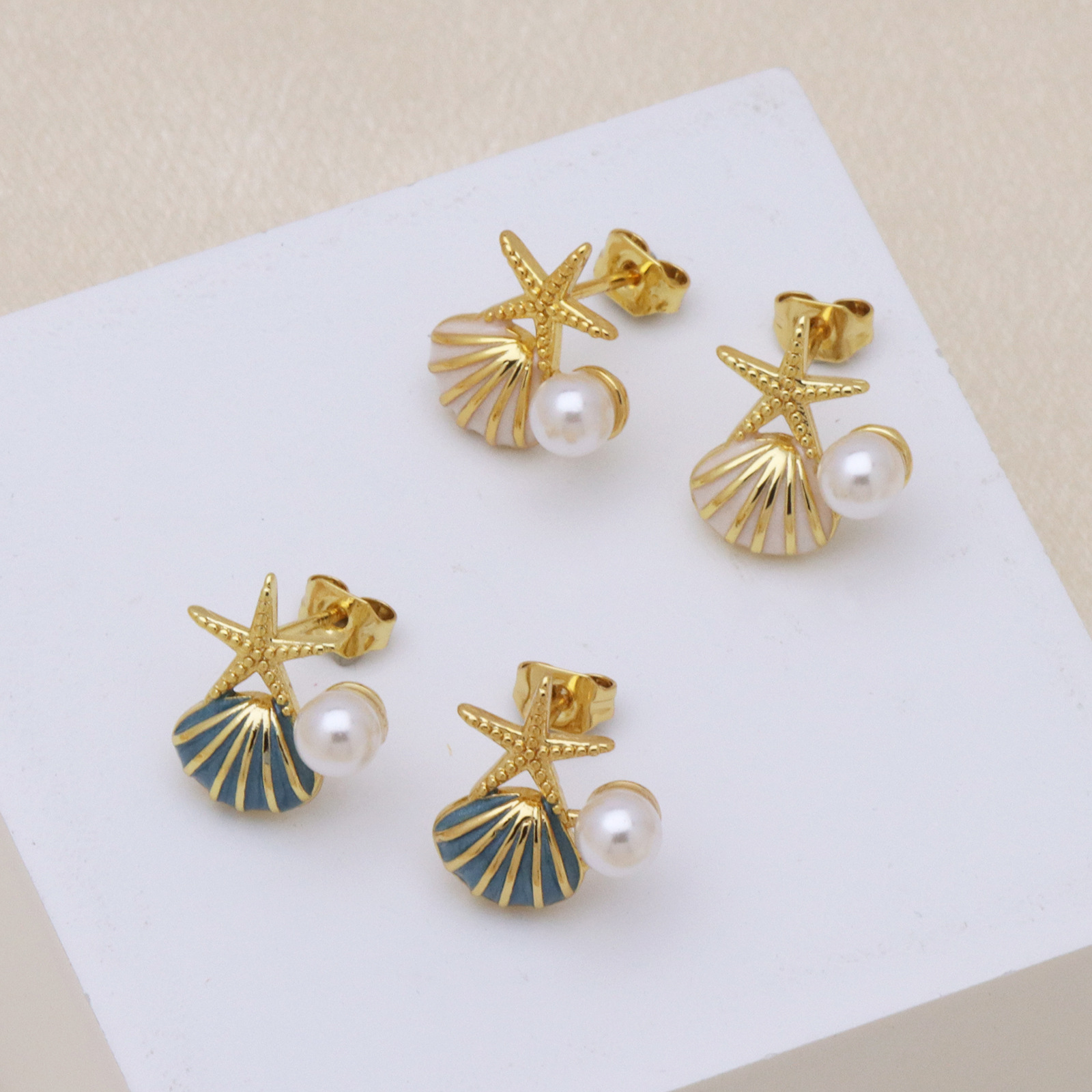 - Brass Stud Earring, with Plastic Pearl, real gold plated