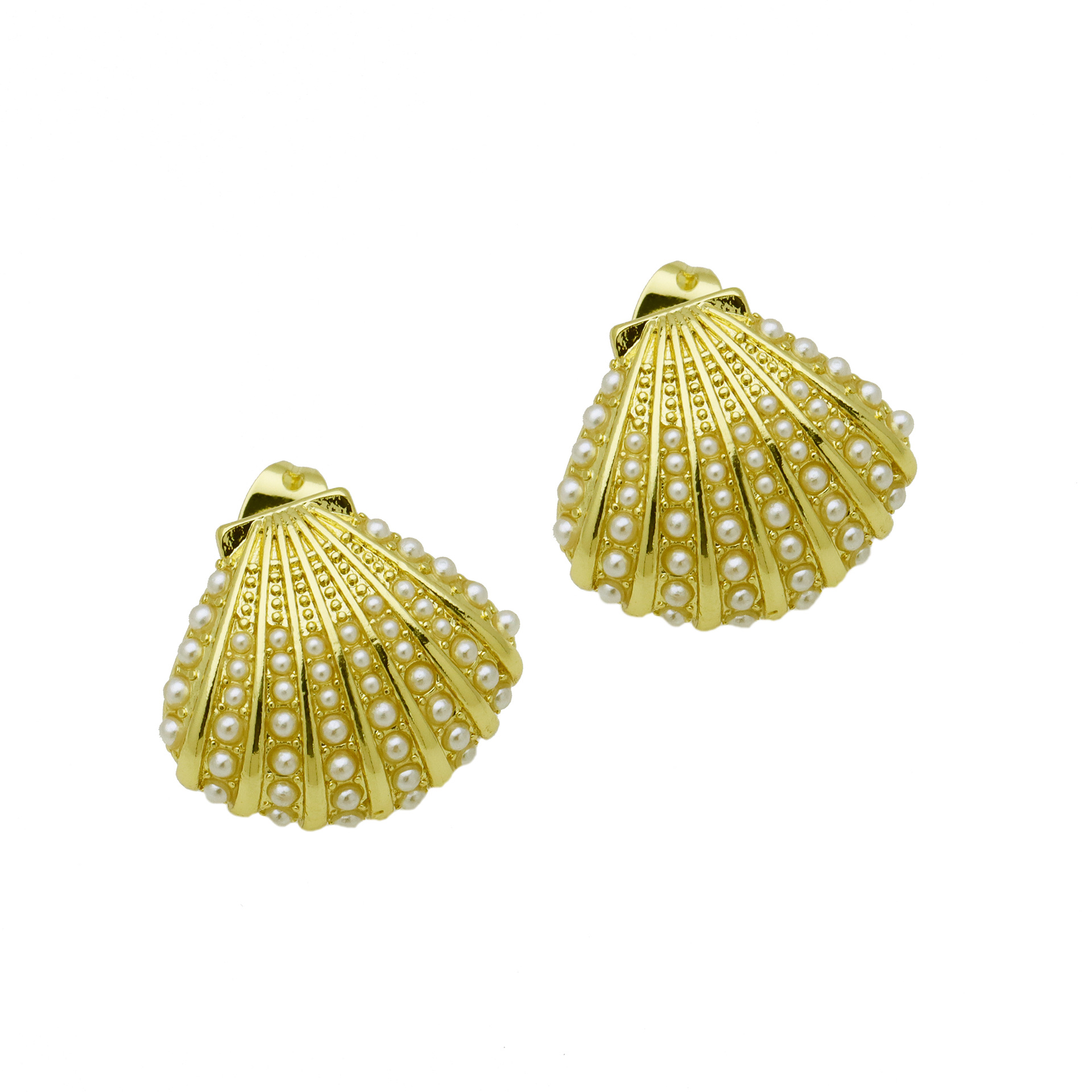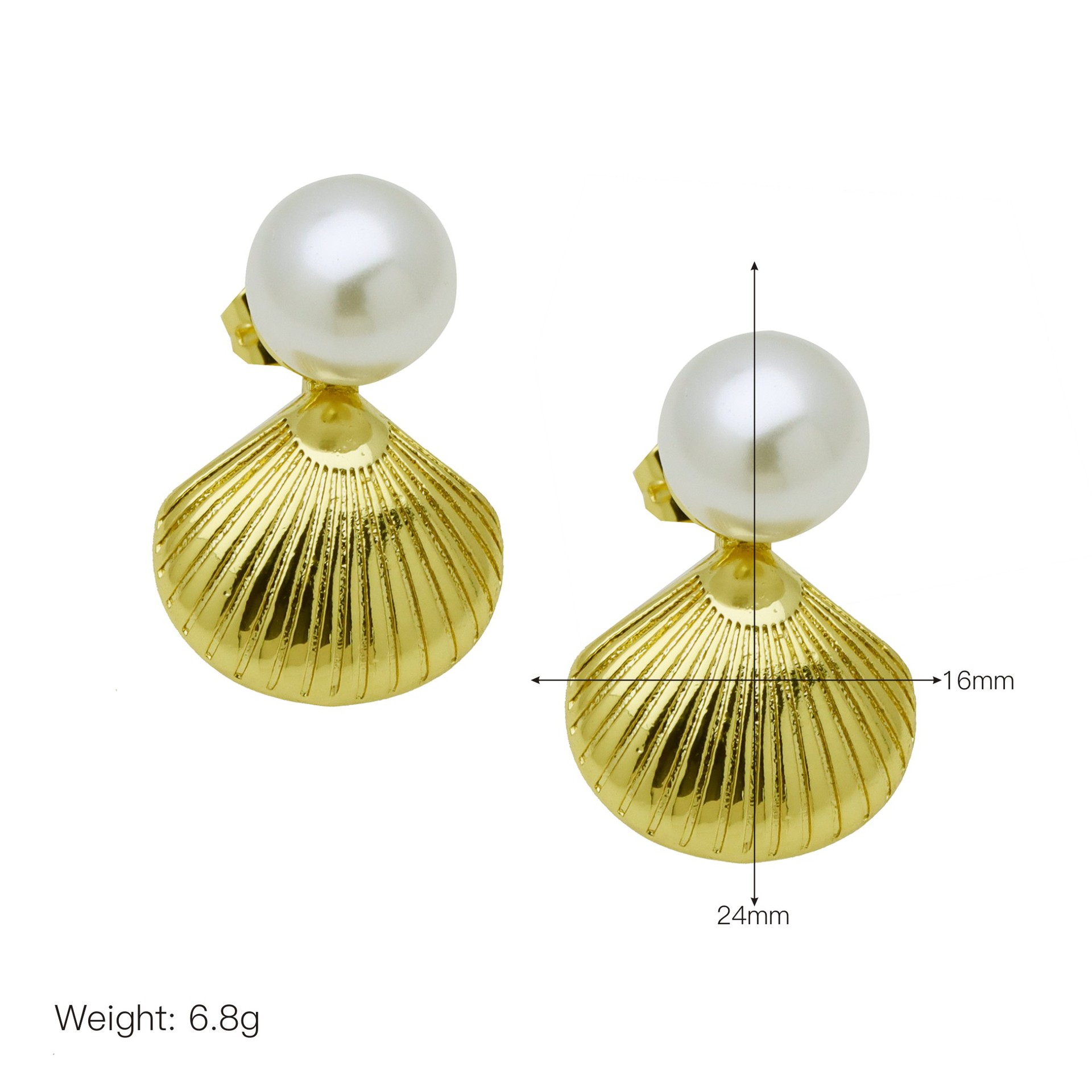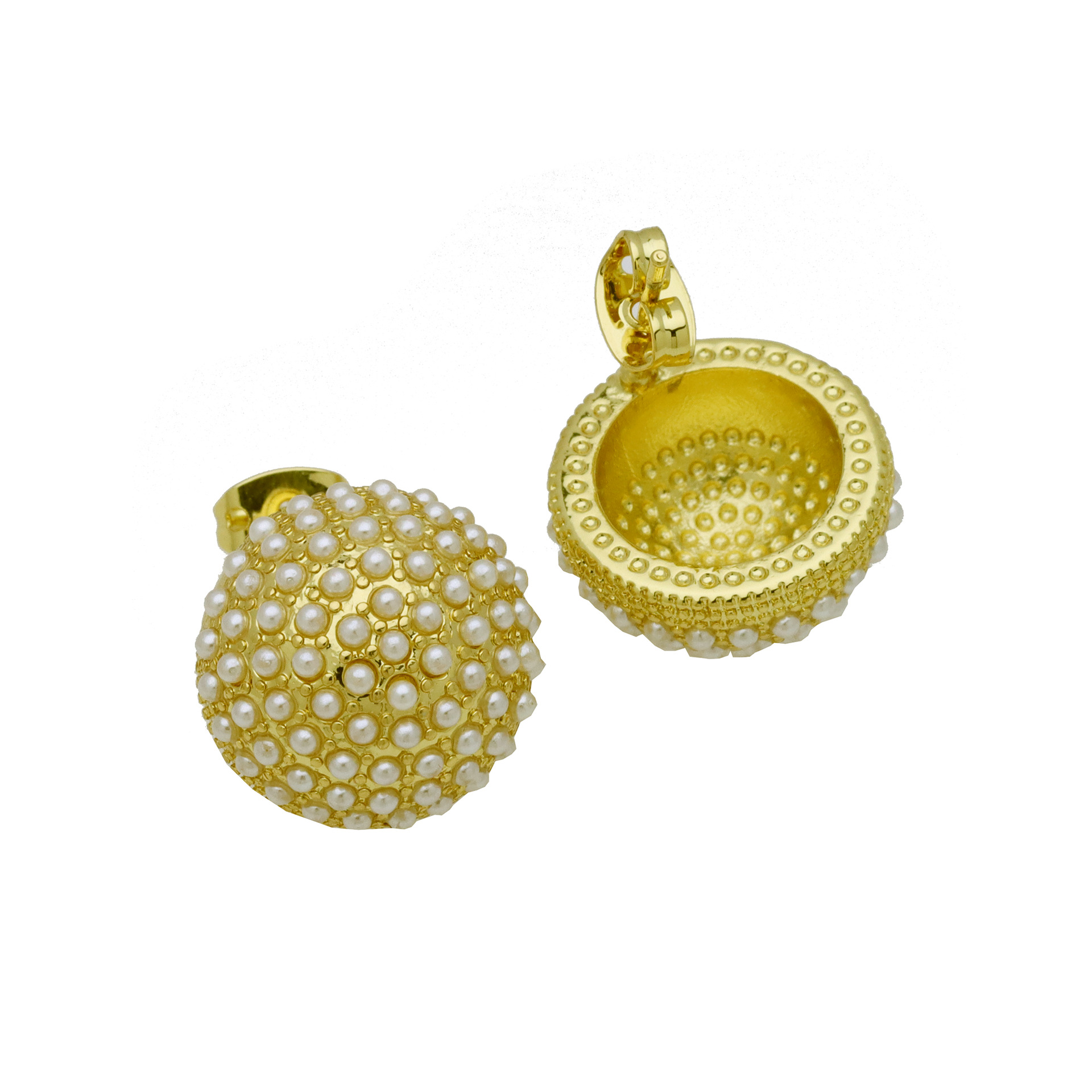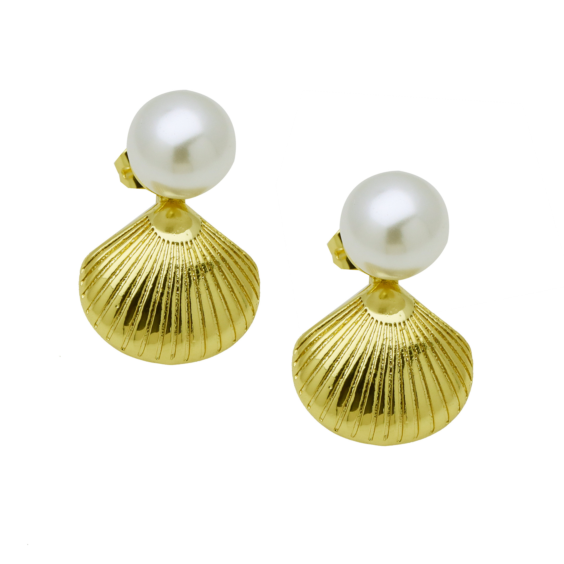 - Brass Stud Earring, with Plastic Pearl, Flower