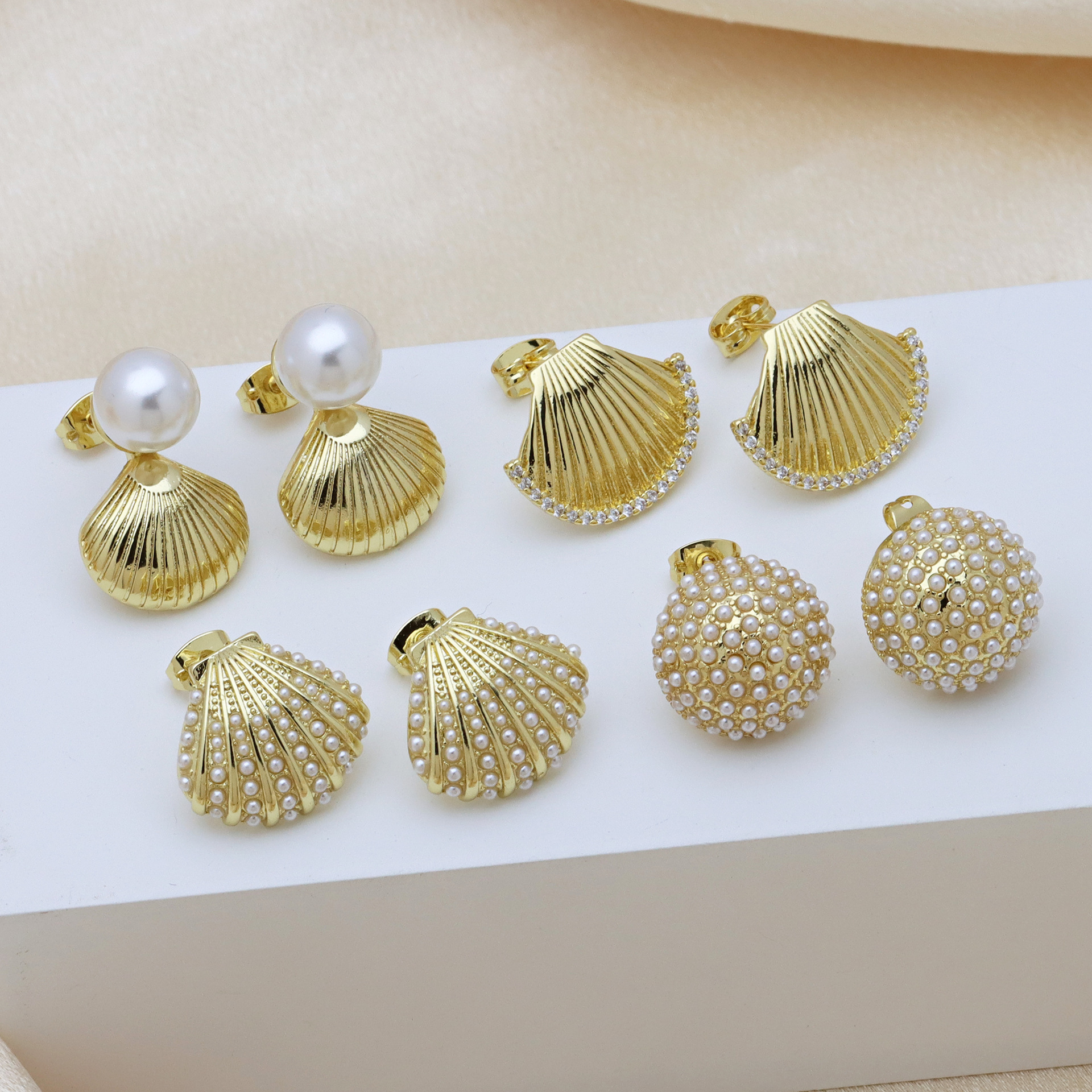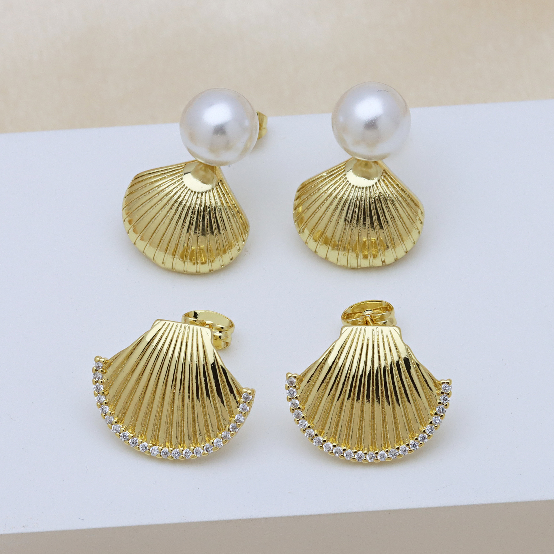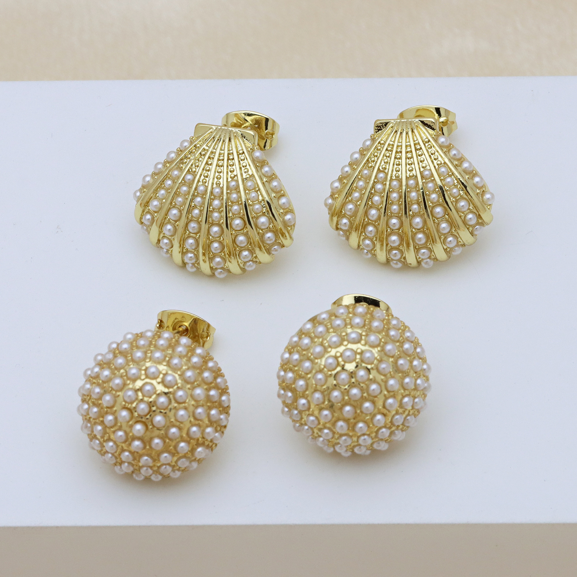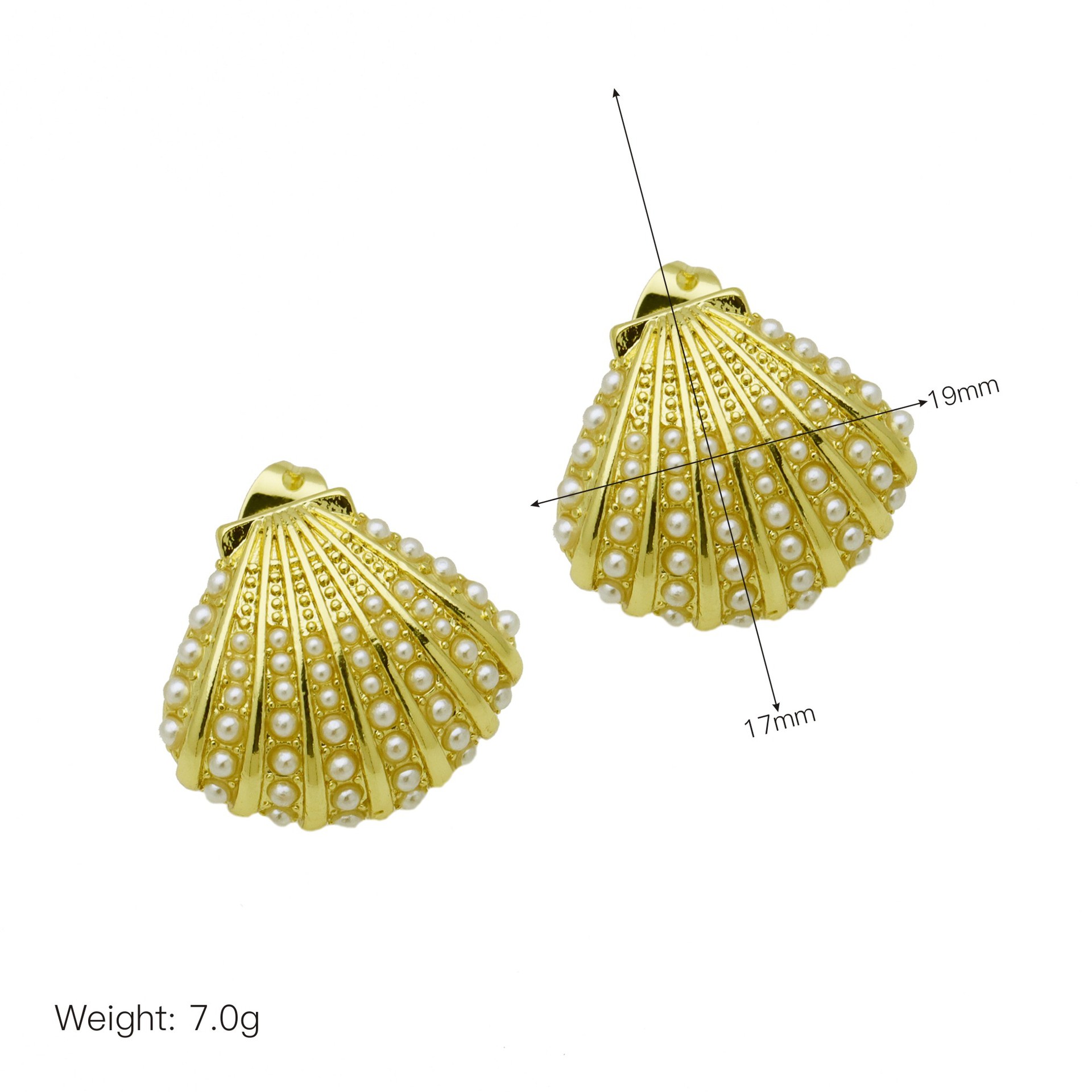 - Brass Stud Earring, with Plastic Pearl, Flower