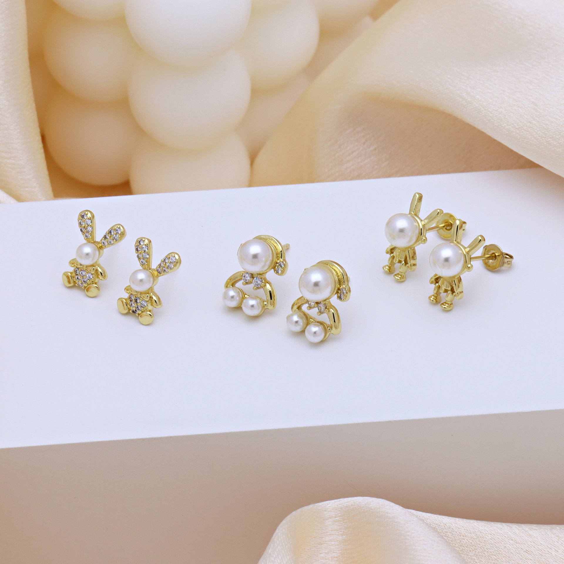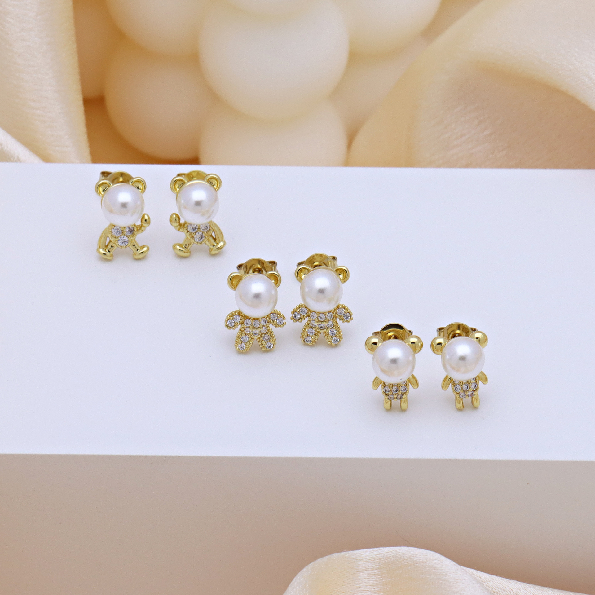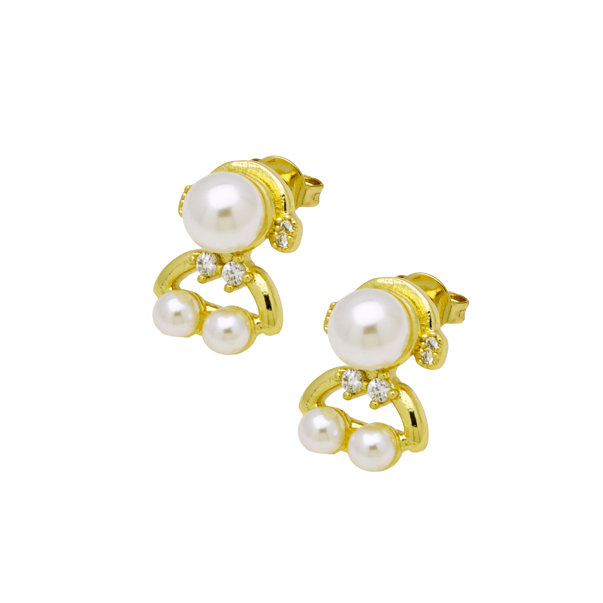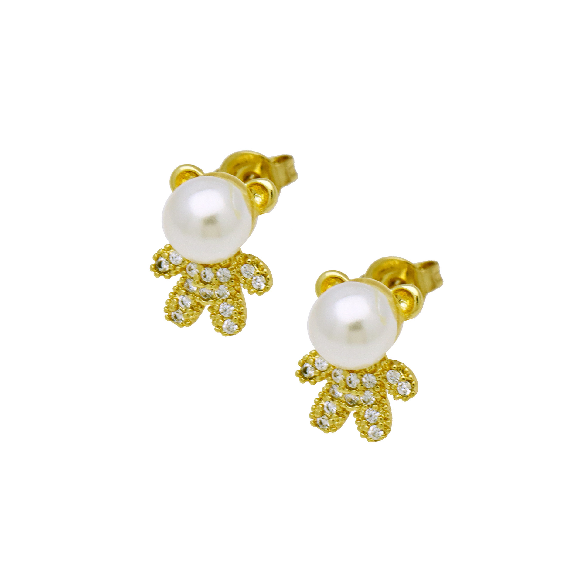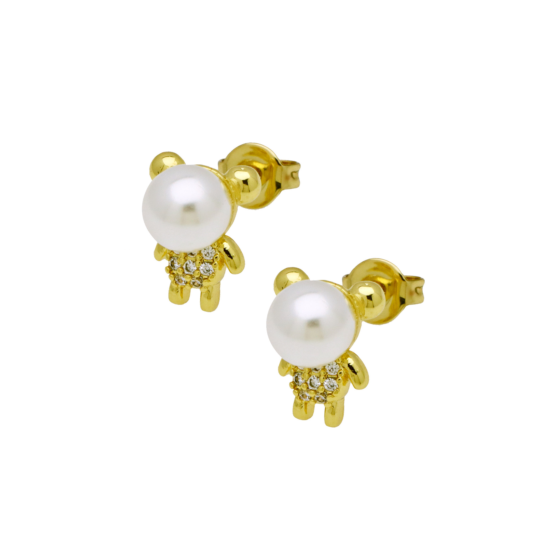 Cubic Zirconia Micro Pave Brass Earring, with Plastic Pearl, gold color plated, different styles for choice & micro pave cubic zirconia & for woman, more colors for choice, Sold By Pair