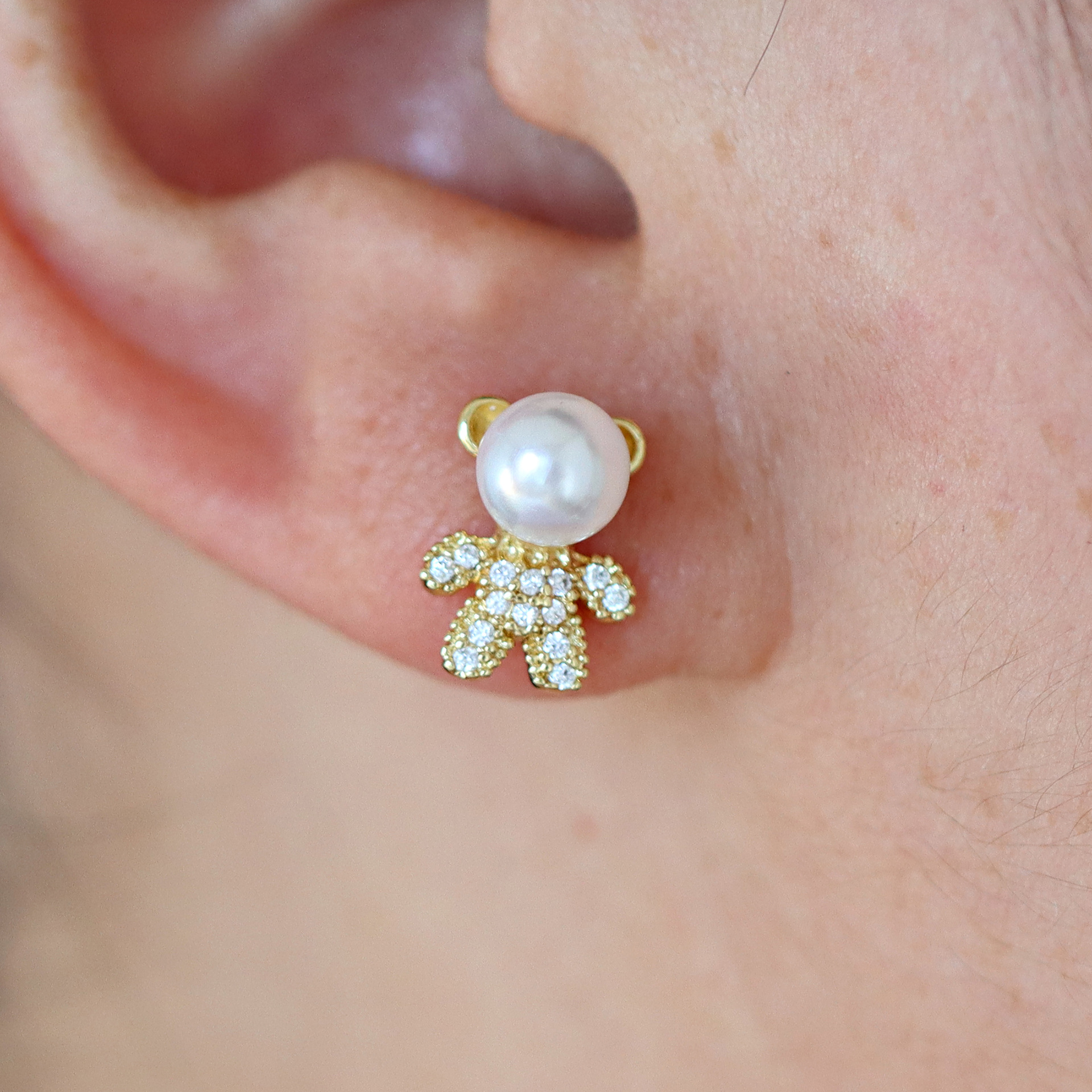 Cubic Zirconia Micro Pave Brass Earring, with Plastic Pearl, Bowknot