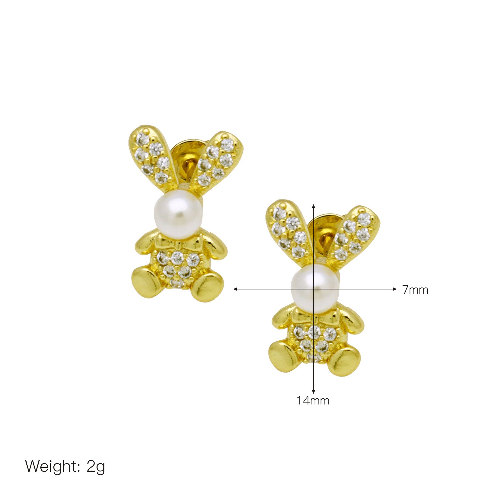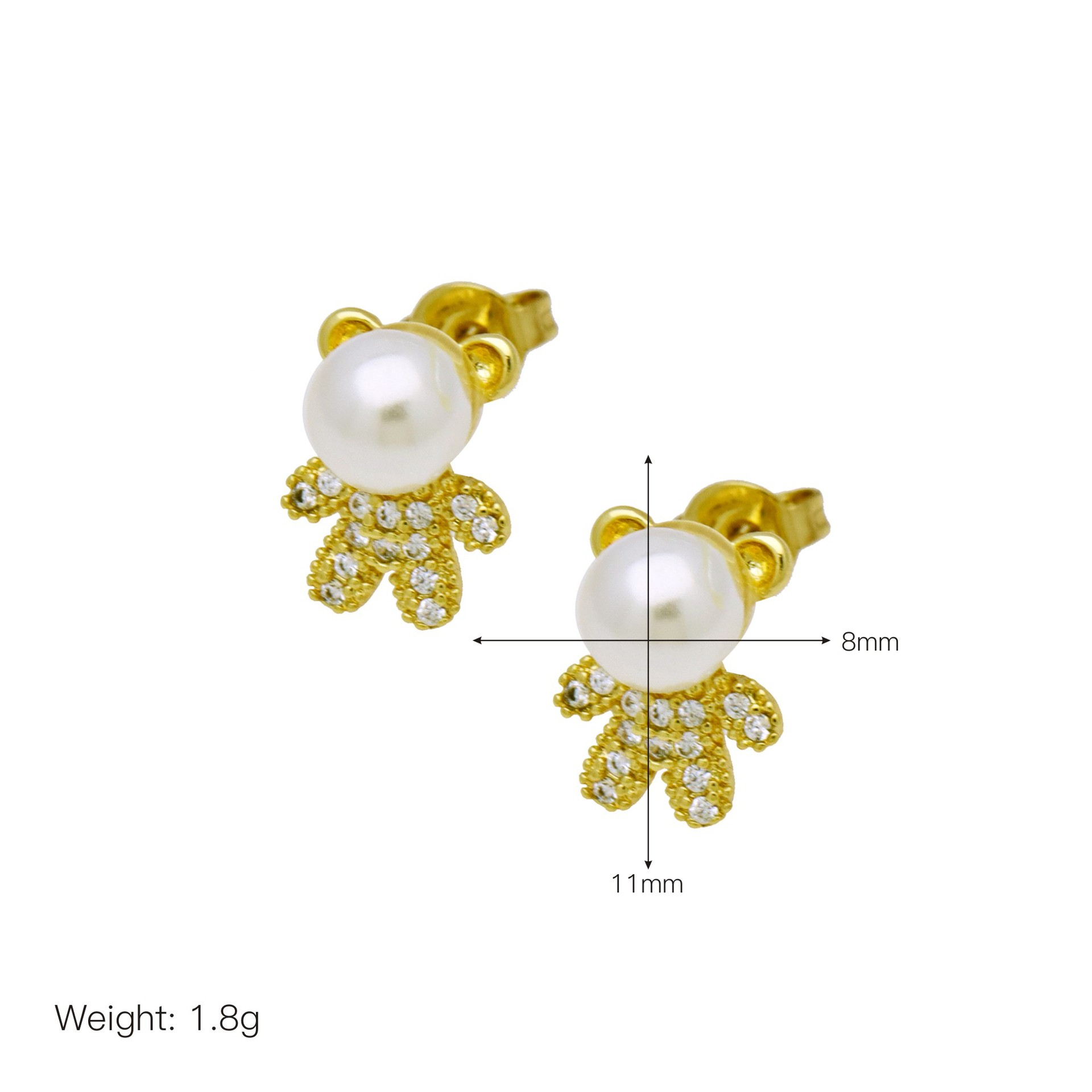 Cubic Zirconia Micro Pave Brass Earring, Number 8, 14K gold plated