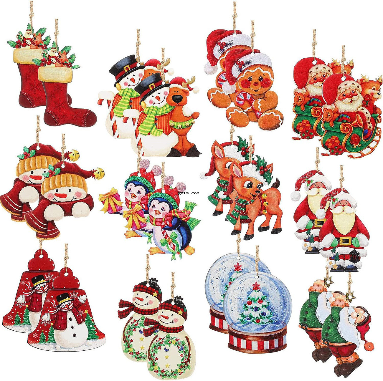 Wood Hanging Ornaments, Christmas Design, 12PCs/Set, Sold By Set
