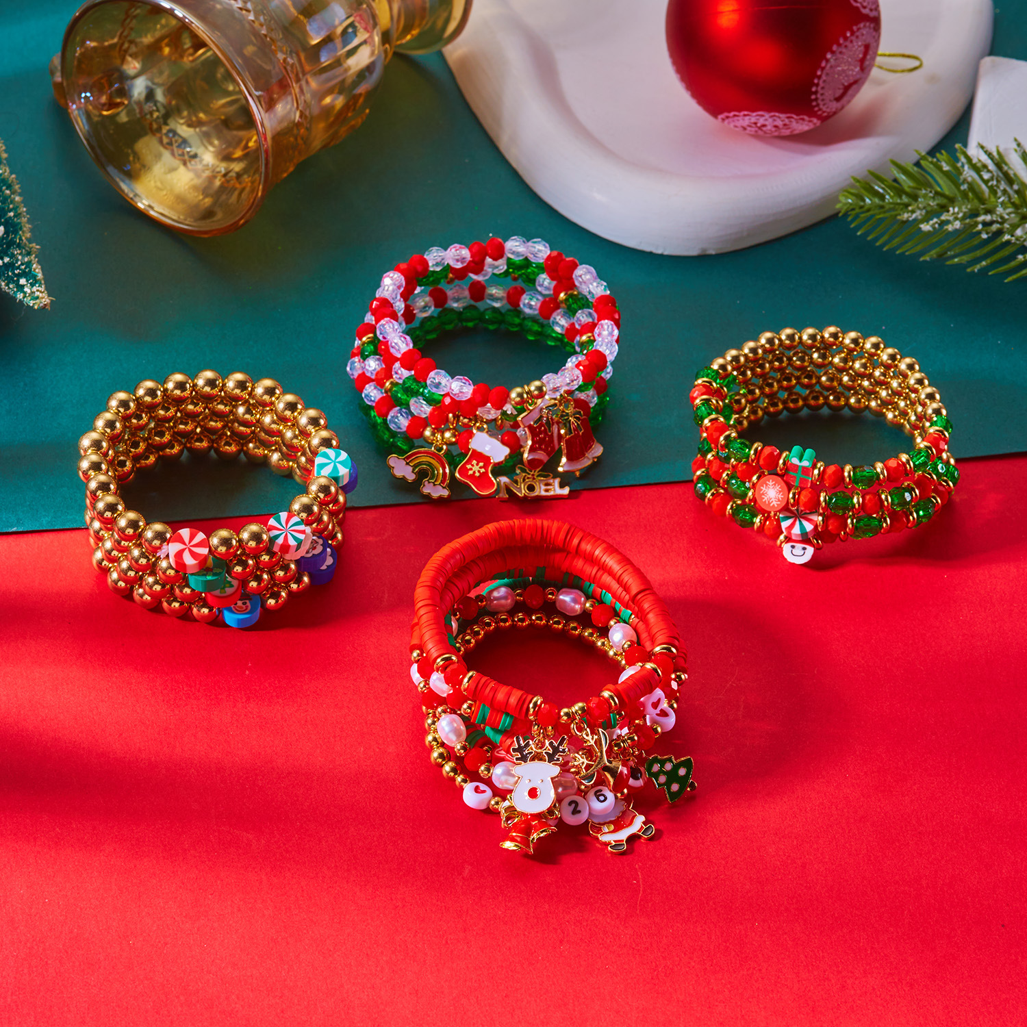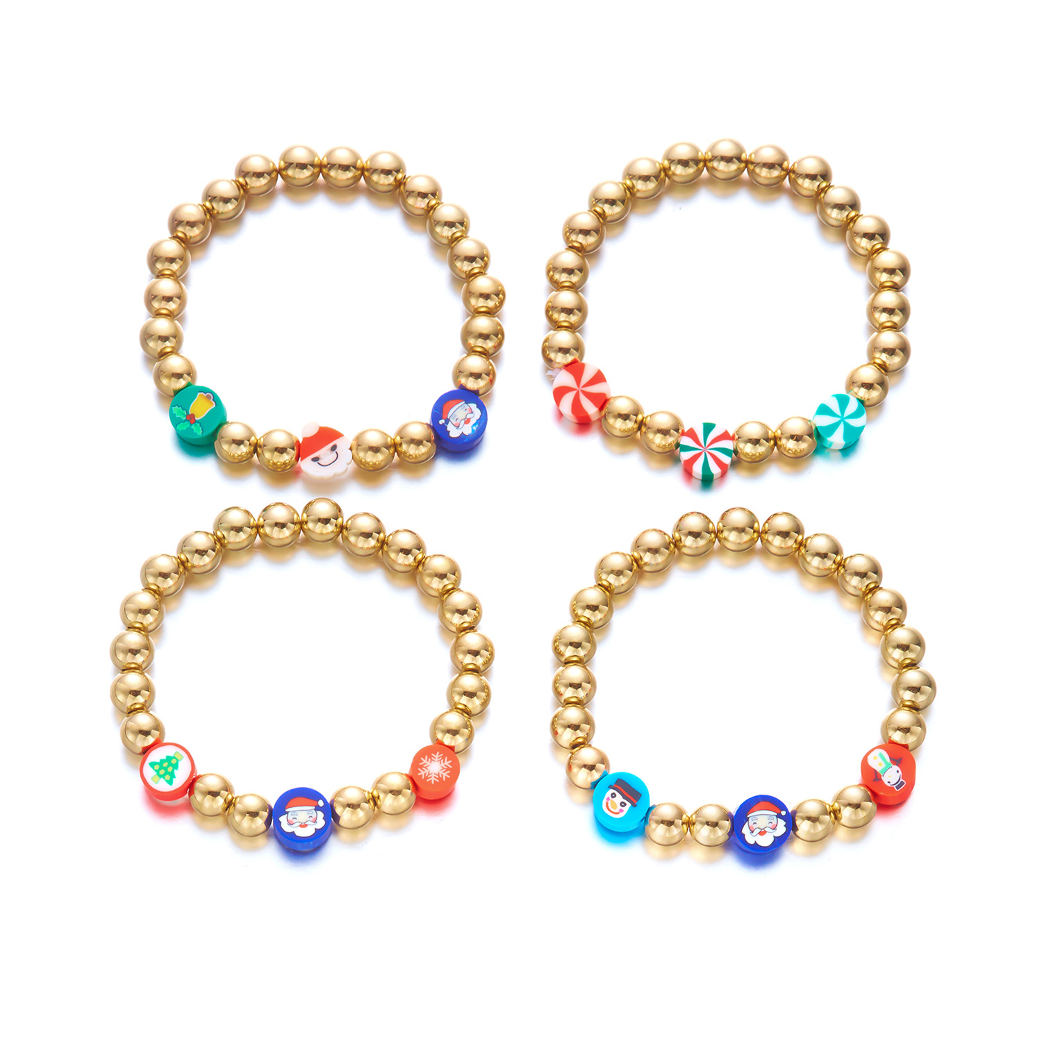 Christmas Holiday Bracelet, Polymer Clay, with Plastic Pearl & Tibetan Style & Acrylic, 4 pieces & Christmas Design & fashion jewelry & different styles for choice & for woman, Sold By Set