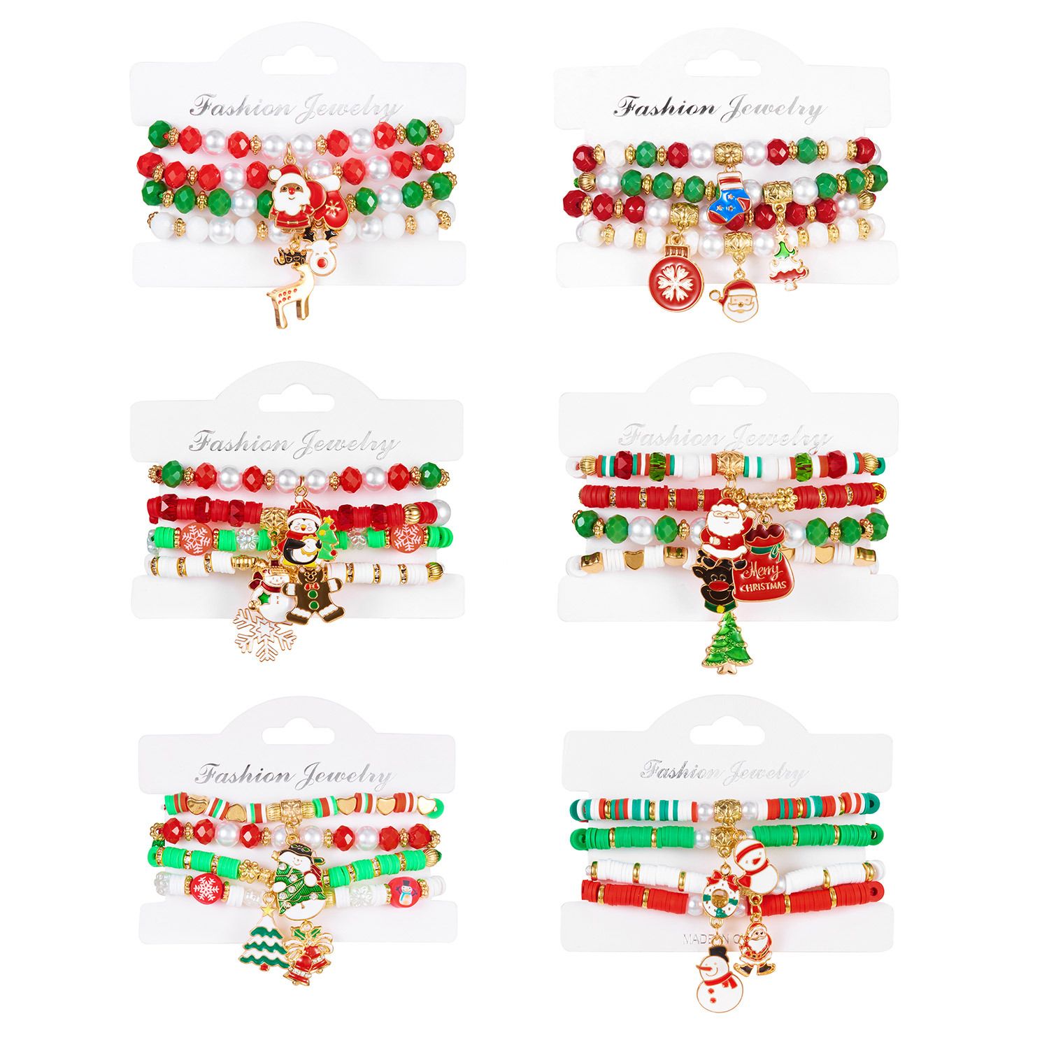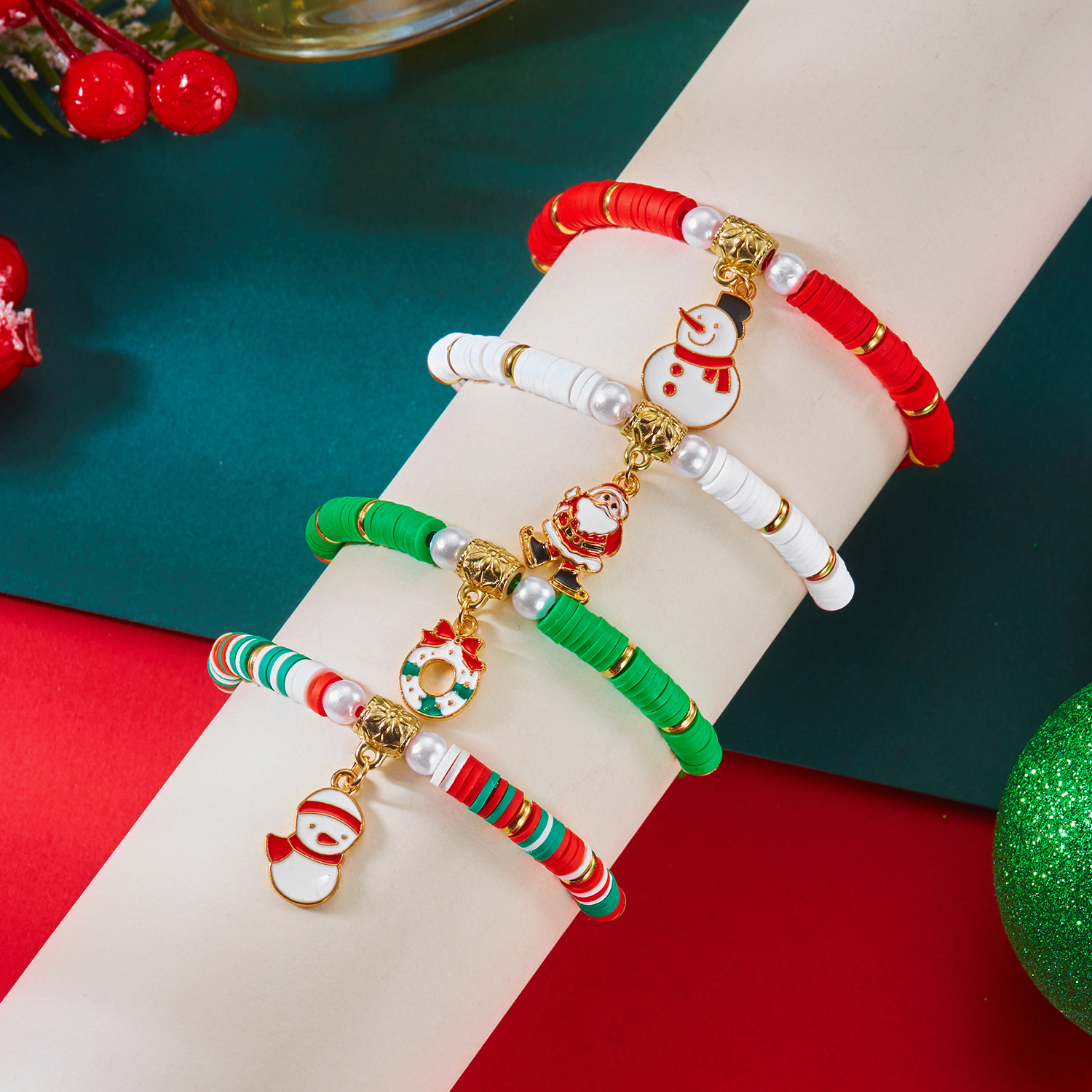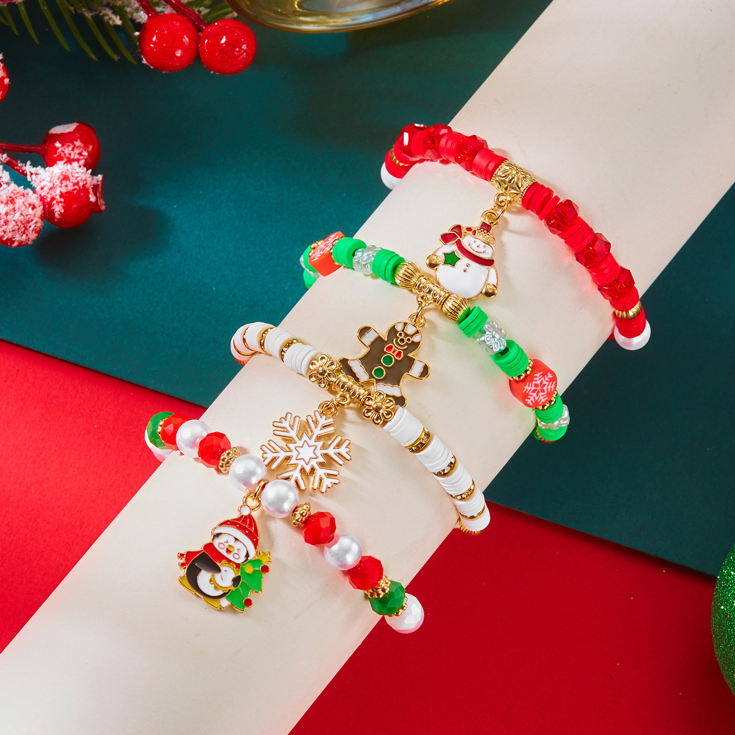 Christmas Holiday Bracelet, Plastic, with Polymer Clay, Christmas Design & for woman, mixed colors, Length:17.5 cm, Sold By Set