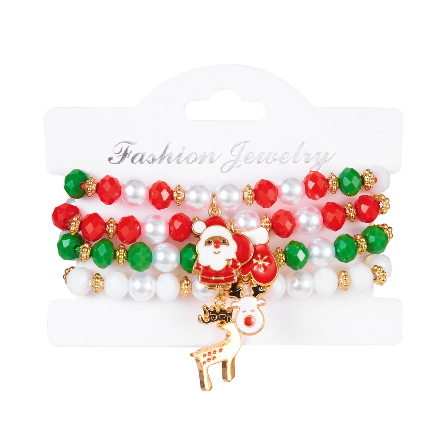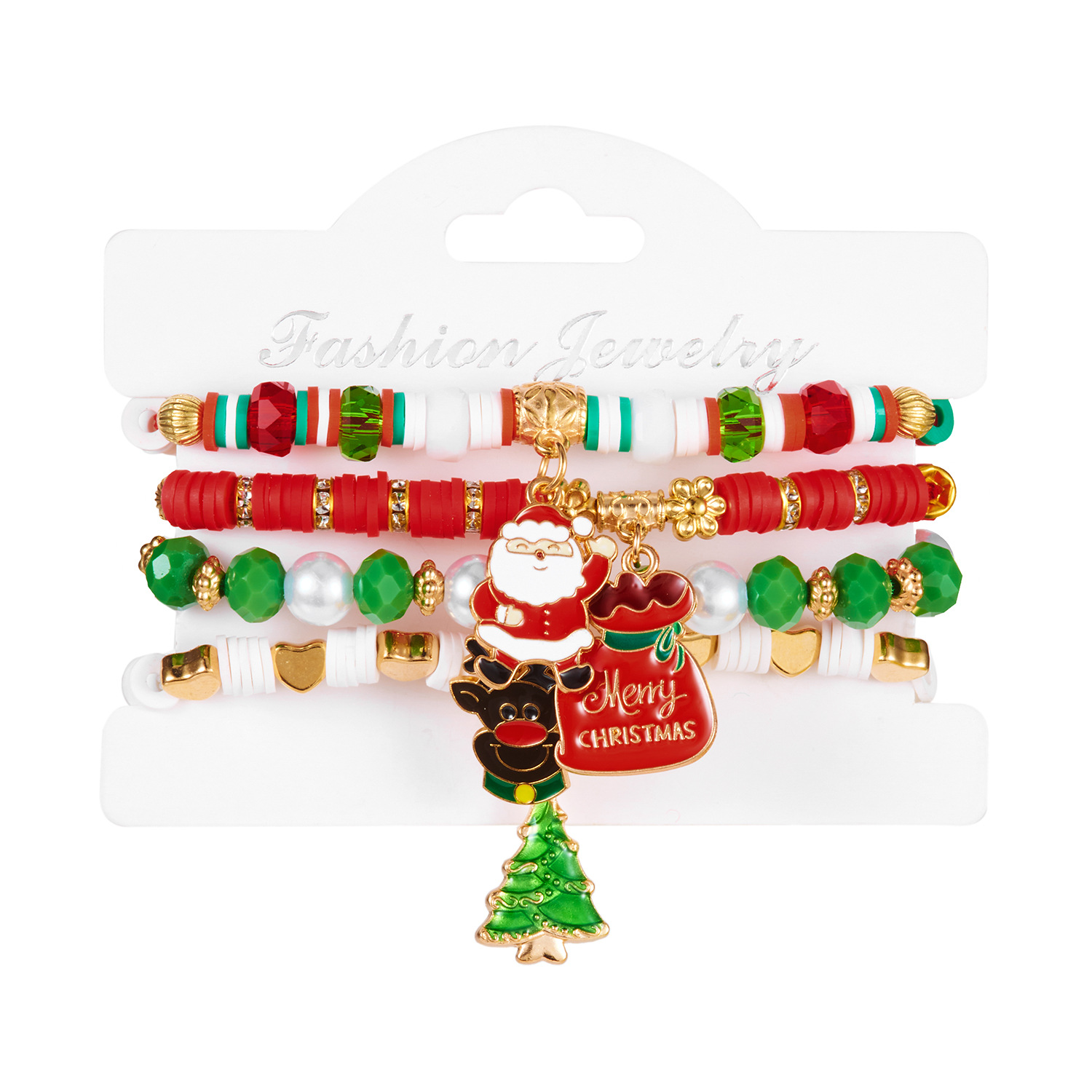 Christmas Holiday Bracelet, Polymer Clay, with Plastic Pearl & Tibetan Style & Acrylic, 4 pieces & Christmas Design & fashion jewelry & different styles for choice & for woman, Sold By Set