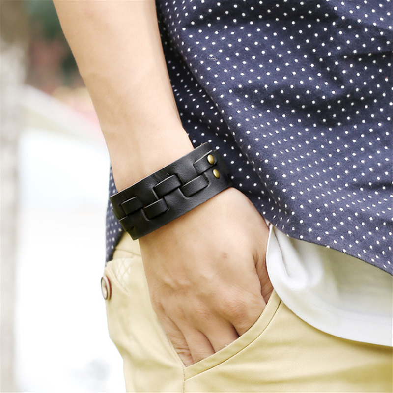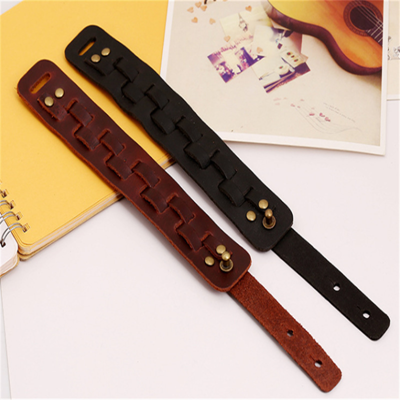 Cowhide Bracelet, with Tibetan Style, handmade, vintage & Unisex, more colors for choice, 260x29mm, Sold By PC