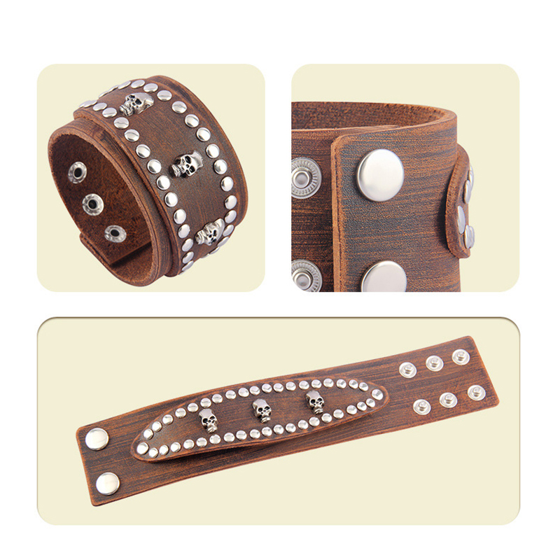 Cowhide Bracelet, with Tibetan Style, Halloween Design & vintage & for man, more colors for choice, 230x45mm, Sold By PC