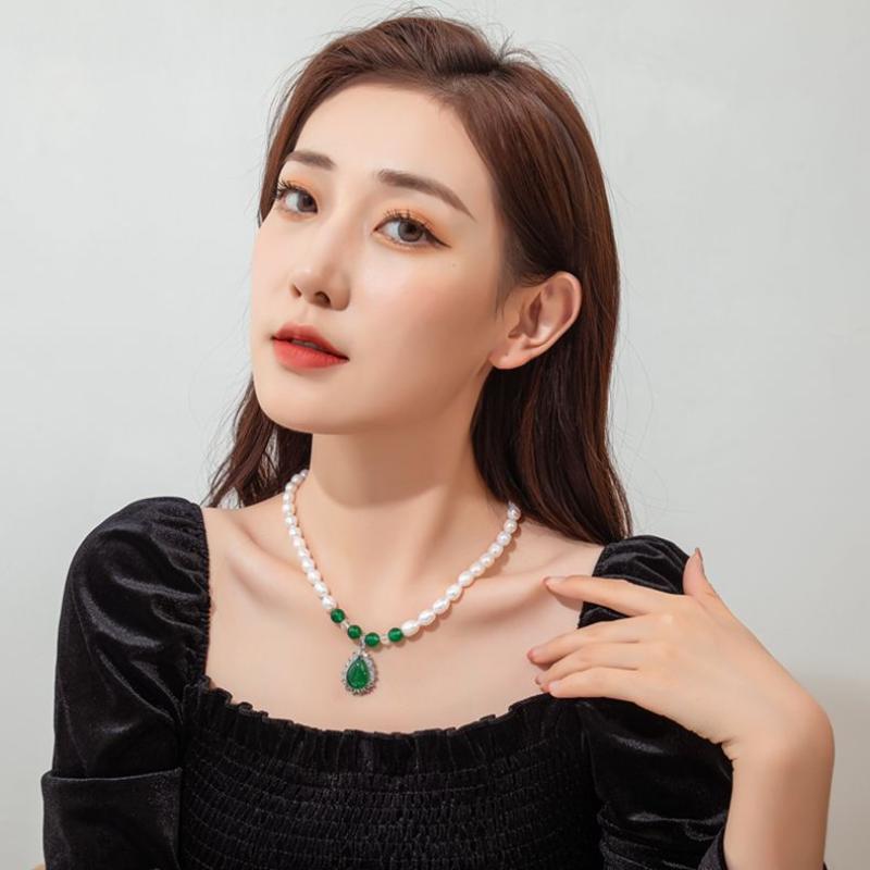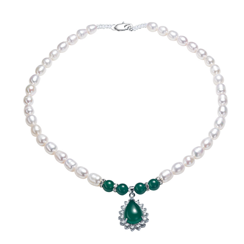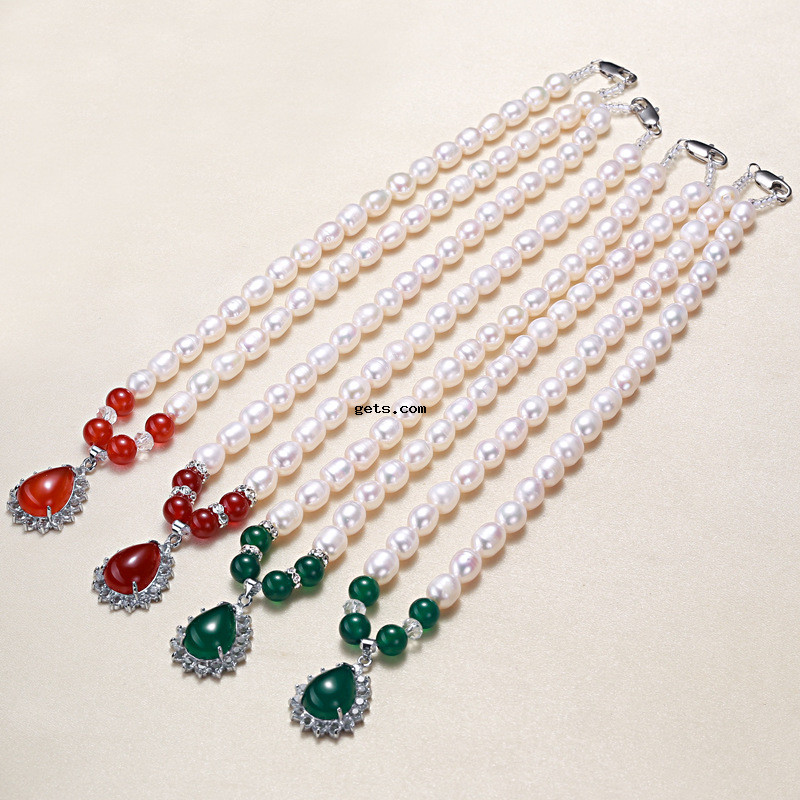 Crystal Freshwater Pearl Necklace, with Agate & Crystal, Rice, fashion jewelry & with rhinestone, more colors for choice, 8-9mm, Length:44 cm, Sold By PC