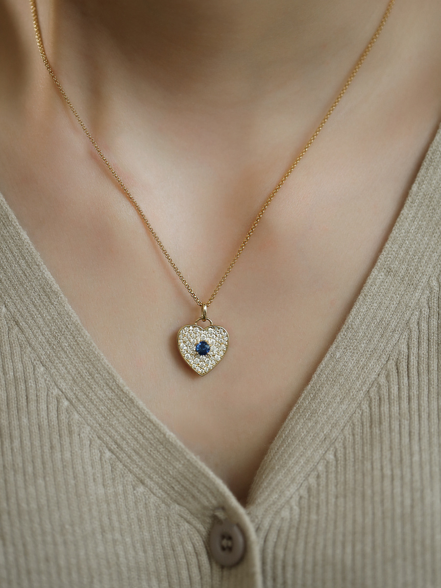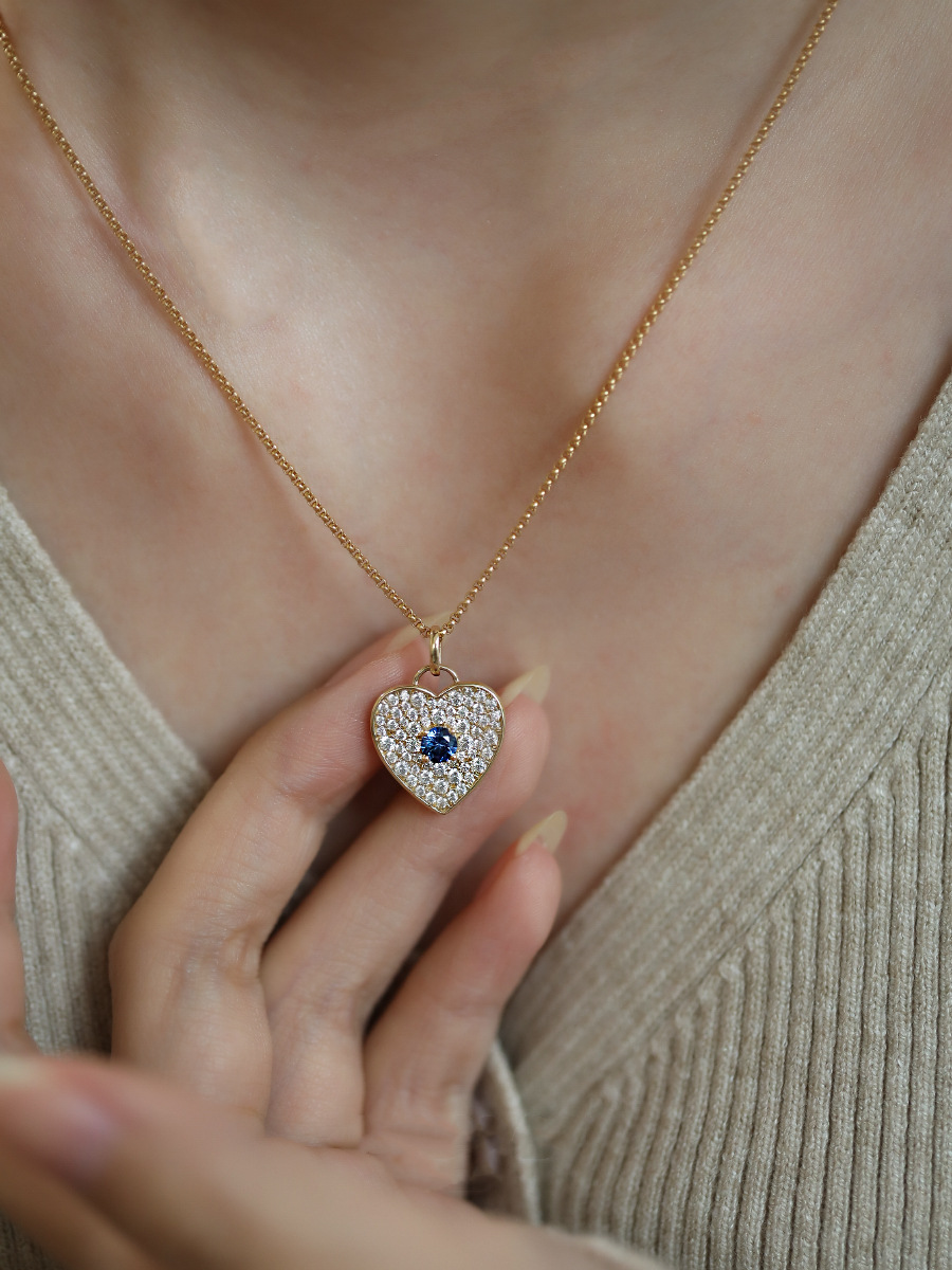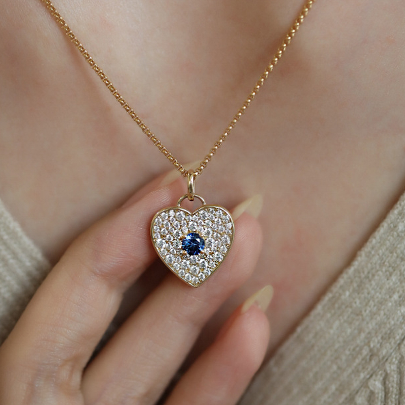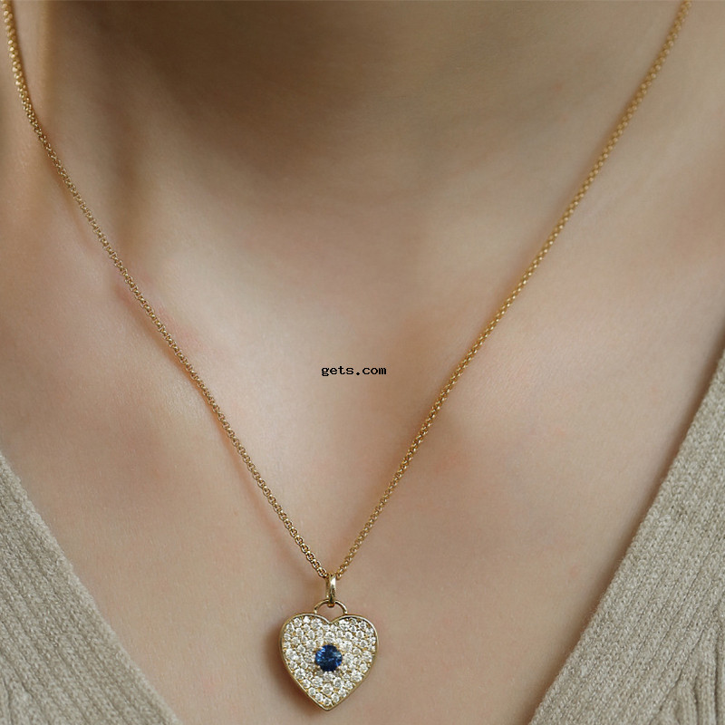 925 Sterling Silver Necklace, Heart, gold color plated, micro pave cubic zirconia & for woman, Length:Approx 17.7 Inch, Sold By PC