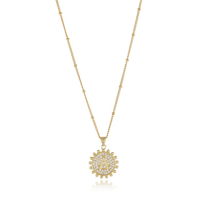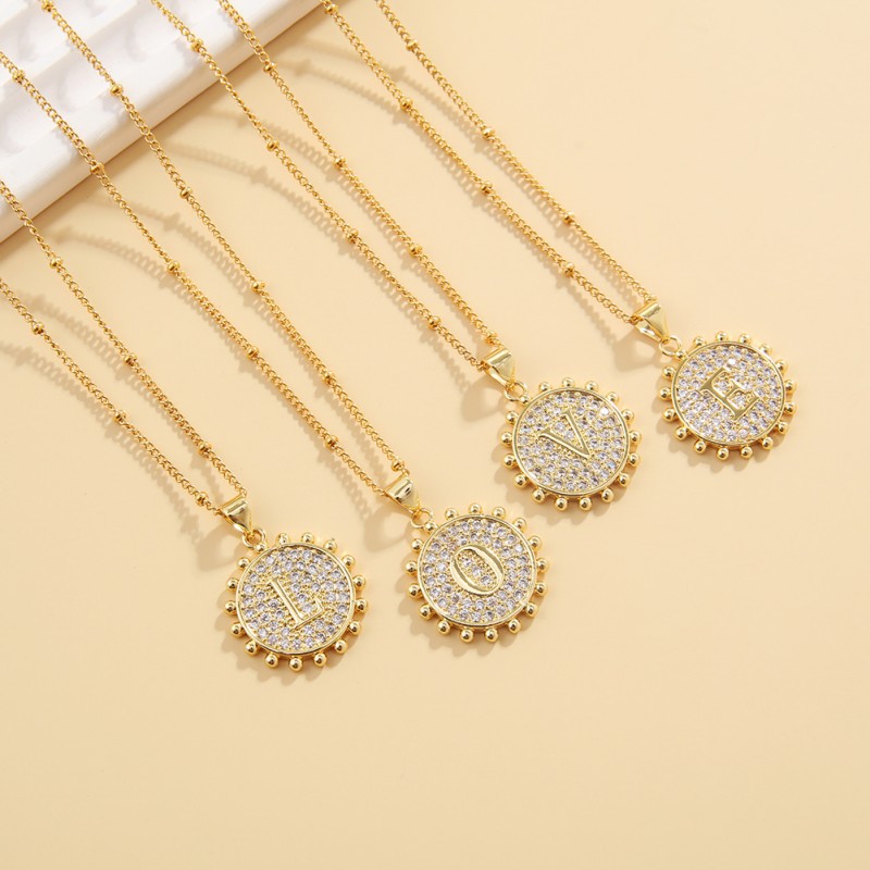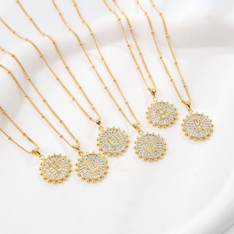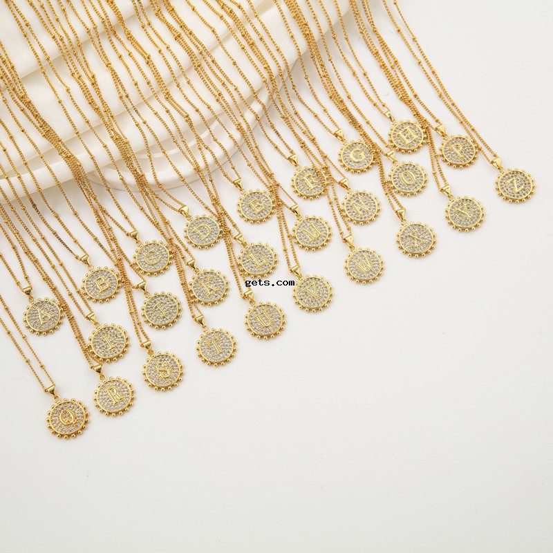 Brass Necklace, with 2inch extender chain, Alphabet Letter, gold color plated, Unisex & different styles for choice & micro pave cubic zirconia, Length:Approx 18.1 Inch, Sold By PC