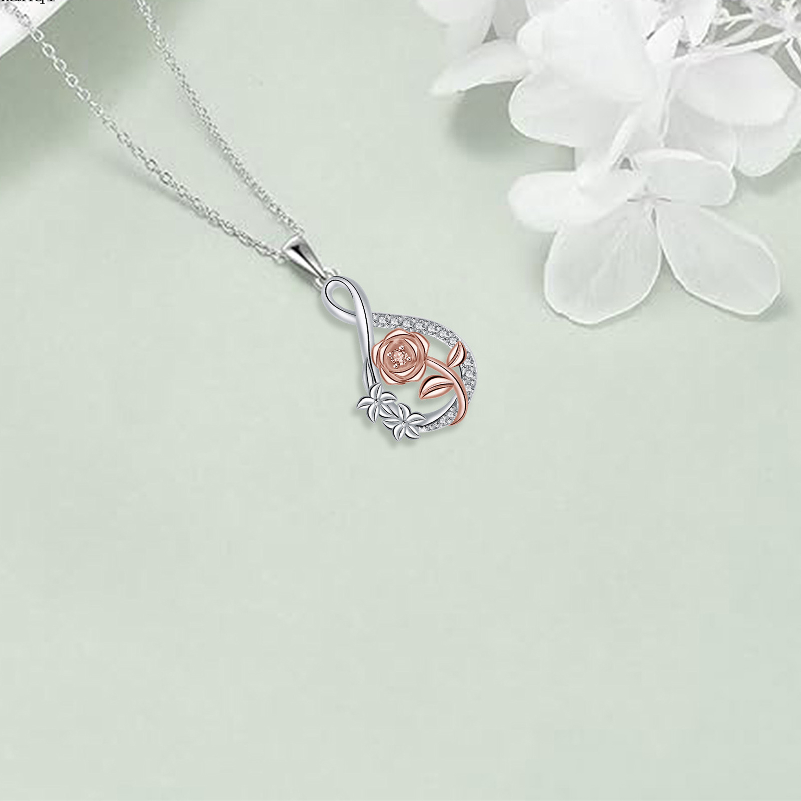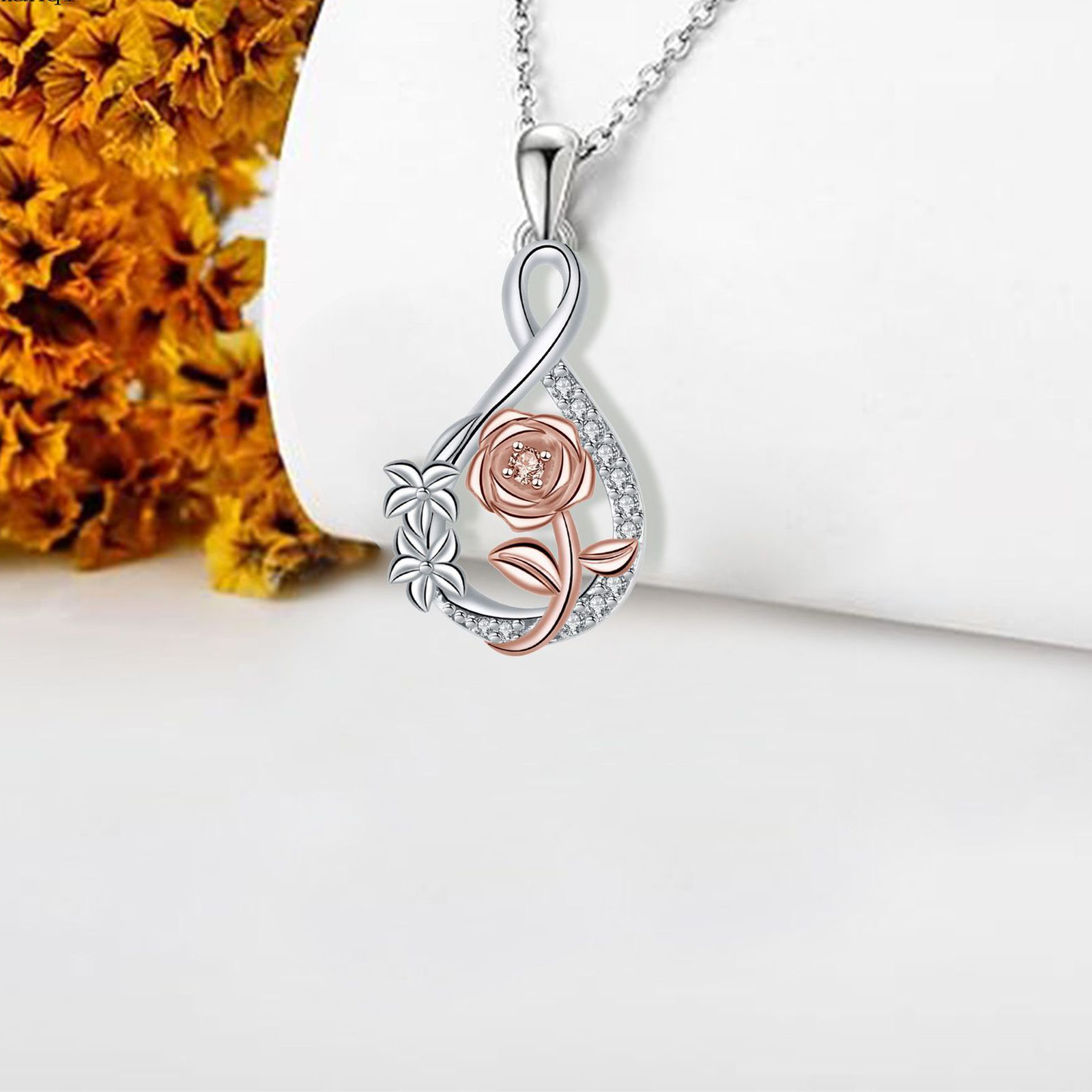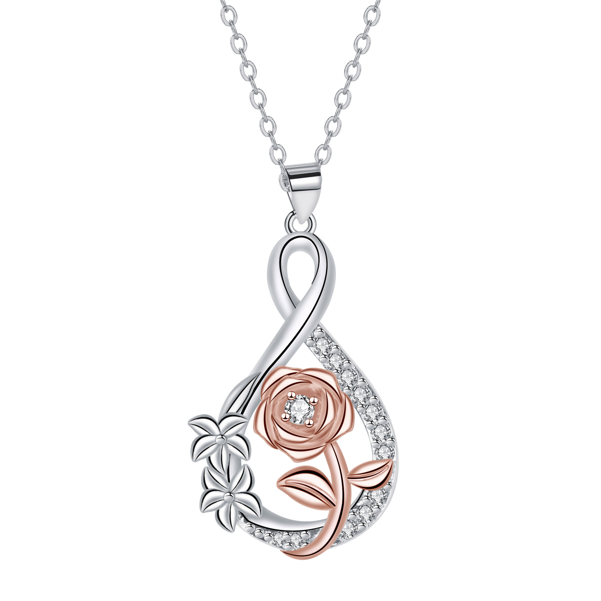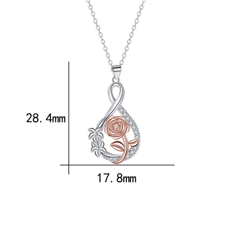 Brass Necklace, with 304 Stainless Steel Chain, with 5cm extender chain, Rose, plated, cross chain & Mother Day Jewelry & micro pave cubic zirconia & for woman, Length:Approx 45 cm, Sold By PC