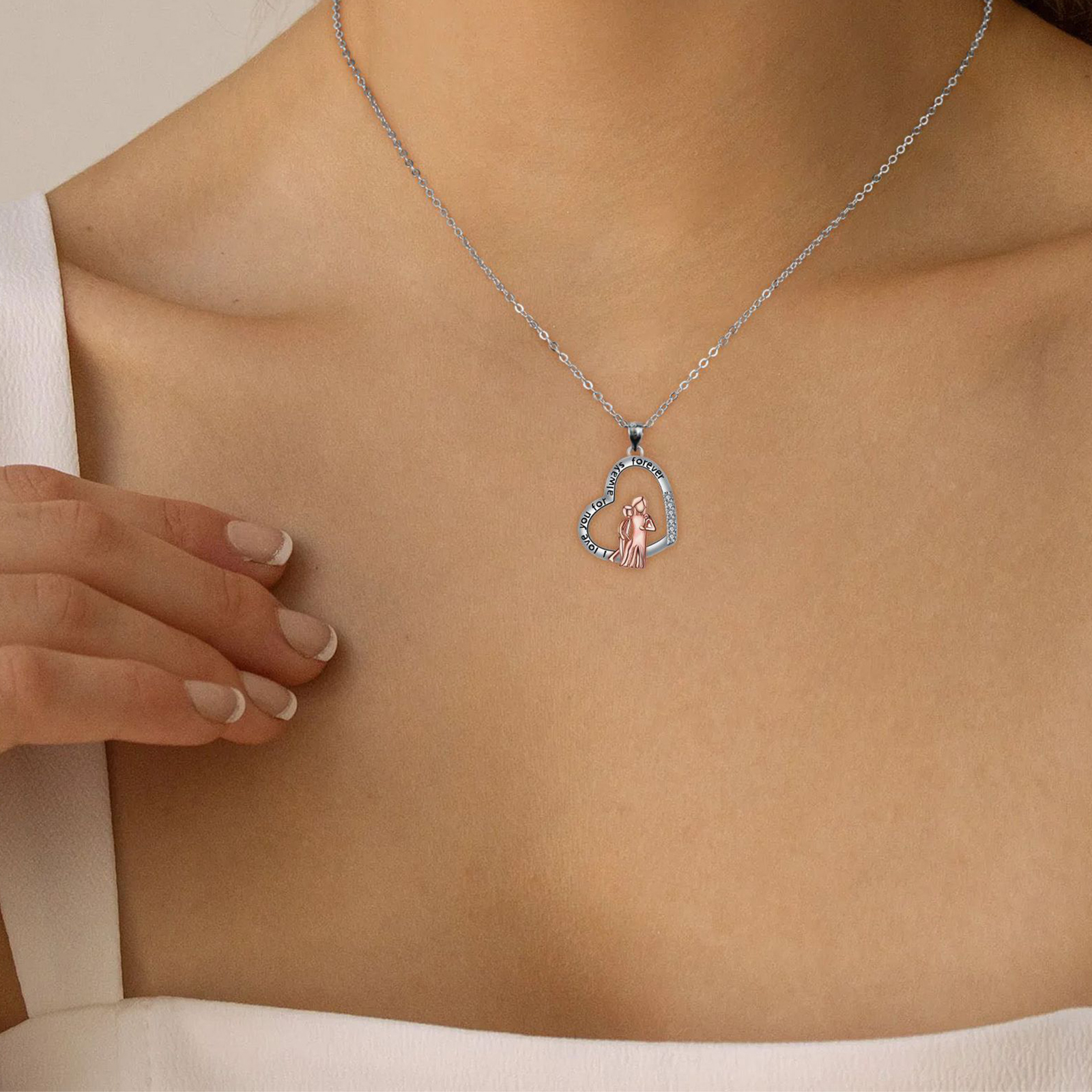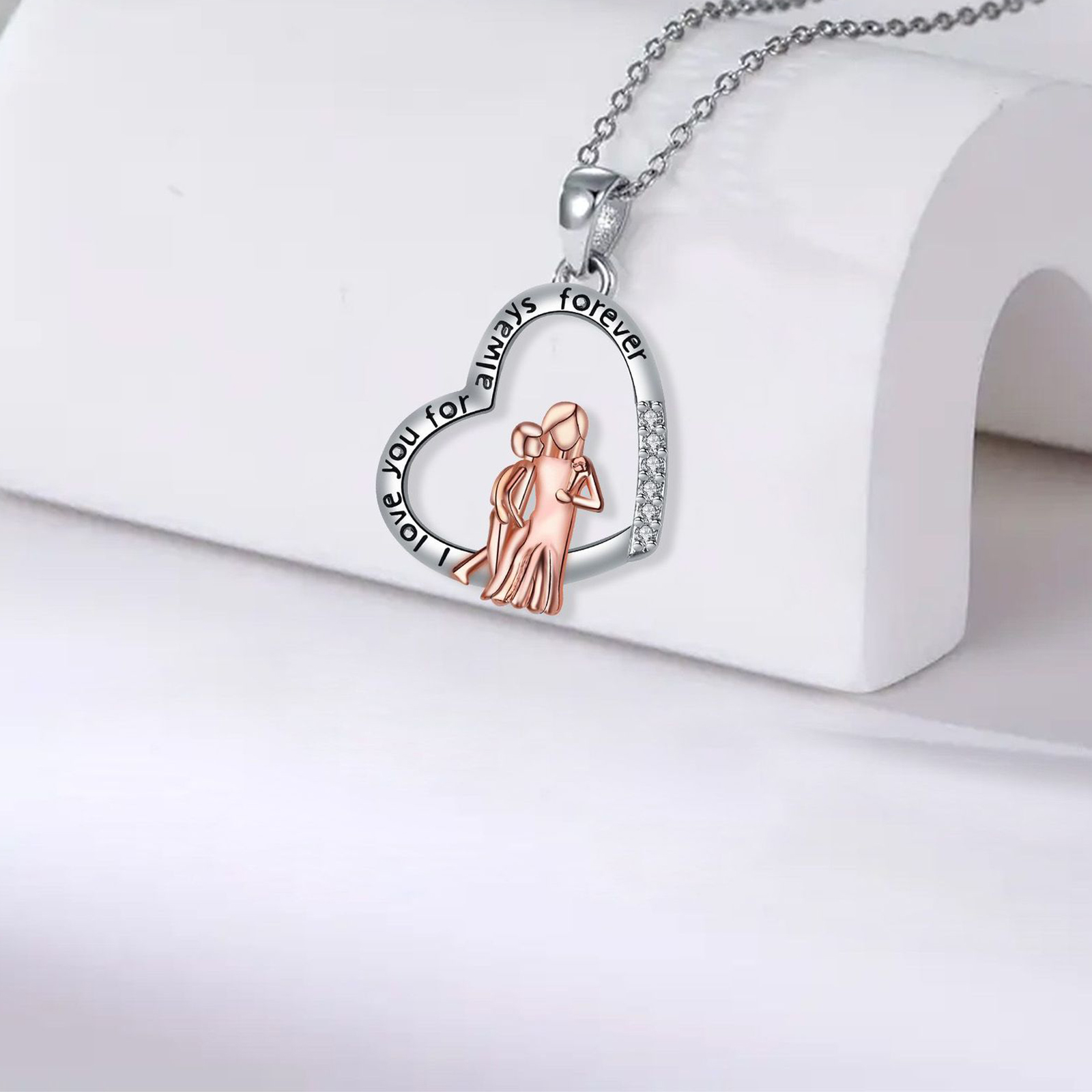 Brass Necklace, with 304 Stainless Steel Chain, with 5cm extender chain, Heart, plated, cross chain & Mother Day Jewelry & micro pave cubic zirconia & for woman, Length:Approx 45 cm, Sold By PC