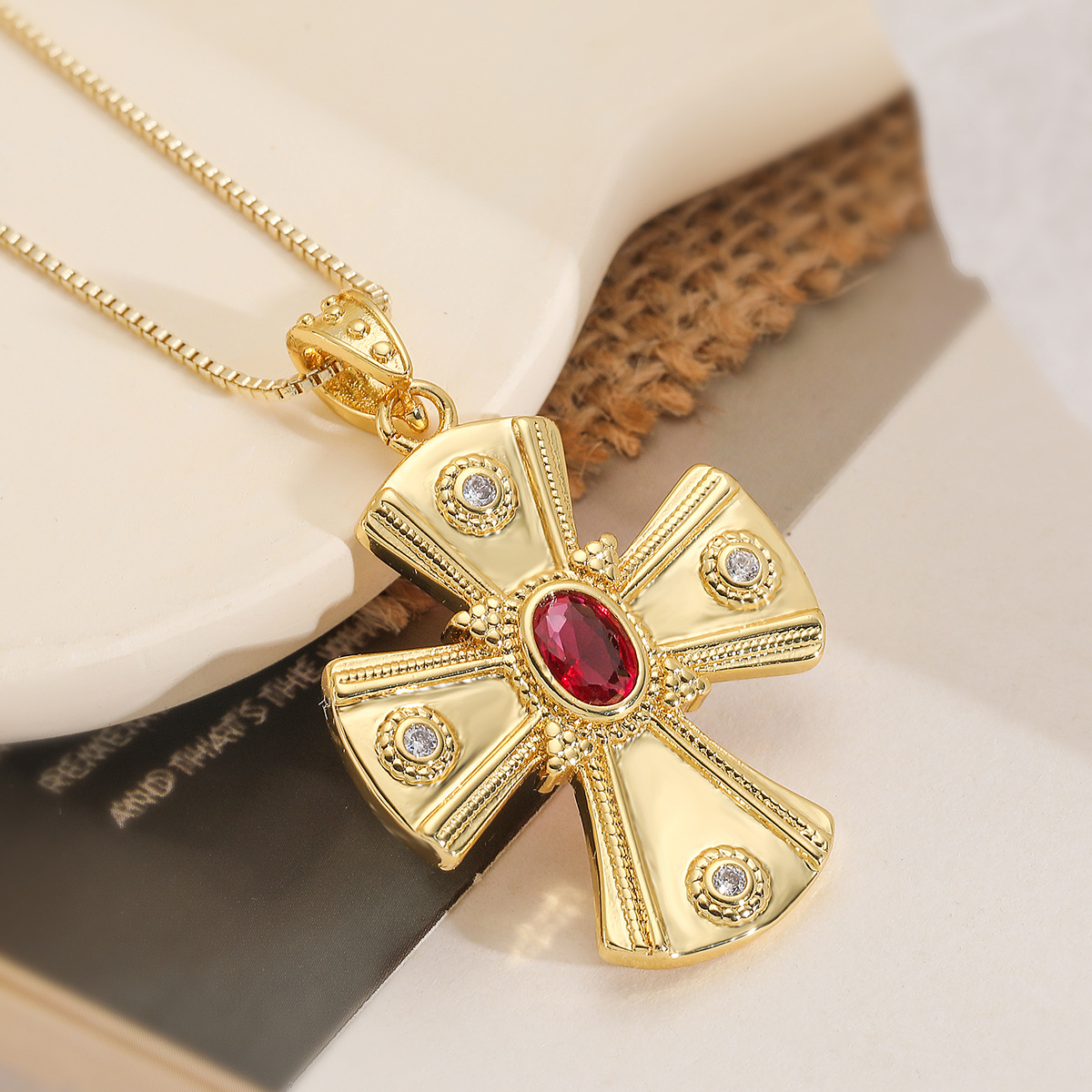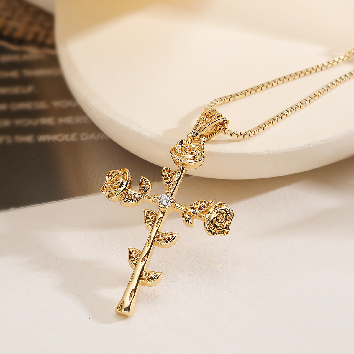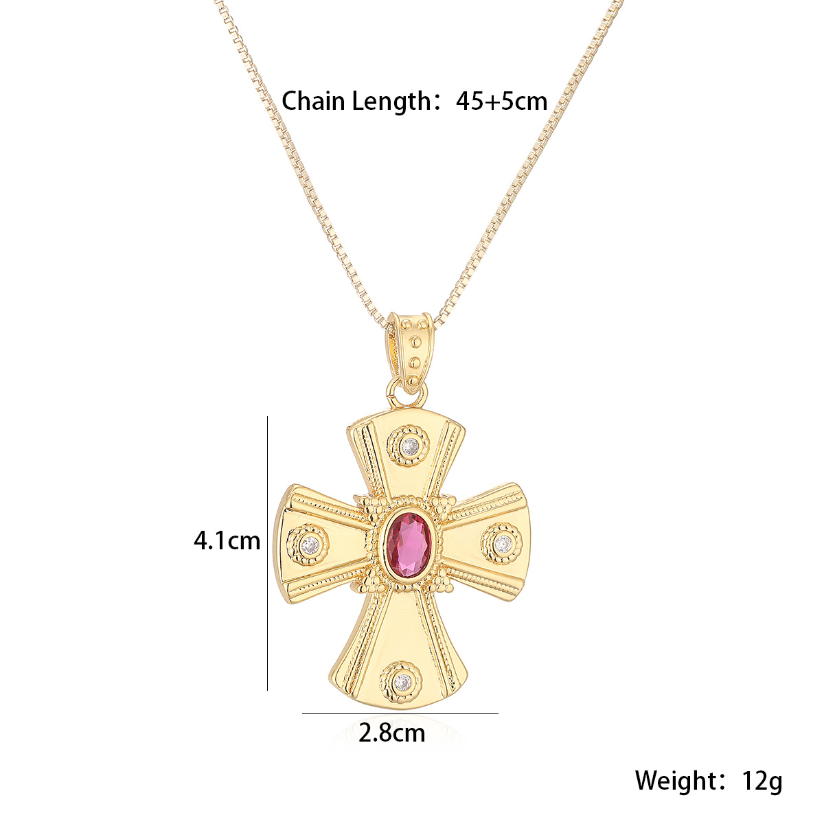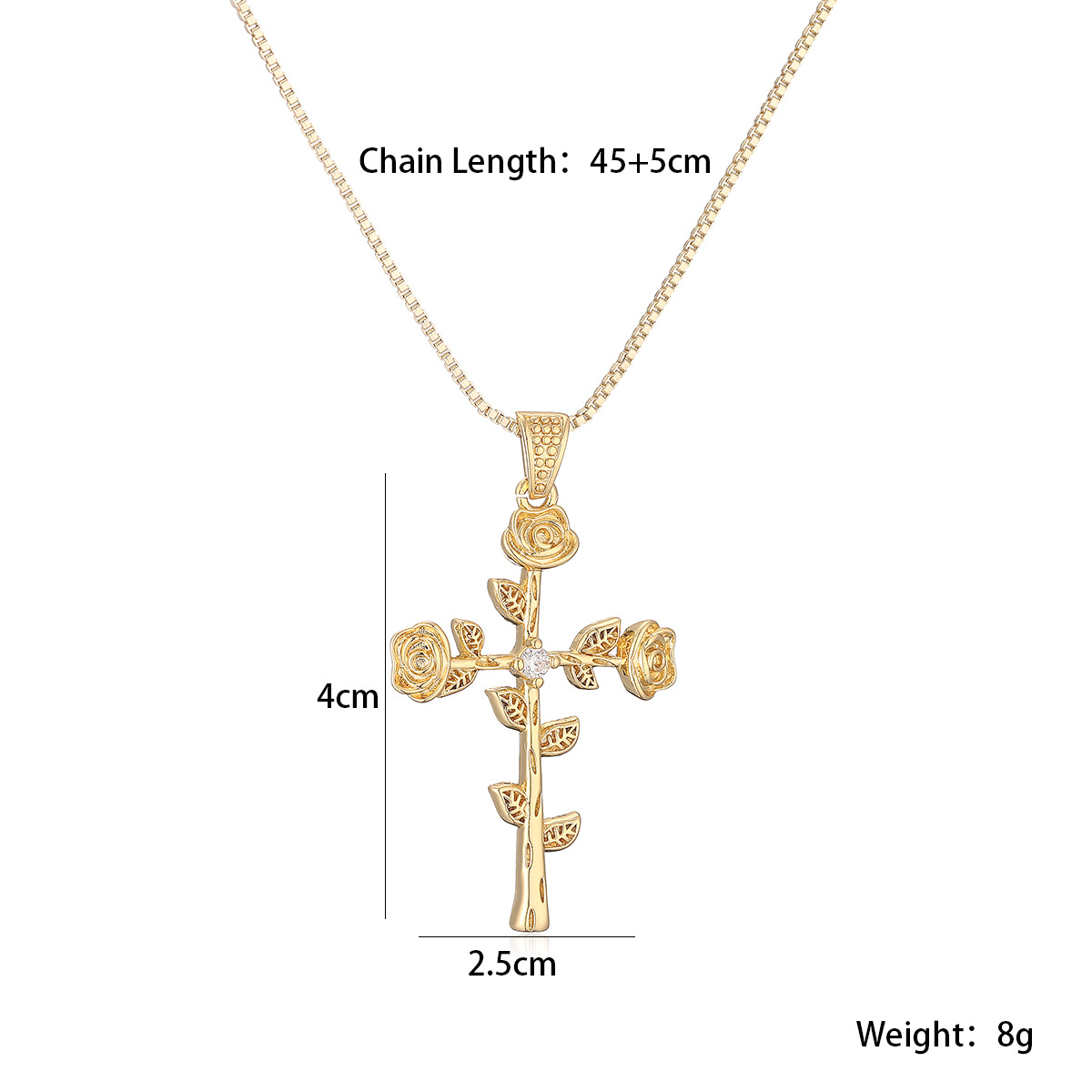 Brass Necklace, with 5cm extender chain, Cross, gold color plated, different styles for choice & micro pave cubic zirconia & for woman, Length:Approx 45 cm, Sold By PC