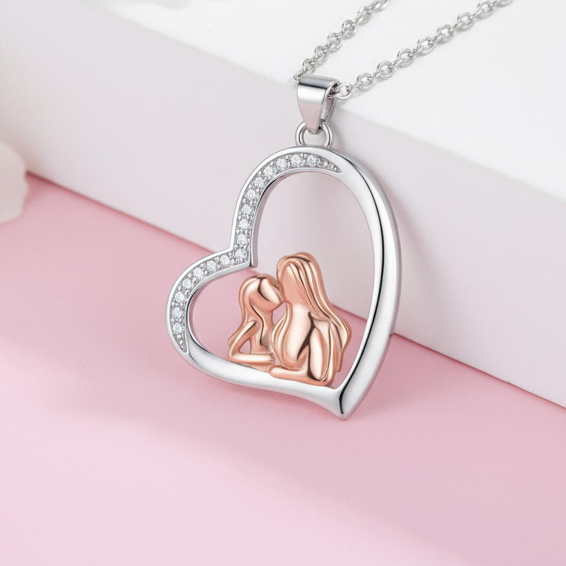 Brass Necklace, with 5cm extender chain, Heart, plated, cross chain & Mother Day Jewelry & micro pave cubic zirconia & for woman, Length:Approx 45 cm, Sold By PC