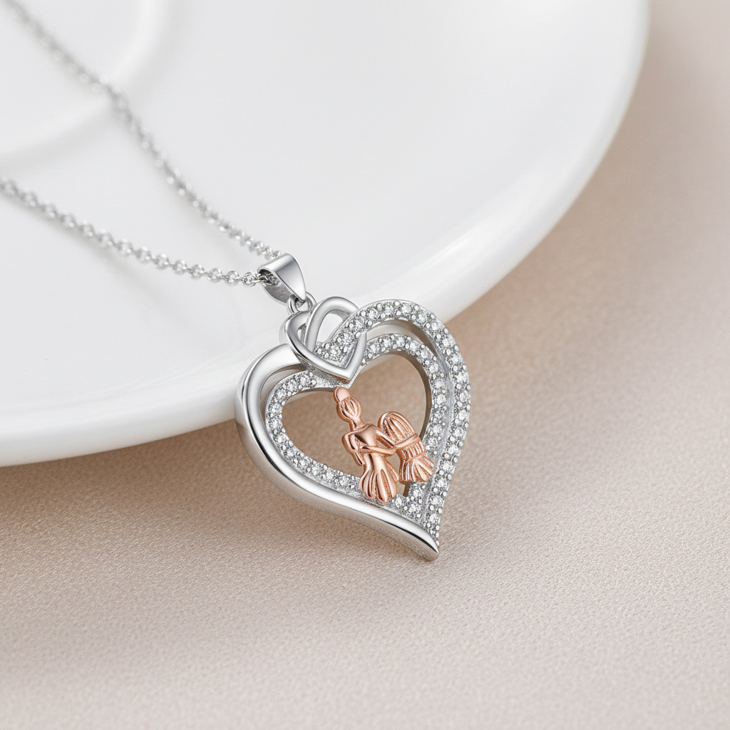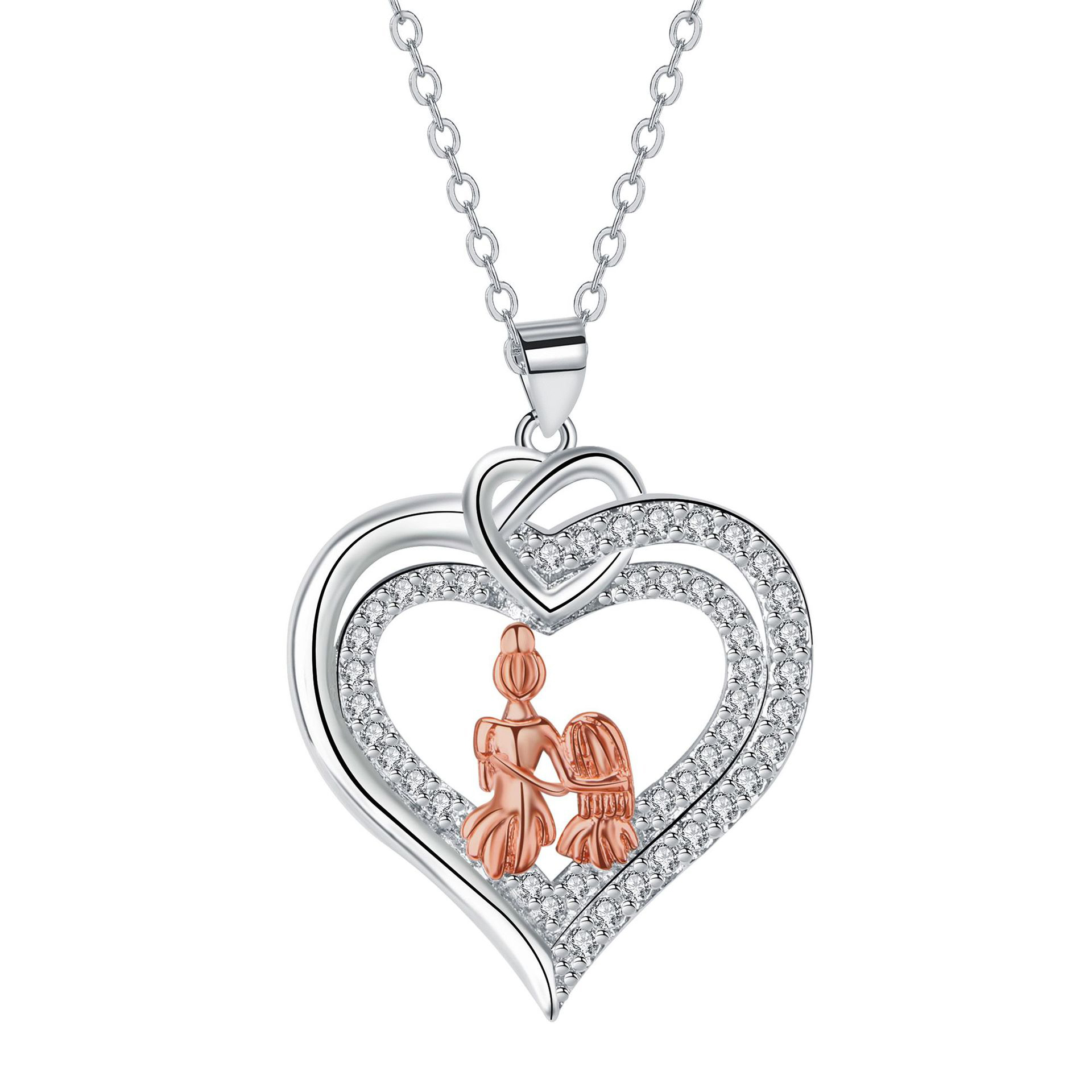 Brass Necklace, with 5cm extender chain, Heart, plated, cross chain & Mother Day Jewelry & micro pave cubic zirconia & for woman, Length:Approx 45 cm, Sold By PC