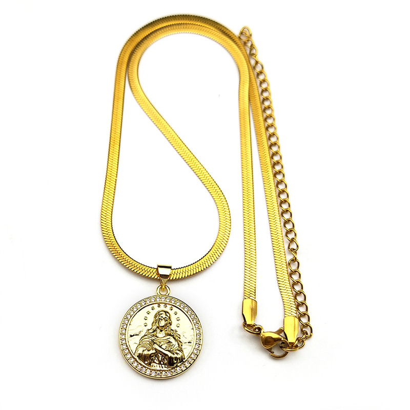 Cubic Zircon Micro Pave Brass Necklace, Horse Eye, gold color plated